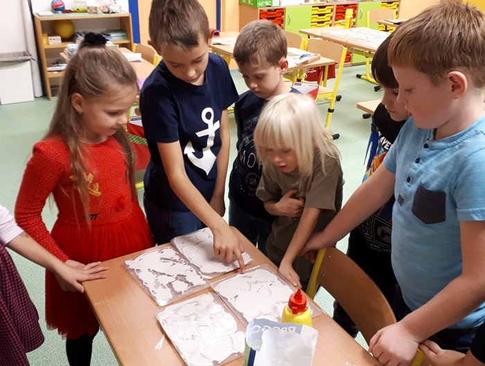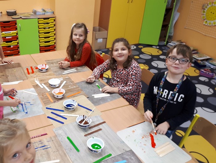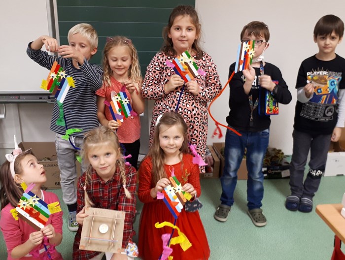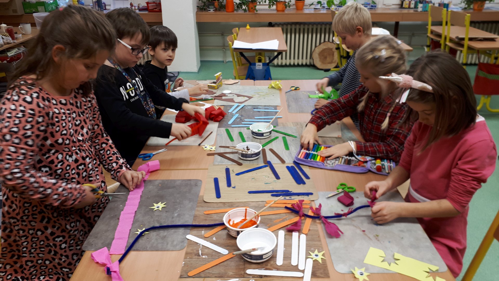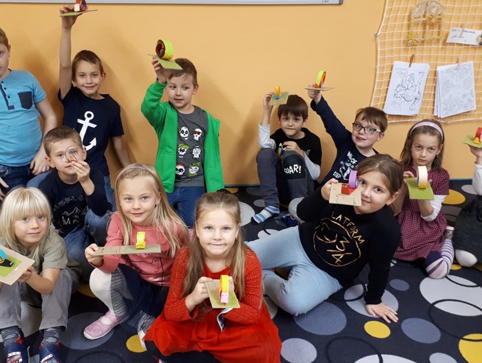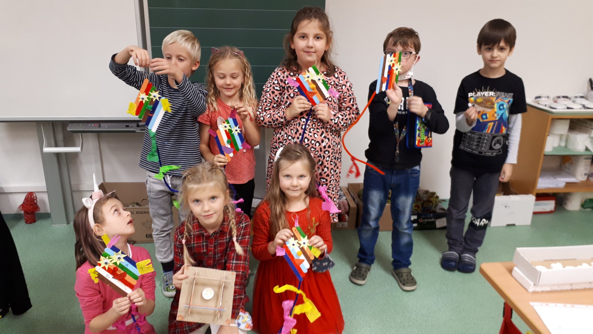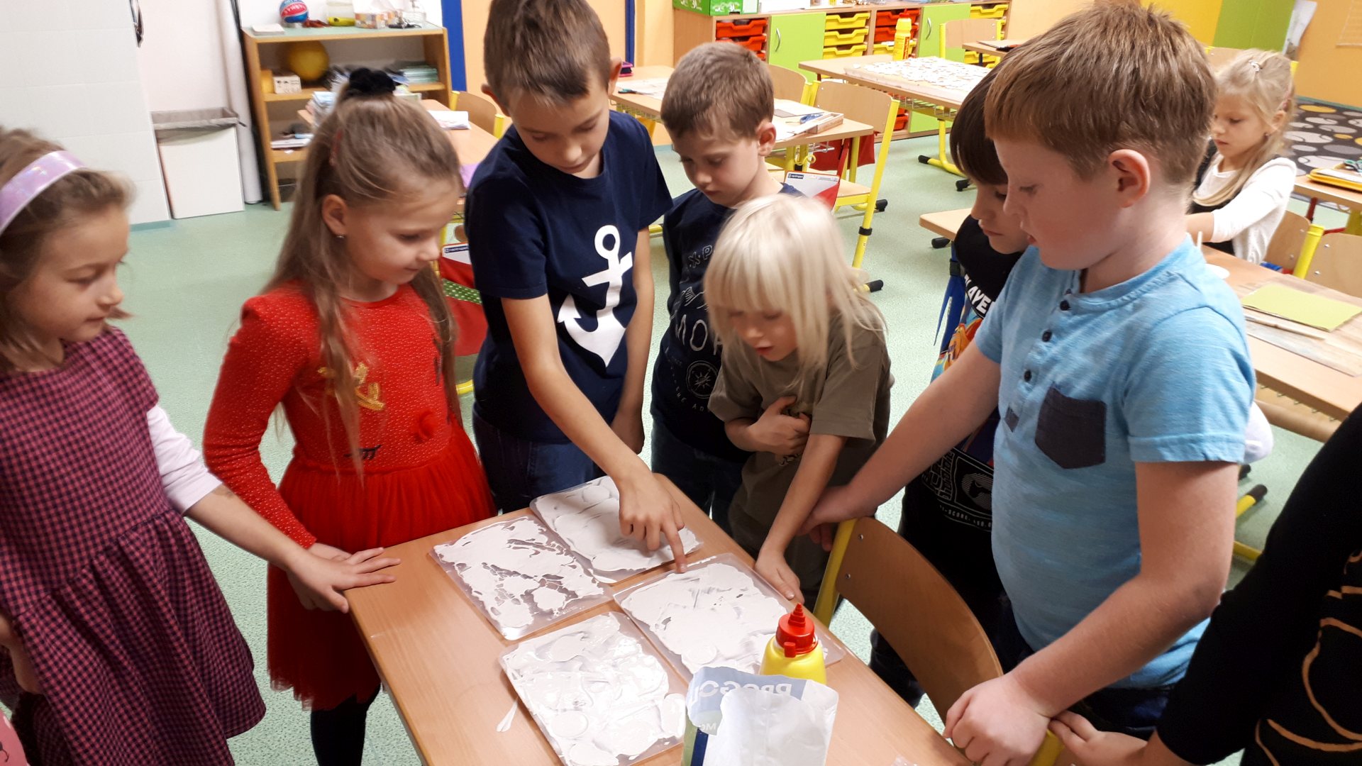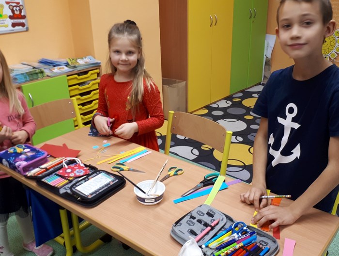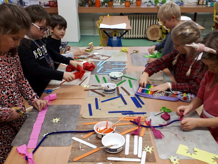 Měsíc listopad se pyšnil krásnými barvami. Toho využili malí Šikulové, odlili si ze sádry podzimní plody, které pak nabarvili anilinovými barvami. Po zhotovení rámečku z potahové látky vznikl pestrobarevný podzimní obrázek k zavěšení. I další výrobek hýřil barvami. Šneček z proužků barevných papíru určitě udělal radost. A v neposlední řadě se dětem povedl i barevný dráček.