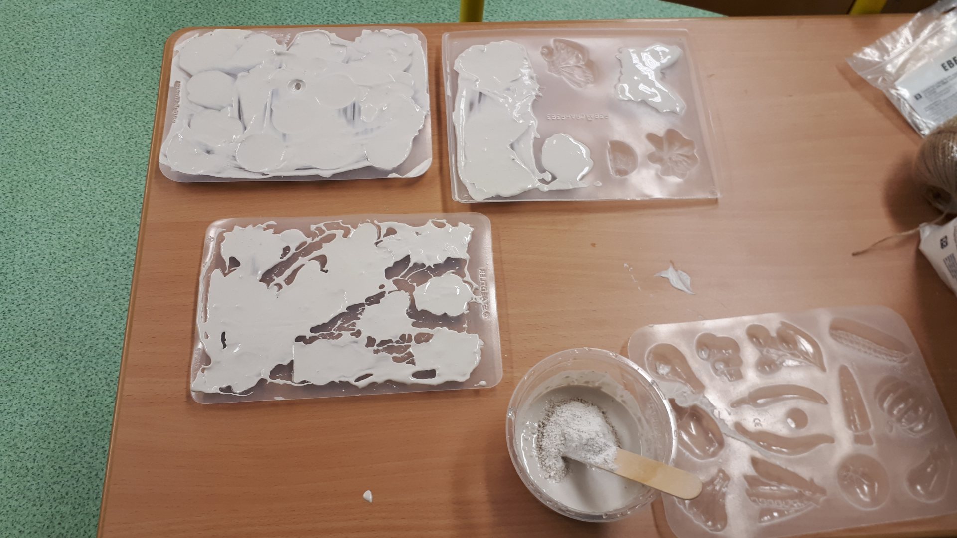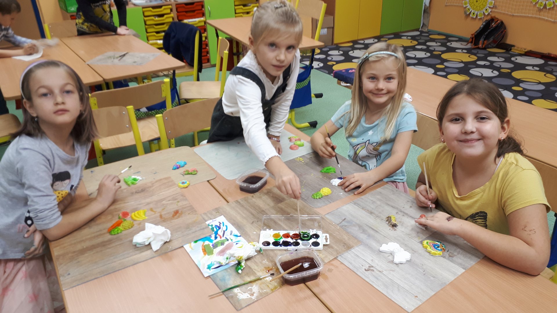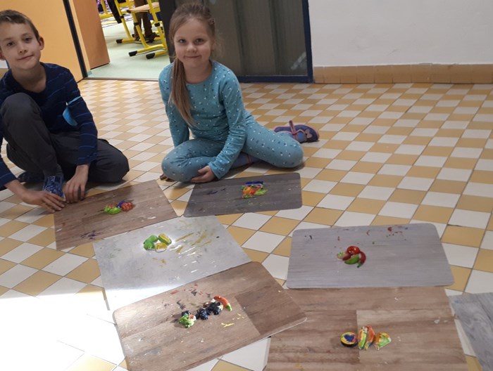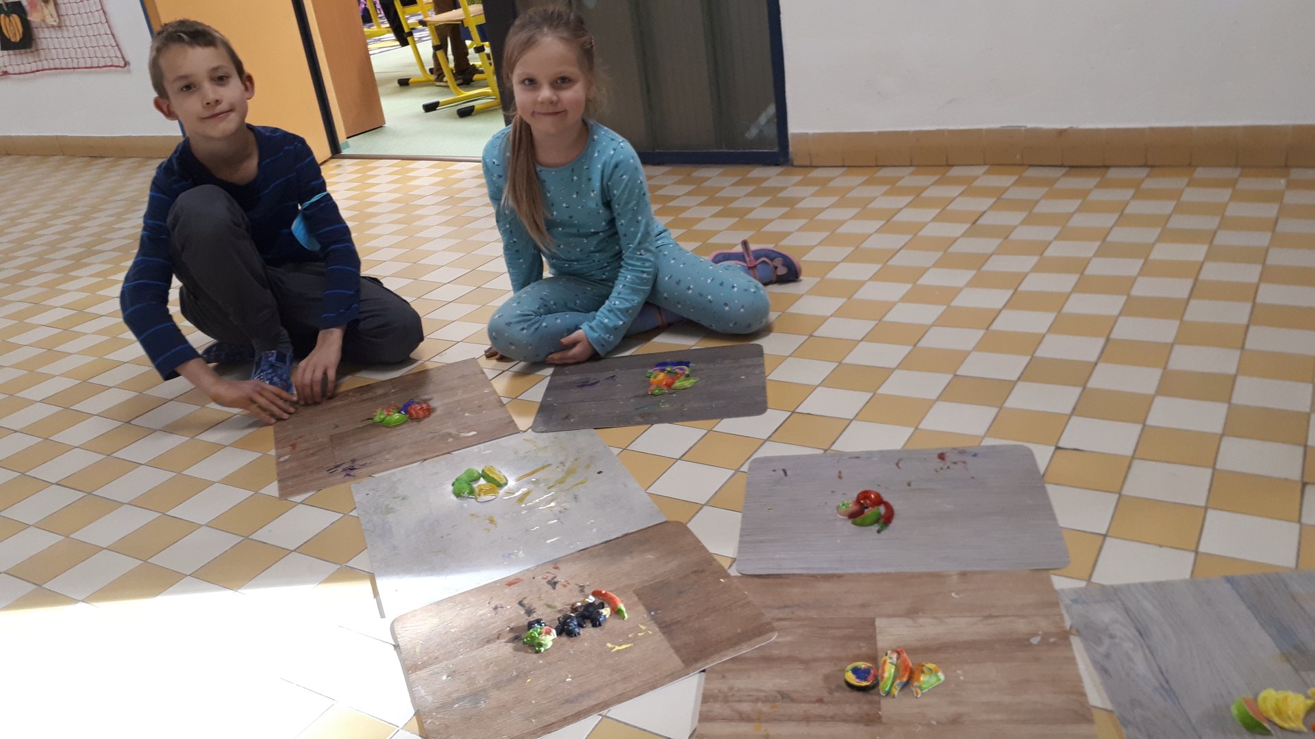 Měsíc listopad se pyšnil krásnými barvami. Toho využili malí Šikulové, odlili si ze sádry podzimní plody, které pak nabarvili anilinovými barvami.