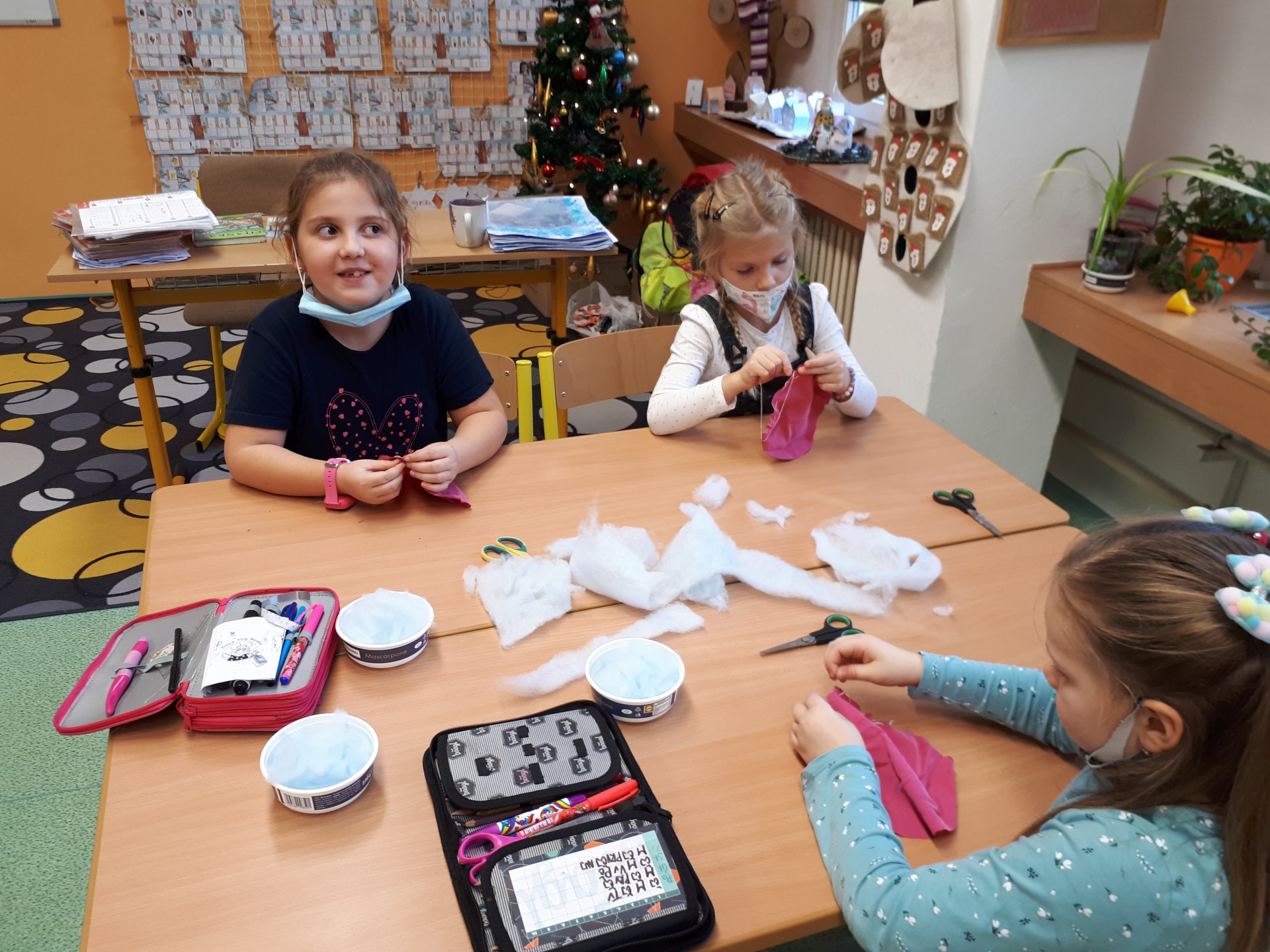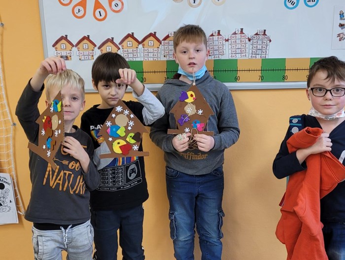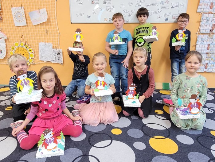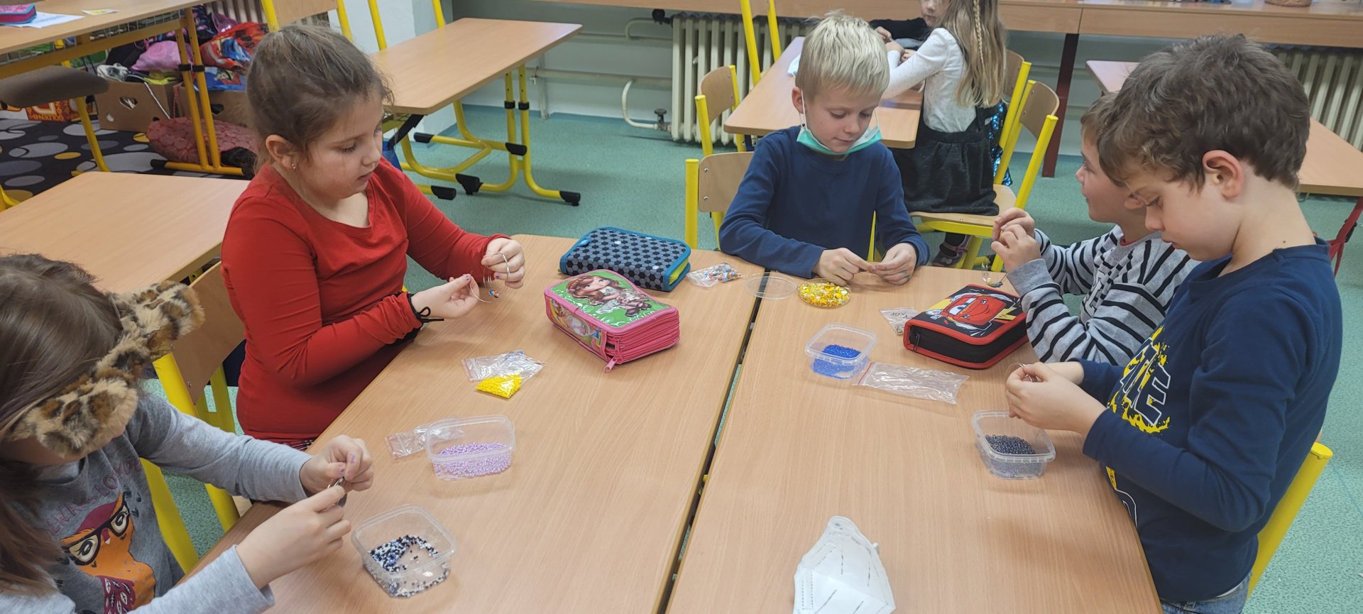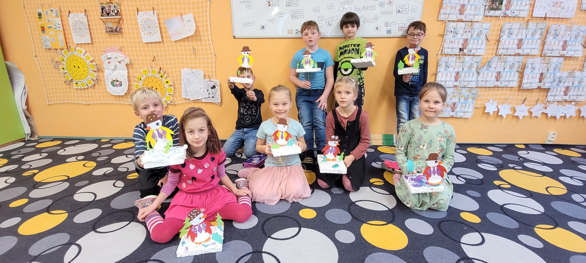 Kroužek Šikula završil v lednu své půlroční tvoření několika výrobky. Dárkem pro maminky byl náramek z paměťového drátu a taťkovi určitě udělal radost šitý vánoční skřítek. Pro radost si děti vyrobily tučňáka na plavací kře, závodního lyžaře na dřevěných špachtlích nebo filcové ptáčky v krmítku a sněhuláka na dveře.