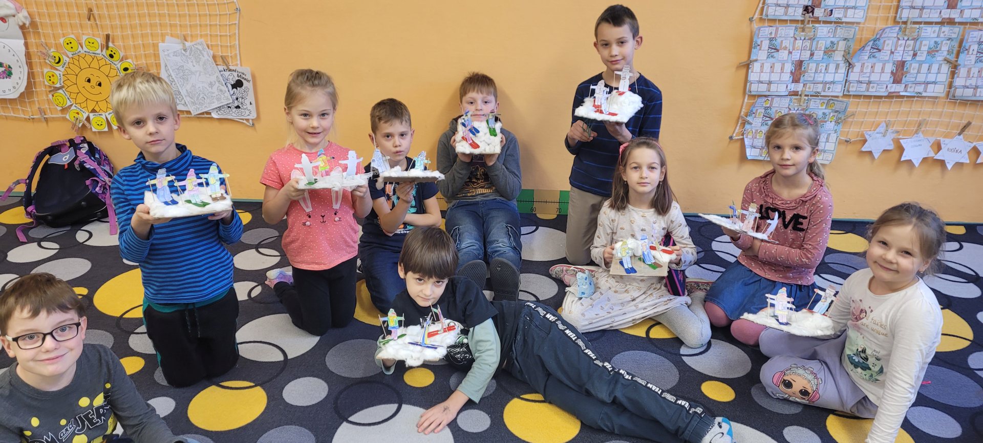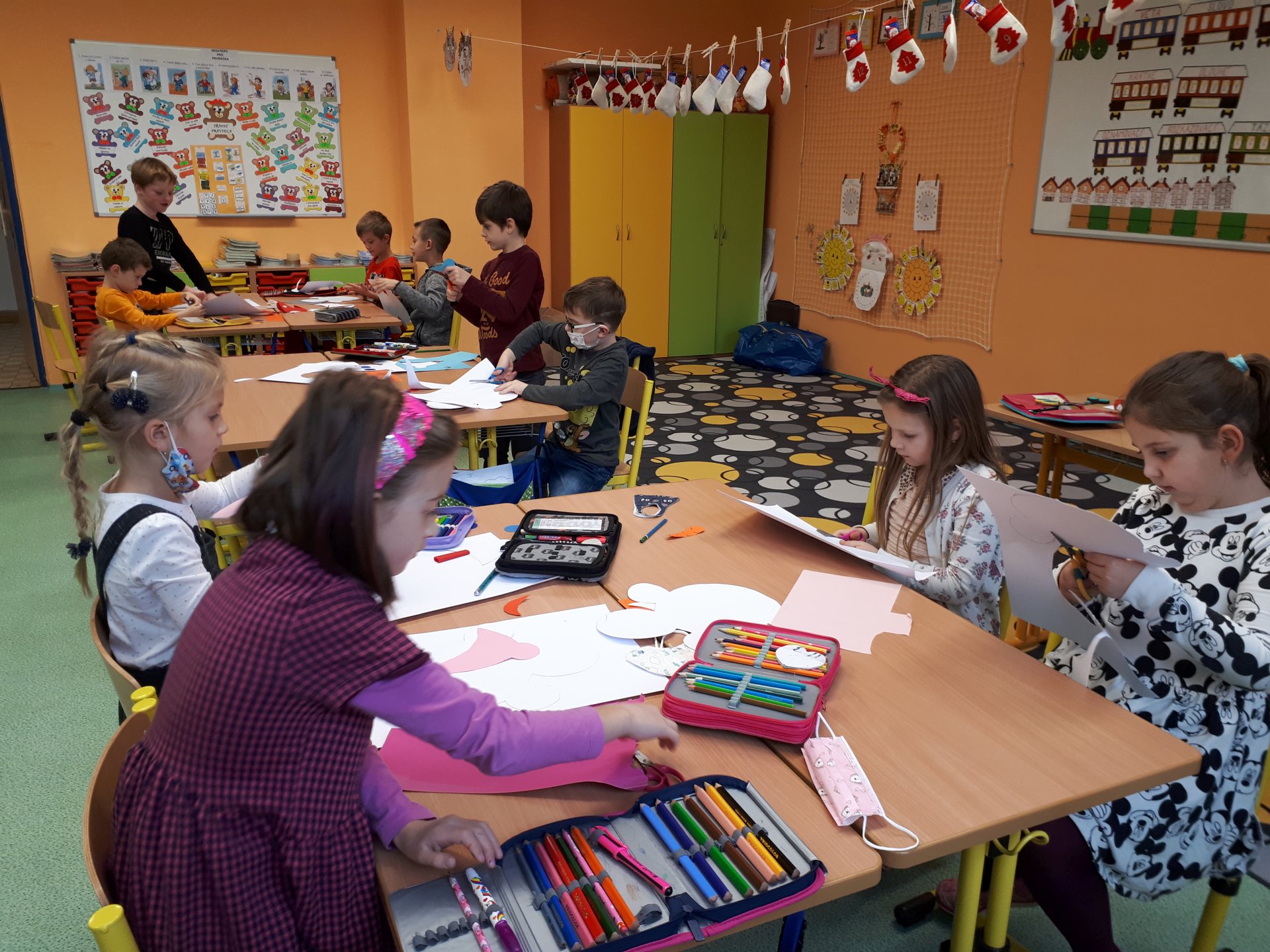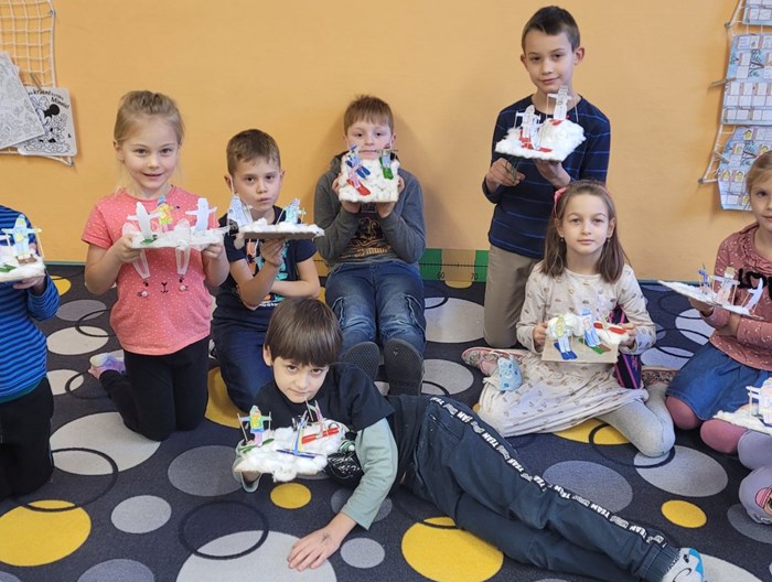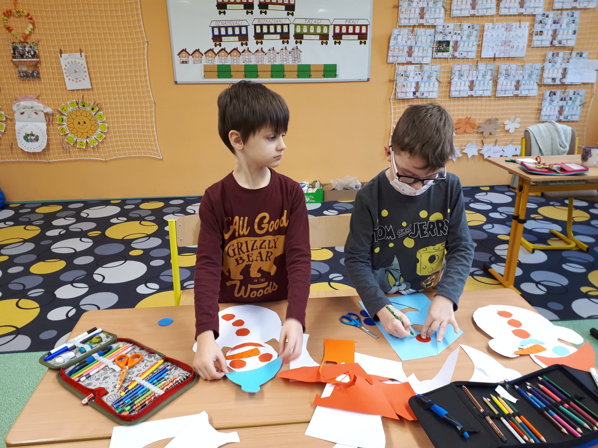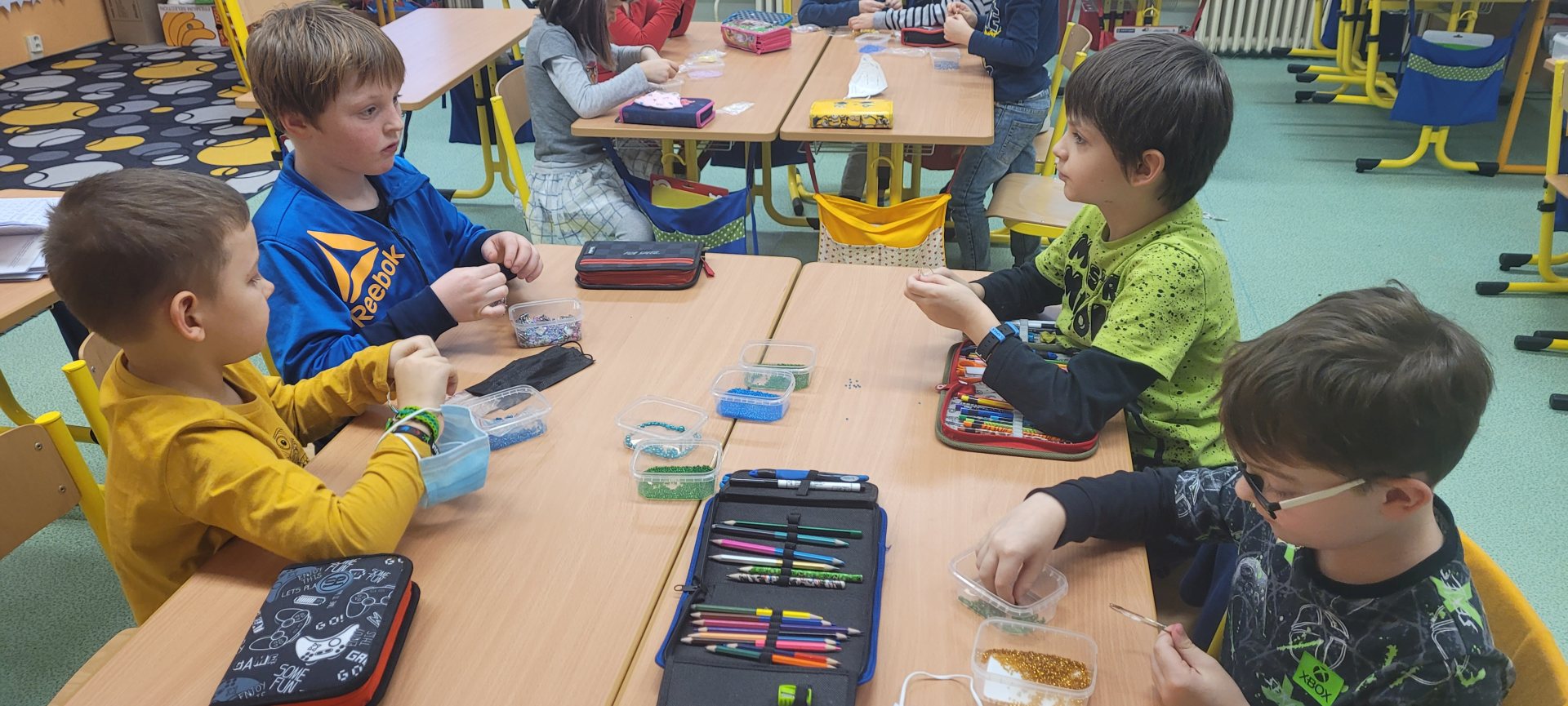 Kroužek Šikula završil v lednu své půlroční tvoření několika výrobky. Dárkem pro maminky byl náramek z paměťového drátu a taťkovi určitě udělal radost šitý vánoční skřítek. Pro radost si děti vyrobily tučňáka na plavací kře, závodního lyžaře na dřevěných špachtlích nebo filcové ptáčky v krmítku a sněhuláka na dveře.