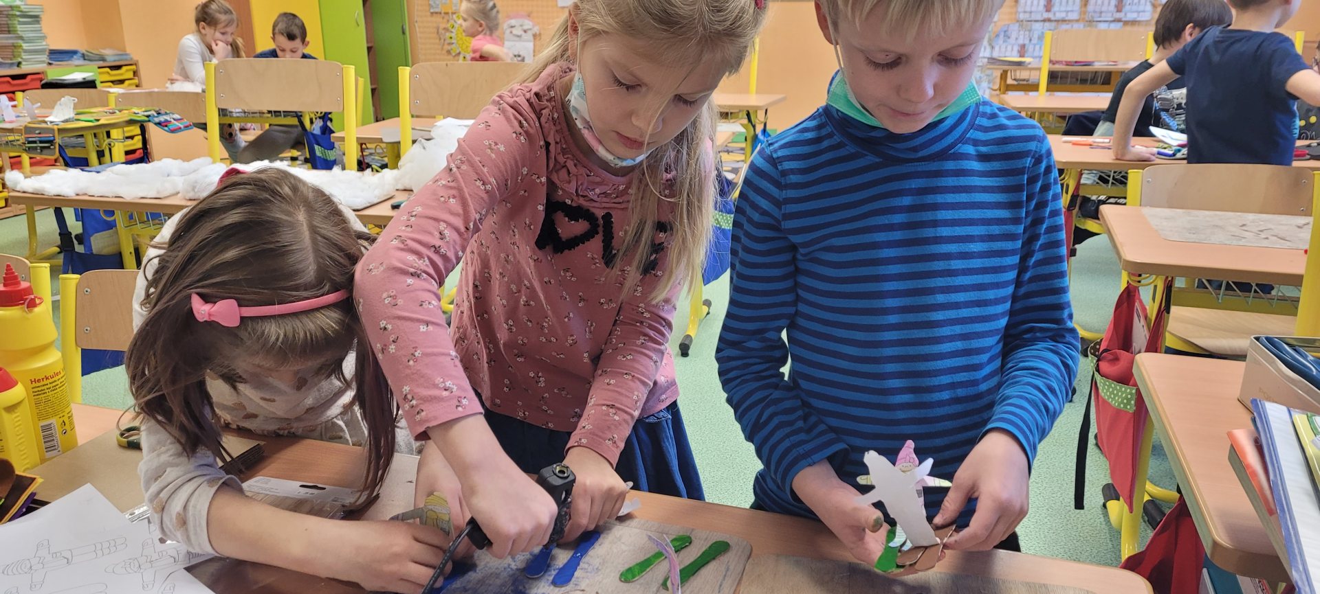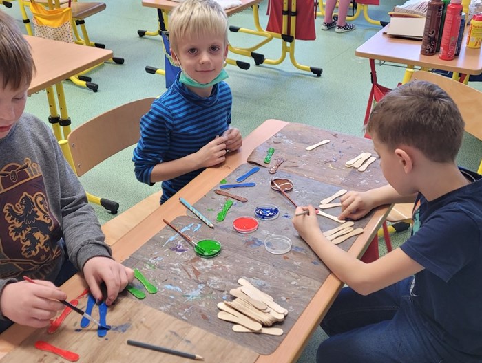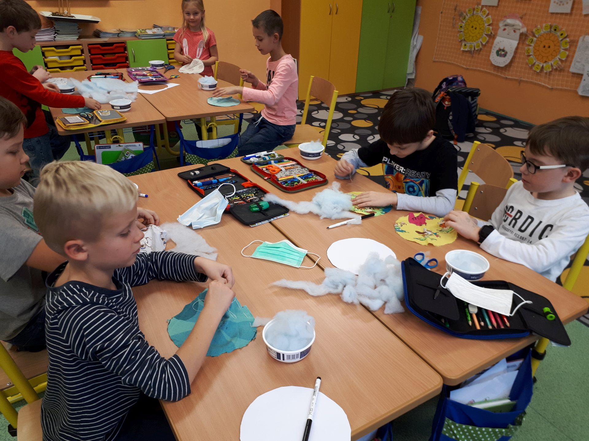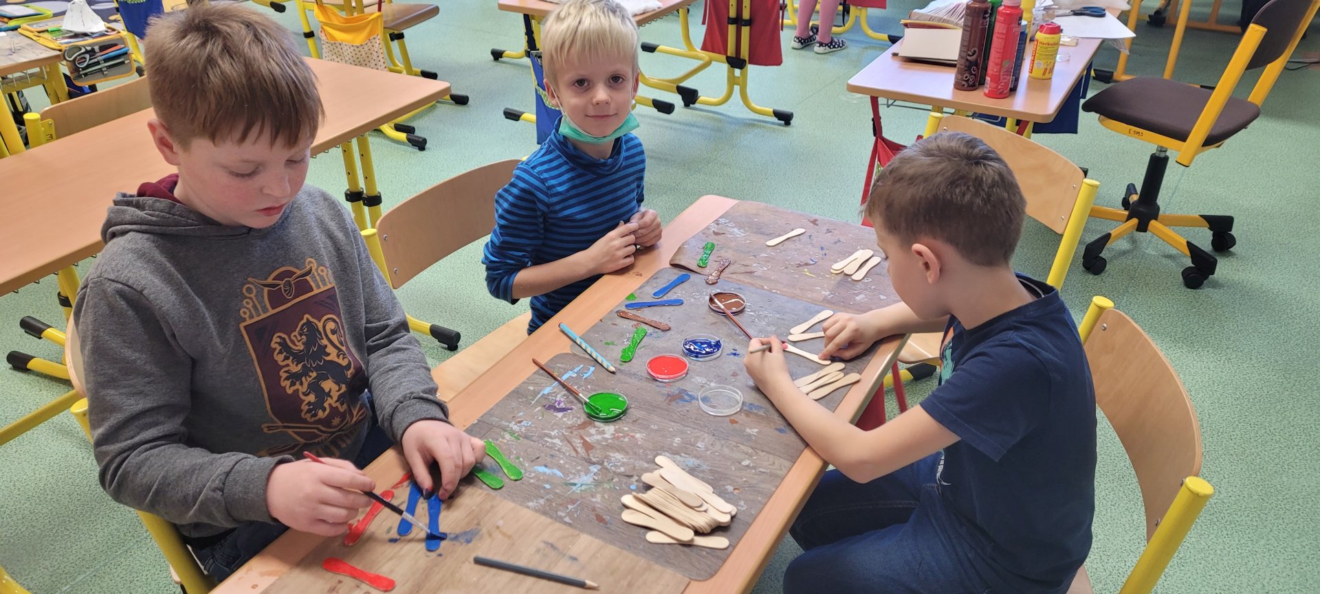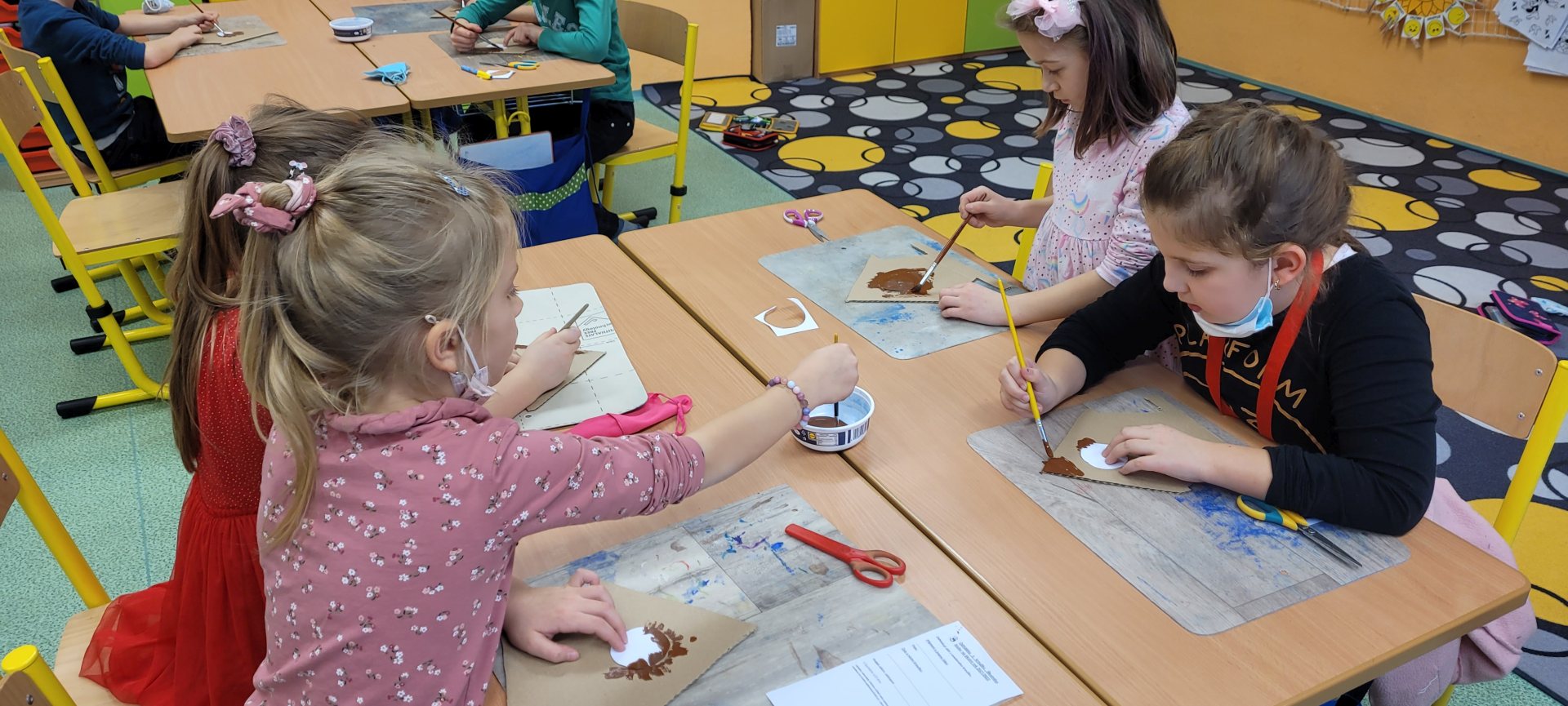 Kroužek Šikula završil v lednu své půlroční tvoření několika výrobky. Dárkem pro maminky byl náramek z paměťového drátu a taťkovi určitě udělal radost šitý vánoční skřítek. Pro radost si děti vyrobily tučňáka na plavací kře, závodního lyžaře na dřevěných špachtlích nebo filcové ptáčky v krmítku a sněhuláka na dveře.