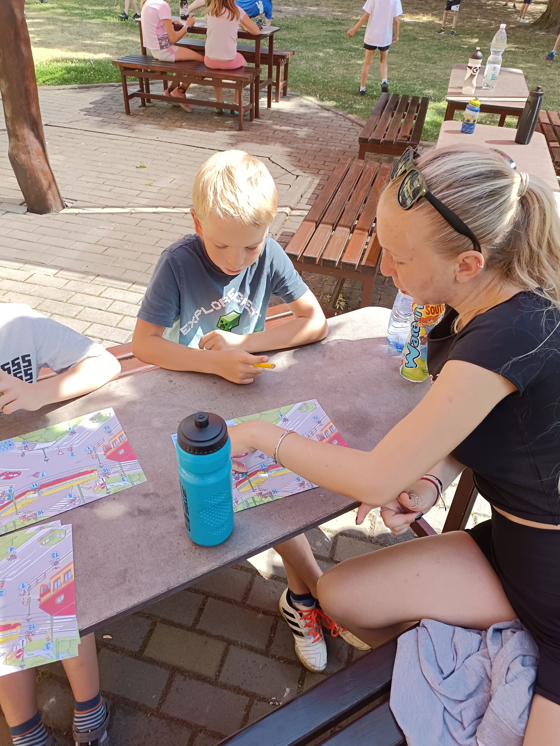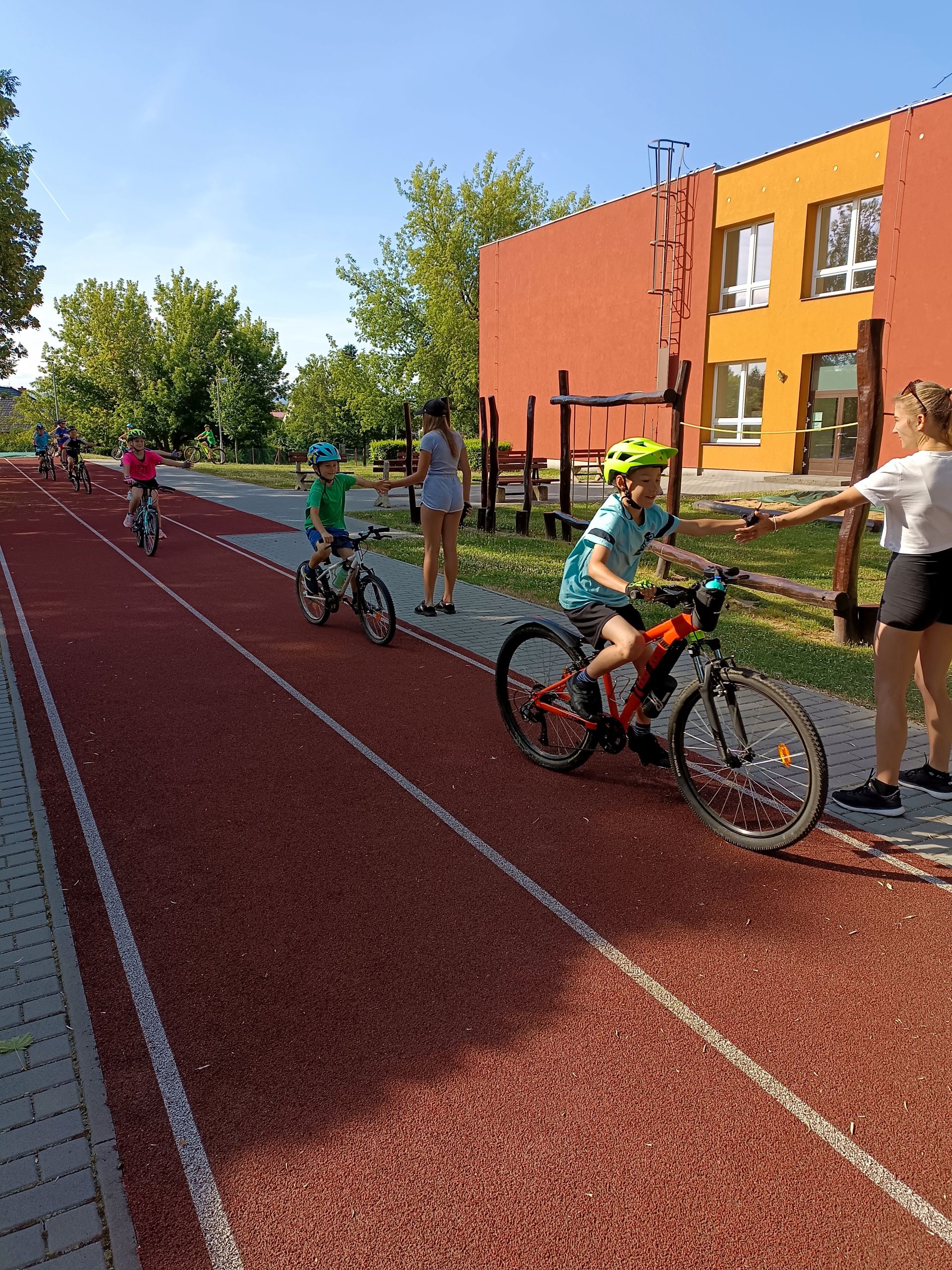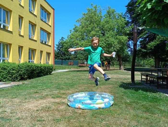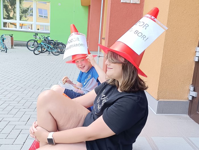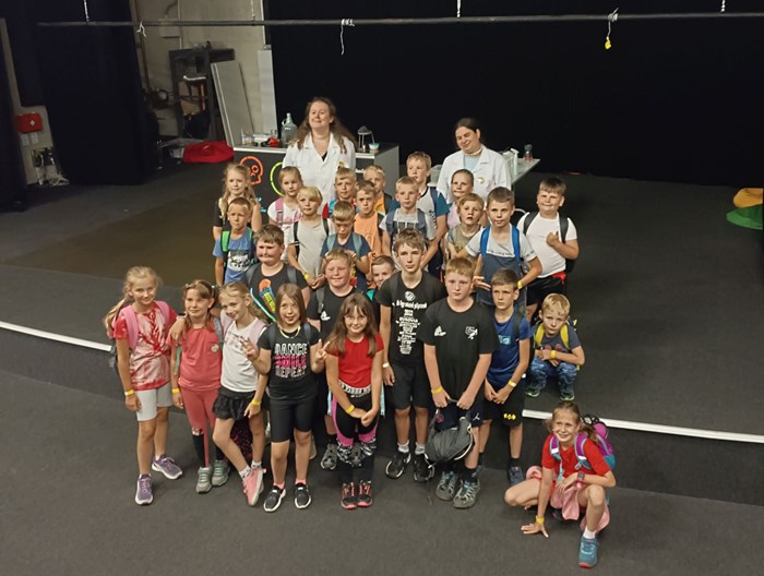 Druhý týden začal tábor na kolech. Prvním seznámením s kolem byla kontrola brzd a správné nastavení sedátka. Poté jsme děti naučili, jak správně mít nasazenou helmu. Zahřívací jízdy kolem školy prověřily dovednosti dětí. Používání pravé a levé ruky, včasné brzdění, jízda v peletonu a bezpečné zastavení. Hrou si vyzkoušely stabilitu stání na kole, i v kopci se s tím popraly statečně. Navštívil nás pan Blahut z Besipu, dětem připomenul bezpečnost na cestě. Menší výlet po Suchdolu jsme si ověřili, že děti zvládnou výlet, který byl plánovaný na kolech. Počasí nám ale nepřálo. Výlet na kole se přeložil na poslední den tábora. Ve čtvrtek jsme vyrazili do Ostravy - Velkého světa techniky. Divadlo chemických pokusů jsme si mohli vyzkoušet na vlastní kůži :o)). Páteční výlet se vydařil, děti jely, co jim síly stačily. Náš cíl byl pokořen, rozhledna v Blahutovicích. Celkový počet kilometrů je 70. Děti byly šikovné a každou výzvu plnily s nadšením.