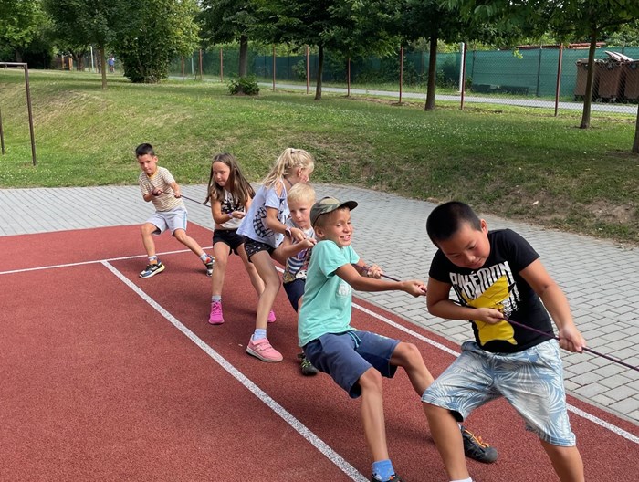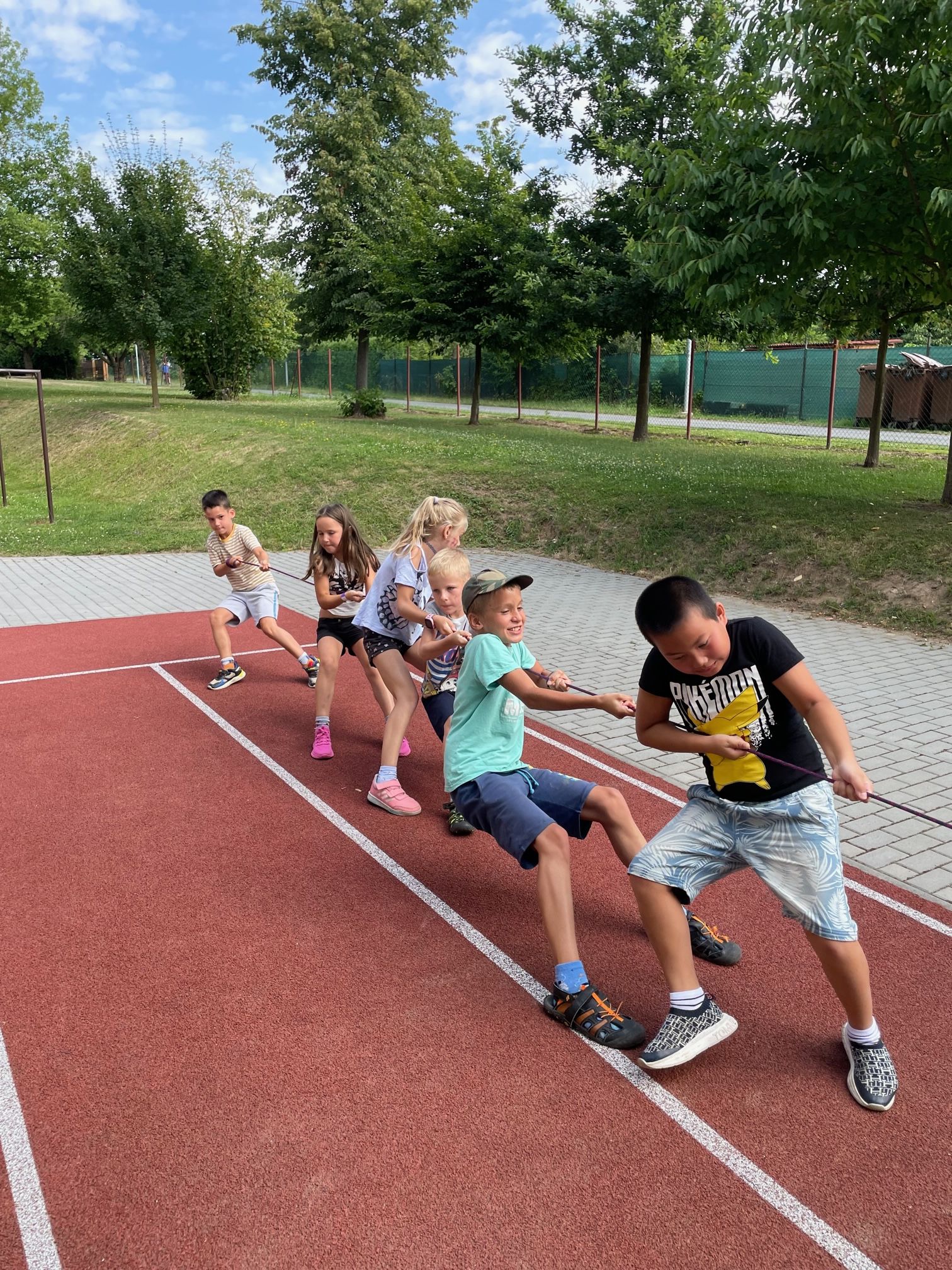 Téma posledního příměstského tábora naší školy bylo inspirováno příběhem Jaroslava Foglara. Ve kterém se kluci z Rychlých Šípů snaží v tajuplných Stínadlech vypátrat informace o záhadném hlavolamu - ježkovi v kleci. Program tábora byl plný her, soutěží a dalších aktivit, během kterých se děti dozvídaly jednotlivé události tohoto příběhu a samy je ve hrách mohly podobně jako Rychlé Šípy prožít. Podnikli jsme také celodenní výlet do Oder na koupaliště a do Kopřivnice na naučnou stezku a bowling. Věříme, že tak jako se v našem příběhu prohlubovalo přátelství mezi hochy z Rychlých Šípů, tak i naše děti mohly najít nové kamarády a prožít hezké a nezapomenutelné chvíle.