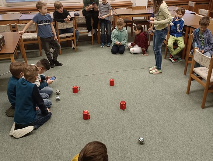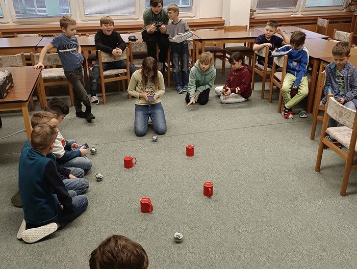 Postupem času děti získávají dovednosti v robotice. Využíváme dostupné prostředky a v minulé hodině jsem se seznámili s našimi malými roboty, které máme ve škole. Děti se učily naplánovat cestu robotovi pomocí aplikace v mobilním telefonu. Robot umí jet rychle a pomalu, změnit směr, změnit barvu a dokáže mluvit. V dalších hodinách budeme pokračovat.