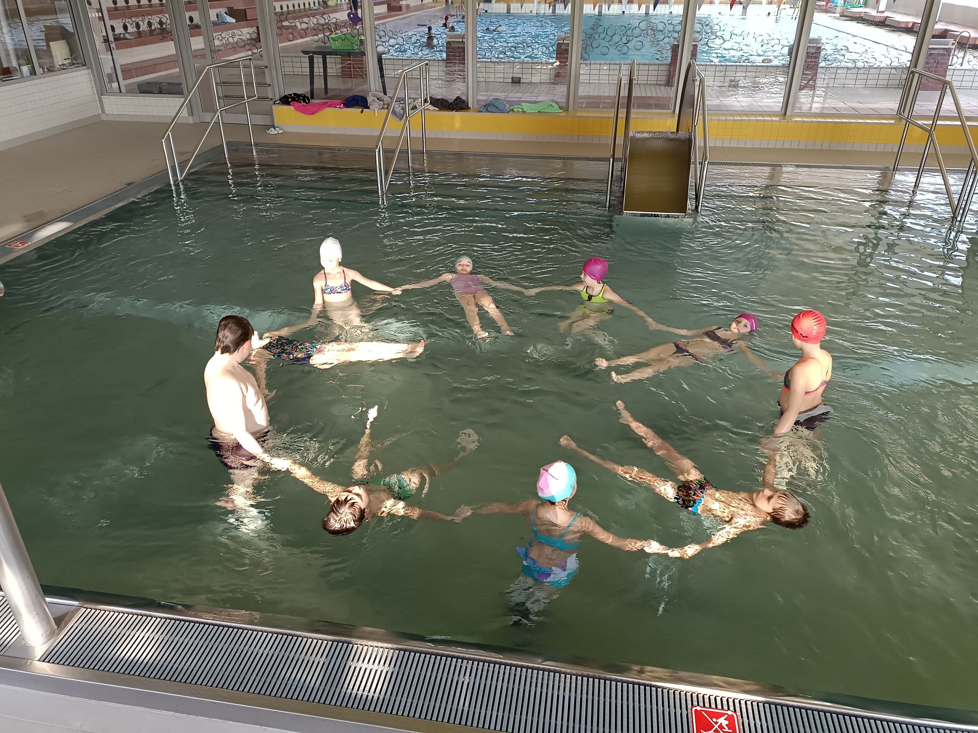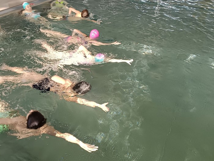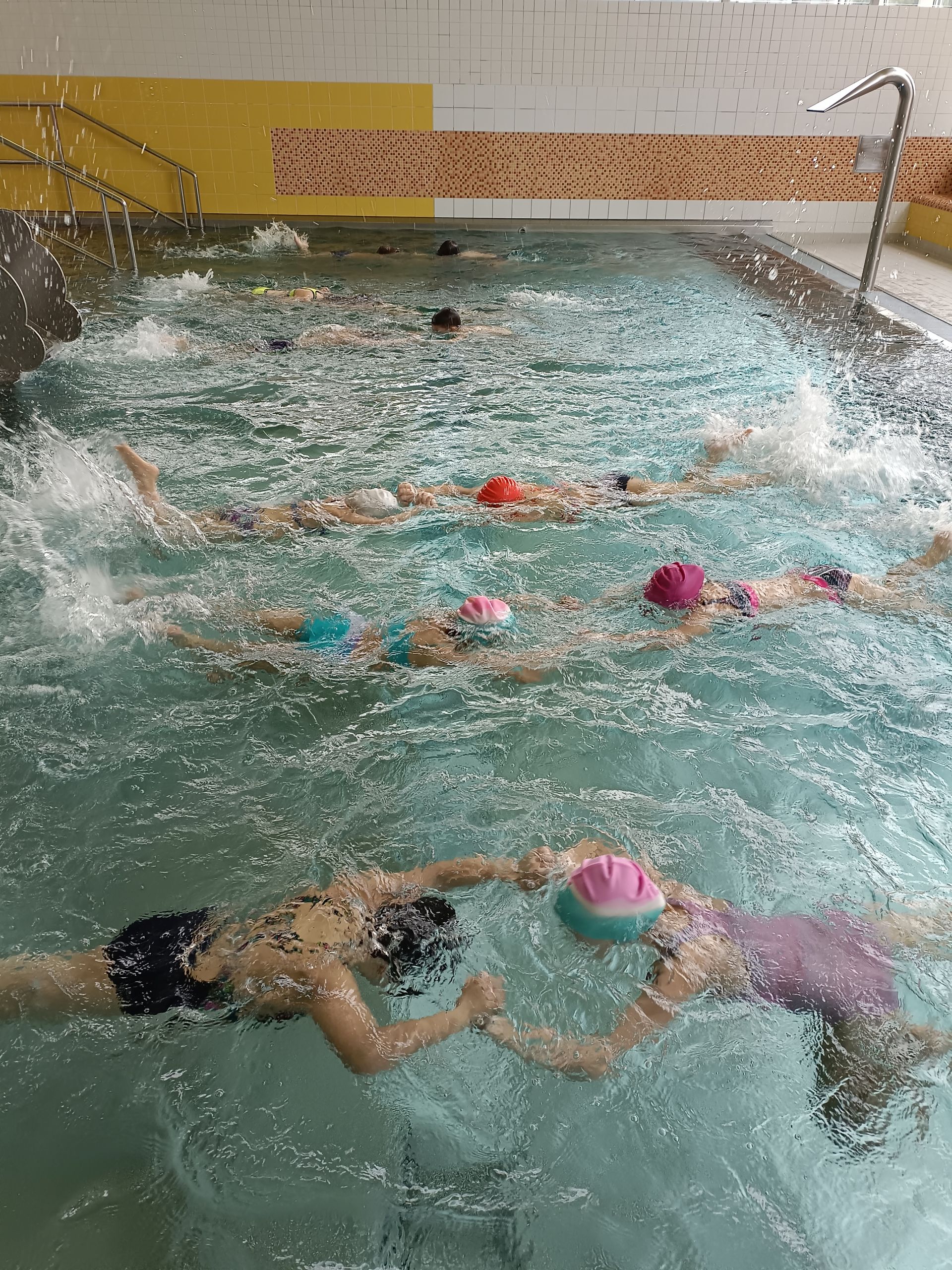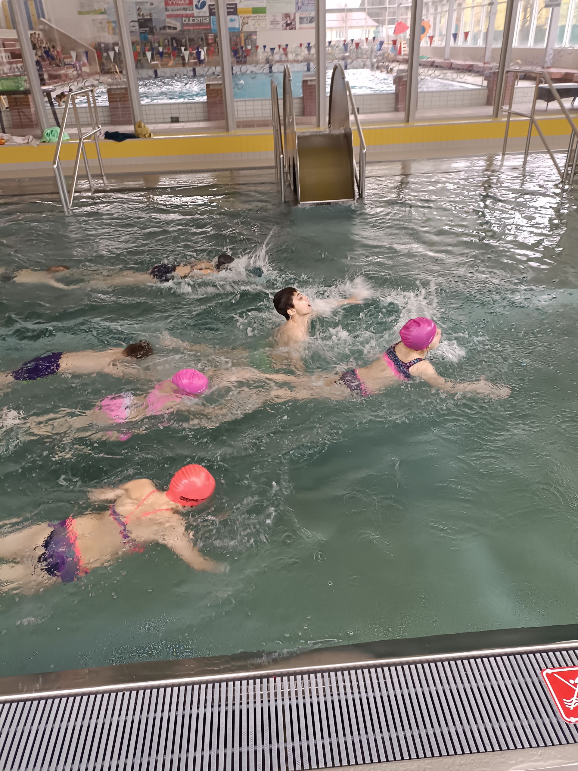 Školní rok se nám přehoupl do 2. pololetí. Kouzlo vodní hladiny děti vyzkoušely v novém kurzu Krokodýl. Nové děti vzaly vodu za své a zapojily se. Jako potápky plnily úkoly a soutěžily. Na závěr hodiny dostaly jako odměnu bublinky a skluzavku.