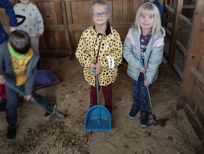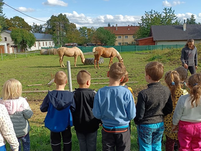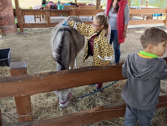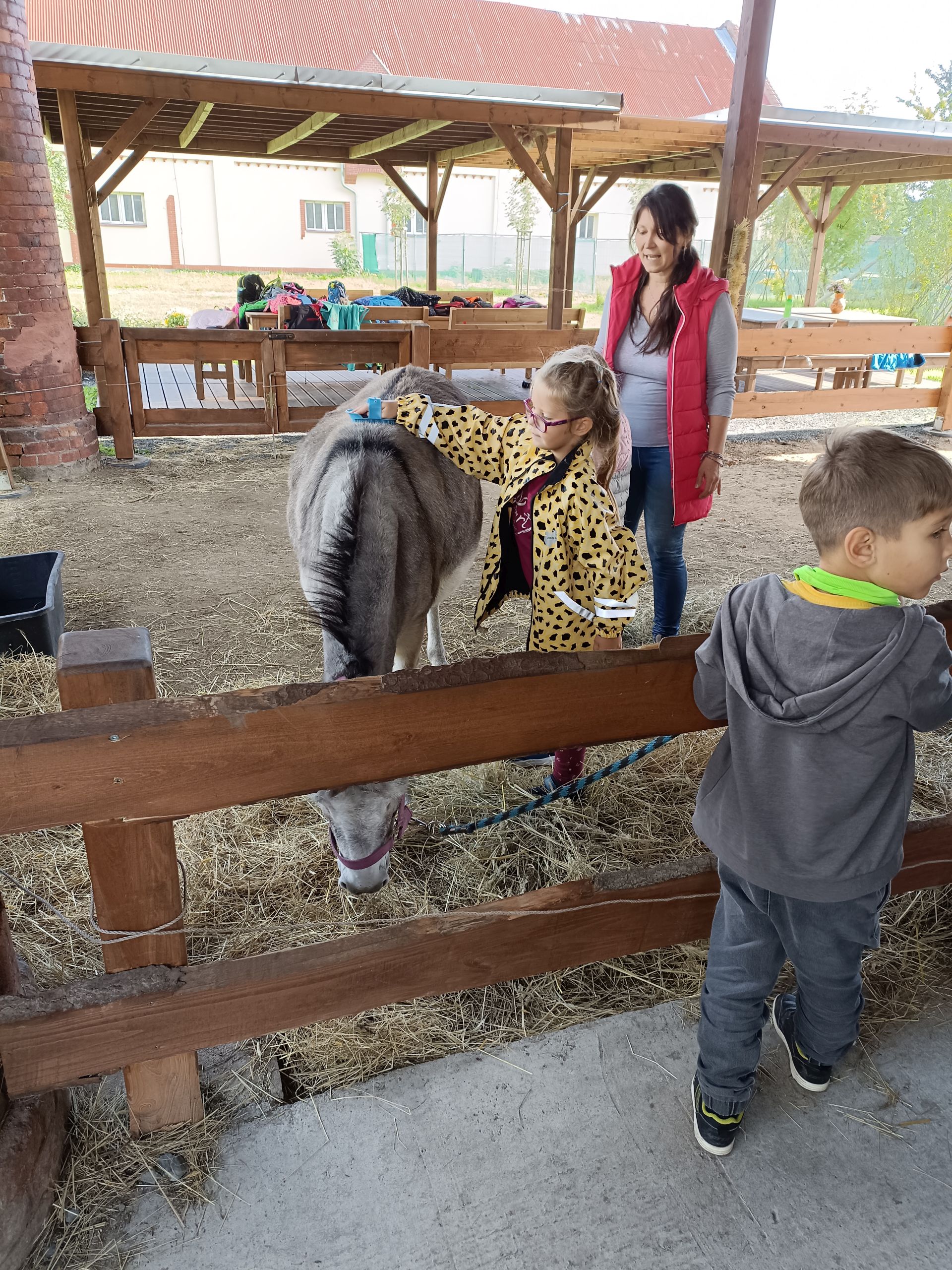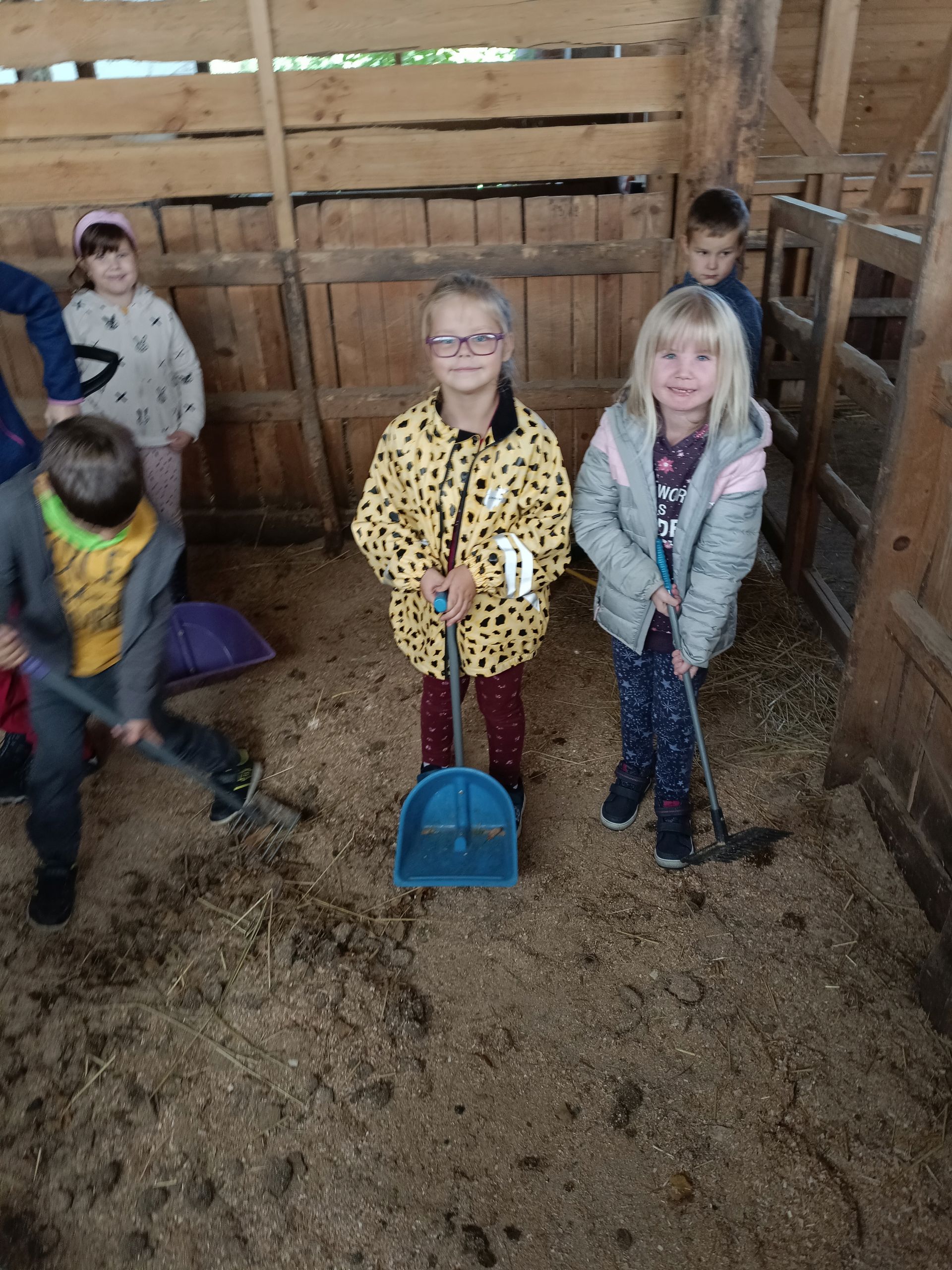 Děti se seznámily se zvířátky žijící na tomto statku. Jak se o ně starat a jak je krmit. Nejvíce se jim líbilo, když si mohly vyzkoušet vykartáčovat oslíka Karkulku. Nezalekly se ani úklidu ve stáji. Práce jim šla hezky od ruky. Počasí nám přálo, výlet jsme si užili. Některé děti chtěly zůstat a dále pomáhat.