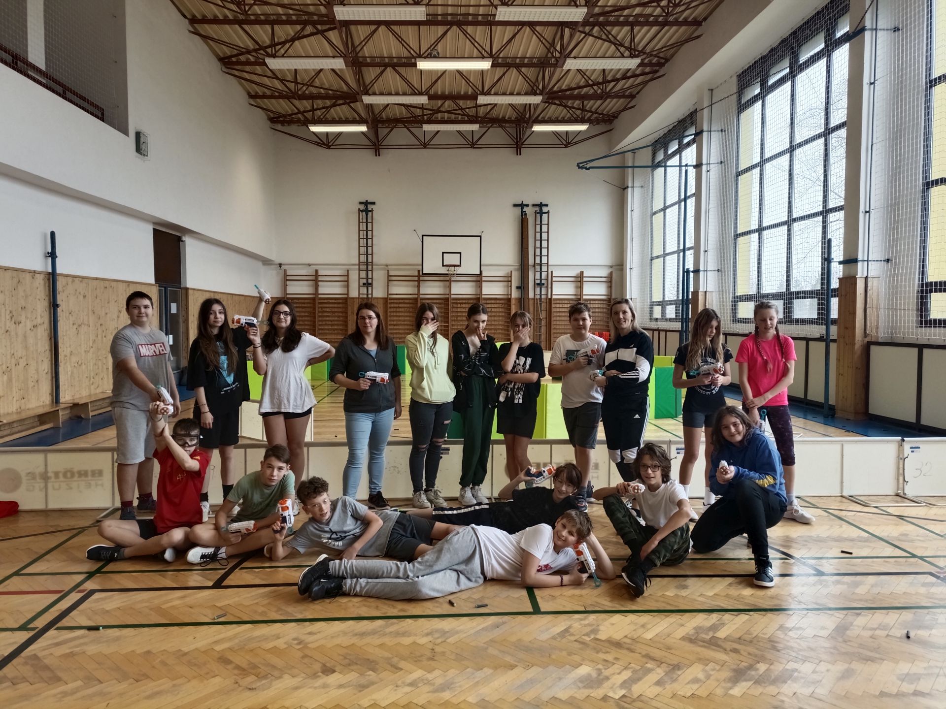 Nadšení žáci 6. a 7. ročníku zažili akci při hodině tělesné výchovy. Téma tohoto dne bylo „Nerfky v akci“, a děti měly možnost se vyřádit a projevit týmového ducha. V rámci této aktivity byly žákům poskytnuty speciální nerf pistole a dostatečné množství střeliva. Hřiště bylo připraveno s různými překážkami a úkoly, což vytvořilo zajímavý terén pro boj o vítězství. Žáci se rozdělili do týmů a začal náročný, ale zábavný souboj.