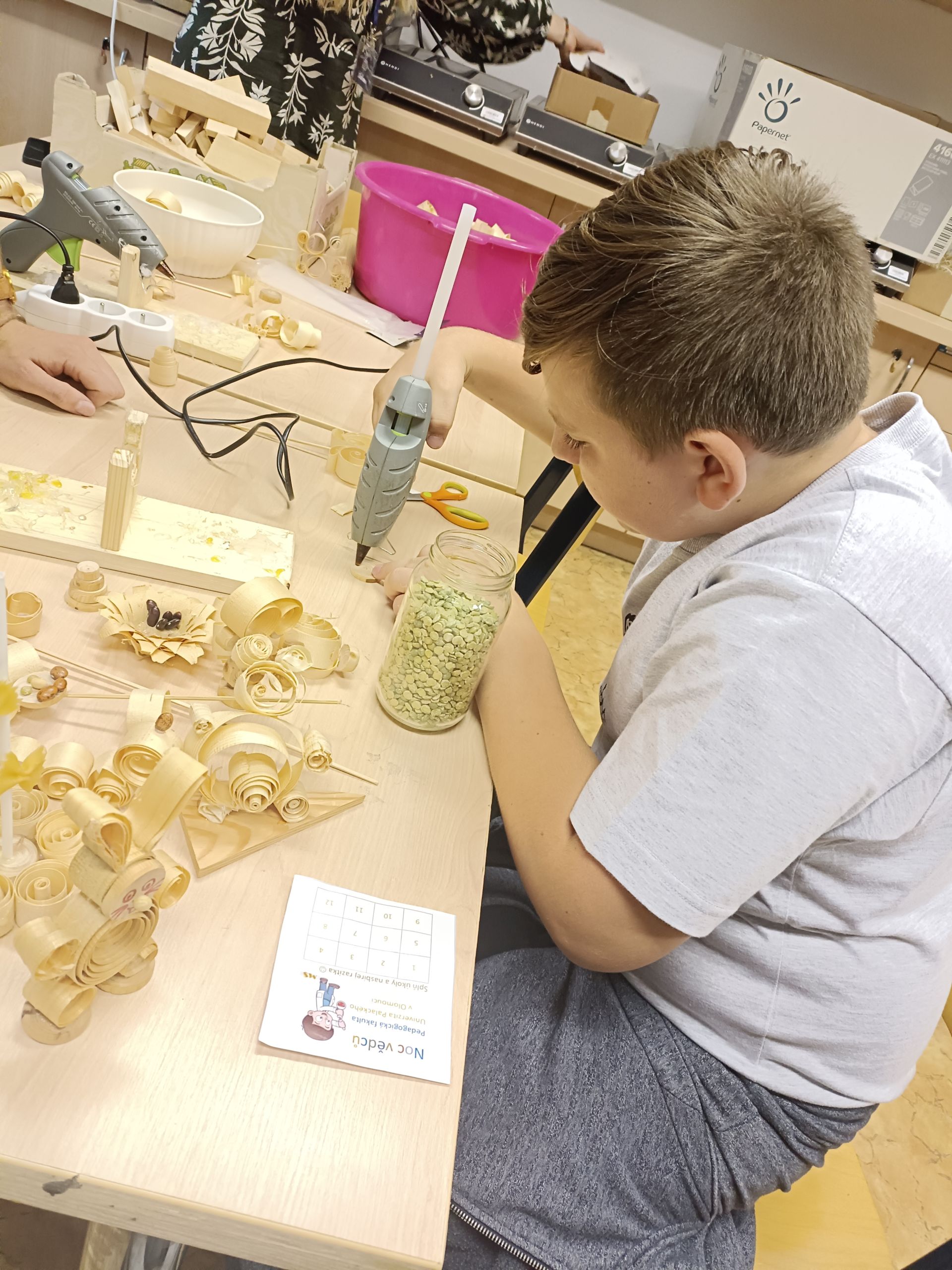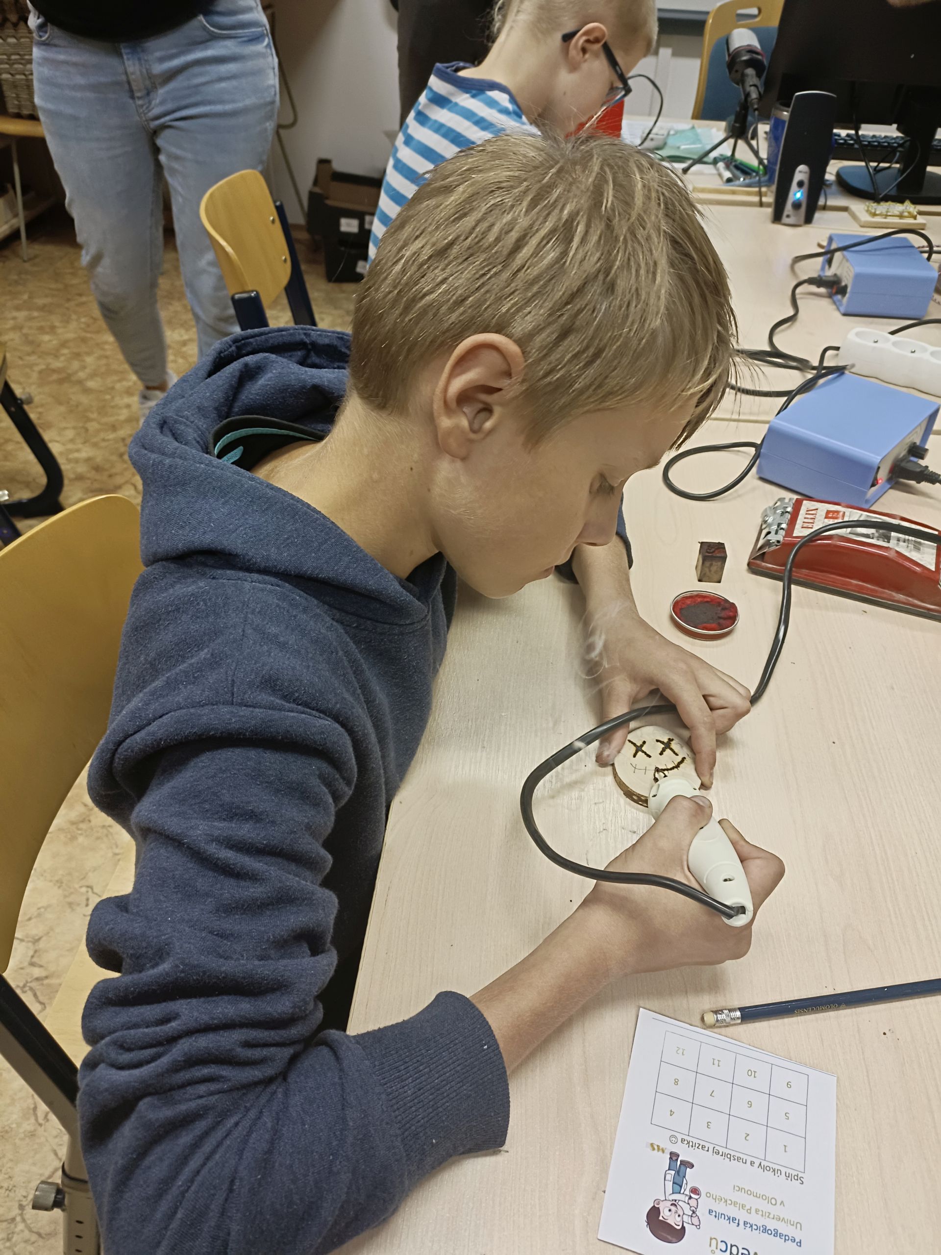 První naší zastávkou byla Pedagogická fakulta v Olomouci. Všechny prostory byly obsazeny různými činnostmi, které zaujaly, jak malé tak i velké. Práce s přírodními materiály, výroba palačinek, hlavolamy, svět včel, roboti a digitální svět, atd. Splněním úkolu bylo ohodnoceno razítkem a po nasbírání 12 razítek získal každý odměnu.