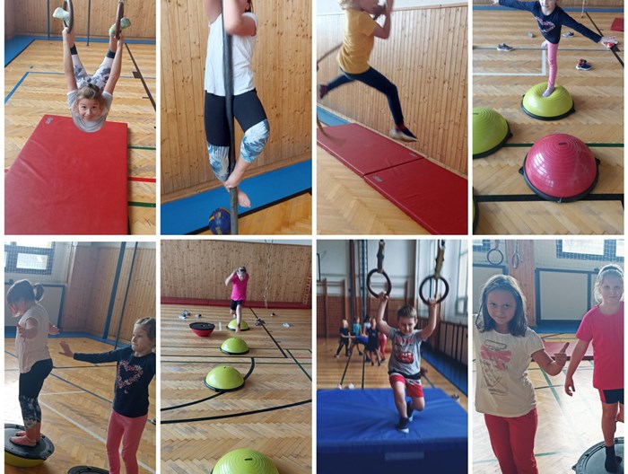 V hodinách pohybové všestrannosti hravou formou rozvíjíme atletické a gymnastické dovednosti, což vidím jako základ pro všestranný rozvoj. Hrajeme různé hry zaměřené od rozvoje síly, obratnosti a spolupráce s kamarády až po rychlost a vytrvalost. Děti si v rámci jednotlivých hodin vyzkoušely pohybové hry s kinballem, theegballem, proběhly štafetové závody s pěnovými tyčemi a různé překážkové dráhy na čas. Velmi oblíbenou aktivitou je cvičení na stanovištích s využitím různých sportovních nářadí a náčiní.