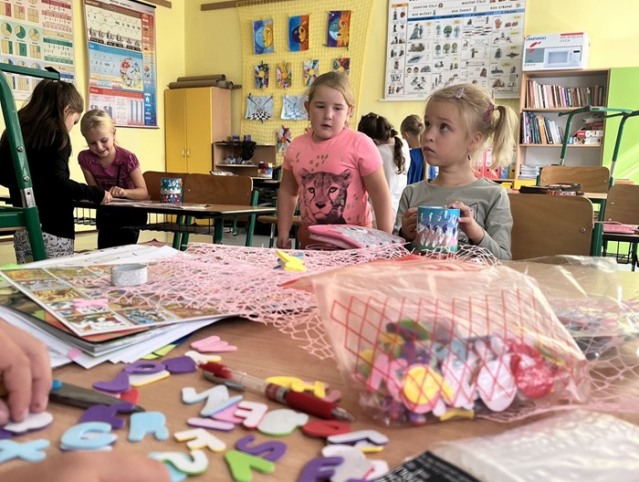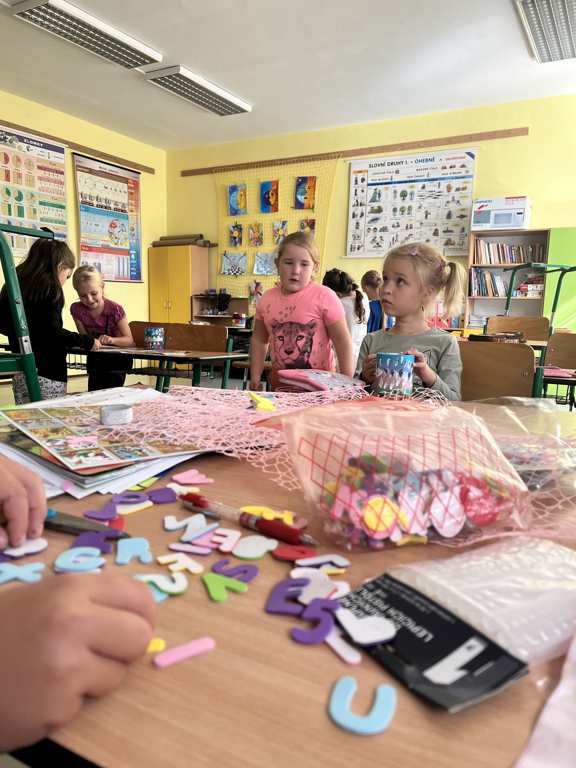 V kroužku Tvořílků pracují děti s různými materiály. Vyrobily si již podzimní svícen ze skleničky a listí, zahrály si na vítr při výrobě trošku jiného sněžítka, které samy nazvaly "listítko" nebo třeba dárkovou tašku, aby měl Ježíšek do čeho dát dáreček a dokonce malovaly na dřevo.