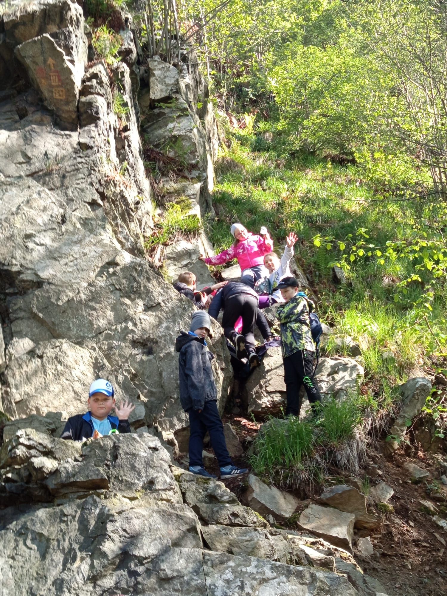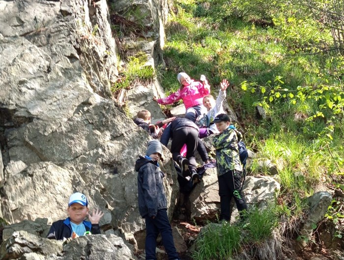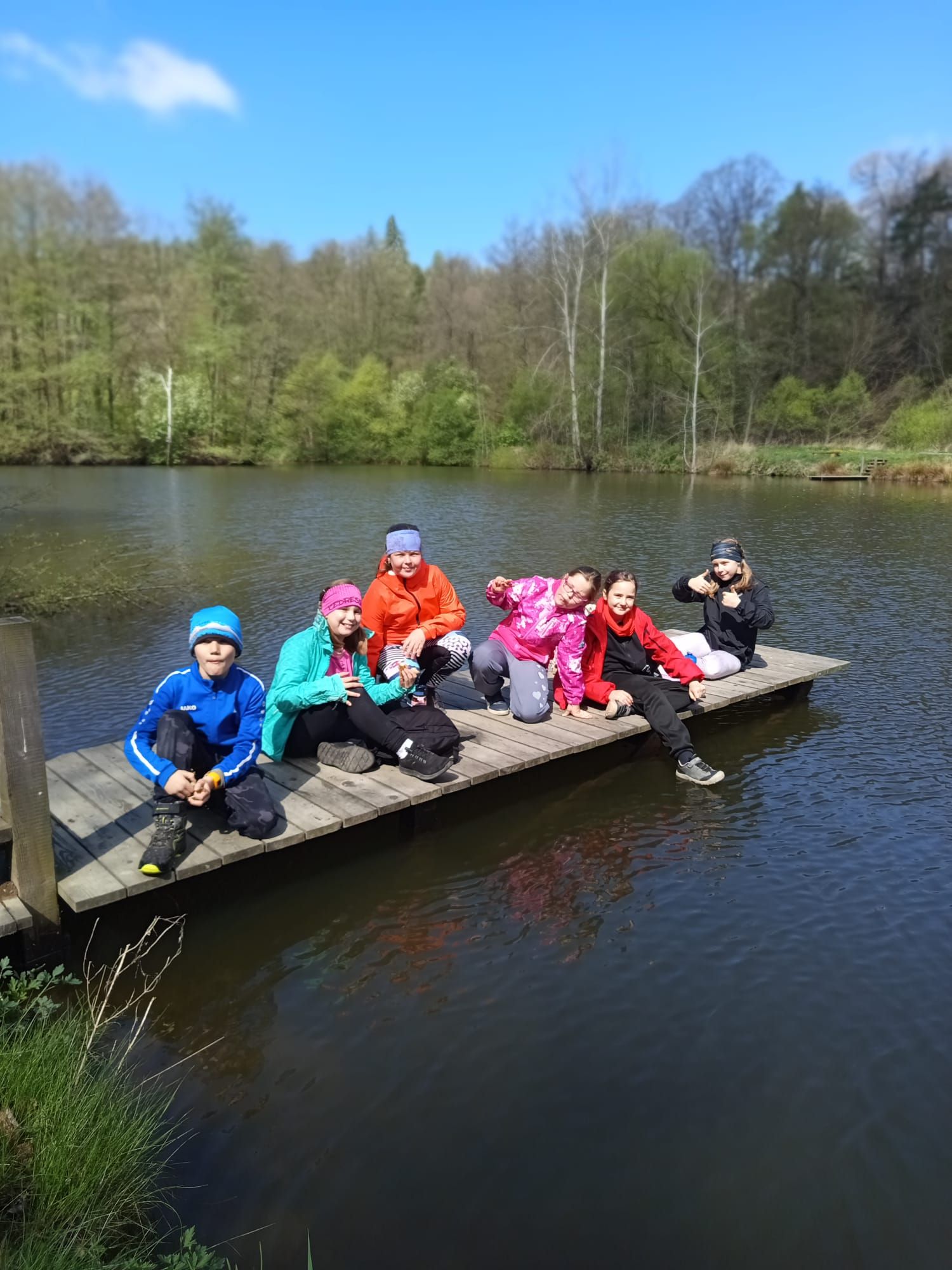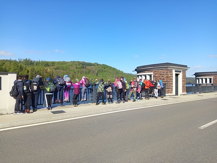 Po krátké pauze jsme s „Rohlíky na čundru“ - tak jsme si začali říkat, když se scházíme pokaždé v téměř stejném složení, vyšli zase na výlet. Tentokrát jsme vyrazili prozkoumat okolí přehrady Kružberk. V sobotu 26.4. 2025 jsme časně ráno nasedli na vlak do Svatoňovic, odkud jsme se vydali po cestě k přehradě. Někteří zde byli poprvé, a tak neskrývali svůj údiv na touto monstrózní stavbou. U cvičných skal jsme si dali krátkou pauzu k prozkoumání okolí a poté pokračovali po červené turistické značce k Davidovu Mlýnu, kde jsme se občerstvili, vyřádili na lanové dráze a pak se vydali zase o kousek dál. Nejhezčí část cesty byla před námi, a to rozhledna ve Starých Těchanovicích. Zde se nám rozkryla nádherná panoramata naši krásné krajiny. V pozadí toho všeho se majestátně rozléhala přehrada Kružberk, nejvyšší vrchol Jeseníků - Praděd a nám nejbližší vyhaslá sopka Velký Roudný. Vše hrálo barvami, krásně vonělo, ptáčci zpívali a slunce hřálo o sto šest. Cestu zpět do Svatoňovic jsme si zkrátili přes les a louky a u nádraží jsme byli cobydup. Výlet byl ve znamení dobré nálady, pohody a krásného počasí.