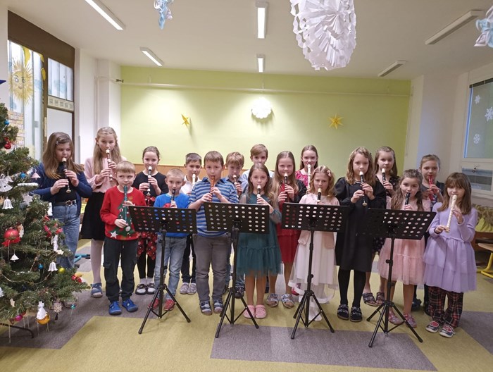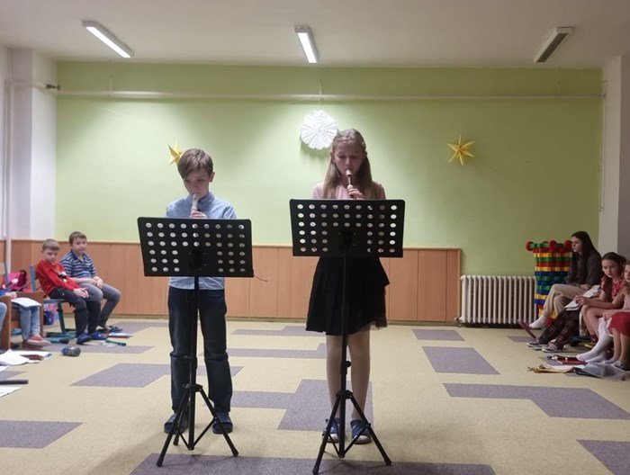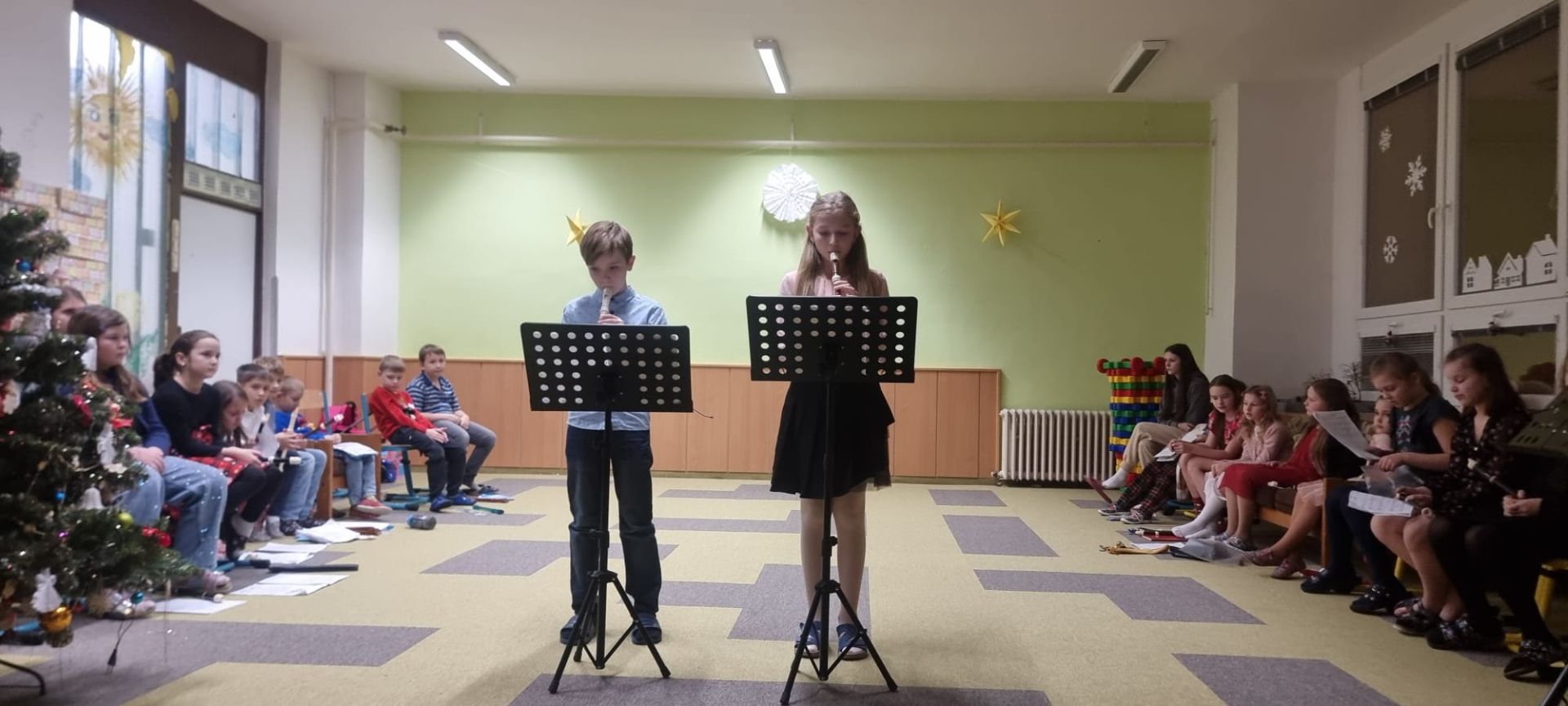 V předvánočním období děti z kroužku hry na zobcovou flétnu uspořádaly vánoční vystoupení pro své rodiče. Nejmladší hráči zahráli jednoduché lidové písně, zatímco ti zkušenější se pustili do náročnějších skladeb. Program byl pestrý - zazněly písničky z pohádek i filmů a nechyběly ani tradiční vánoční koledy.