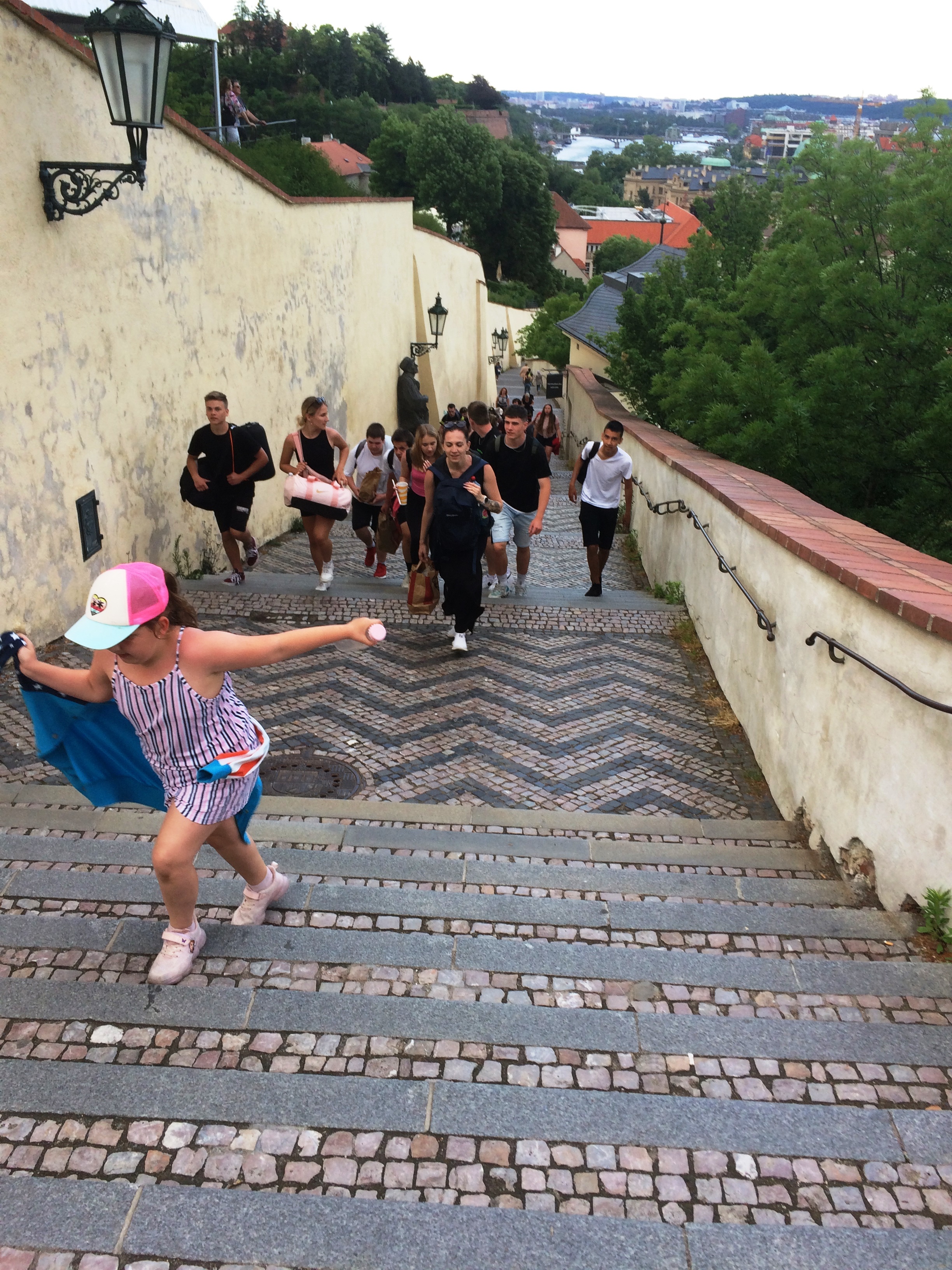 Následoval rozchod v centru Terezína (bývalého židovského ghetta), poté zase přesun na vlak a návrat do Prahy. Tam jsme se z nádraží přemístili na Václavské náměstí, dali krátký rozchod na nákupy, a poté přes Staroměstské náměstí a Karlův most na Pražský hrad, s minimalistickým historickým výkladem. Vstup do starodávného sídla králů se samozřejmě neobešel bez nesmyslné bezpečnostní prohlídky, která nás docela slušně zdržela. Pověřený policista byl ale veselá kopa, takže nám to jakžtakž vykompenzoval pár vtipy. Po průchodu hradem jsme zamířili ke kapucínskému klášteru na Loretánské náměstí, a po chvíli hledání vstupních dveří, a poté někoho, kdo by nám je otevřel, jsme se úspěšně ubytovali.