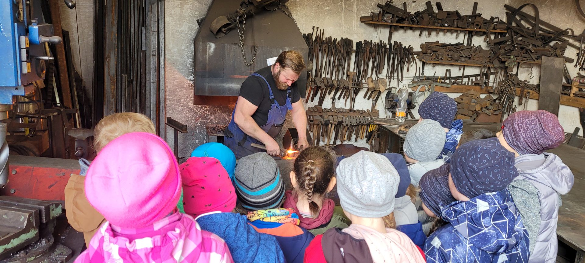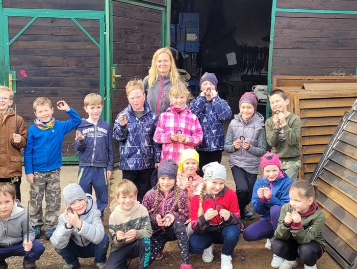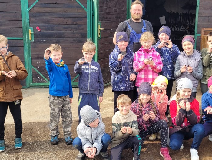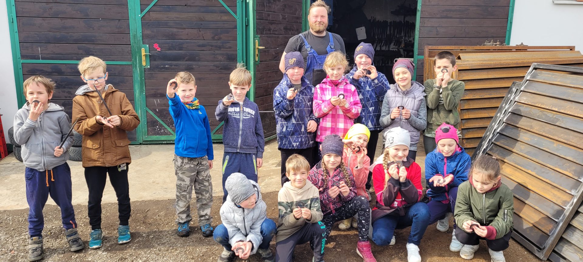 V pátek 22. 04. 2022 se třída 2.B vydala na návštěvu k panu kováři, aby zjistila, co všechno jeho povolání obnáší. Ten holky a kluky zasvětil do svého řemesla, naučil je pojmenovávat pracovní nářadí a nakonec si všichni vyzkoušeli, že kování je opravdu dřina. Za svou snahu každý dostal podkovičku pro štěstí a celí špinaví jsme se vraceli do školy. Děkujeme za exkurzi.
