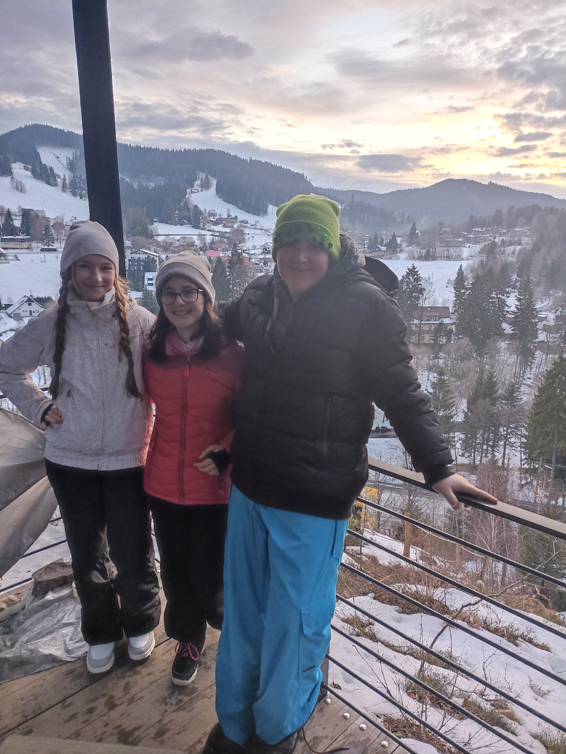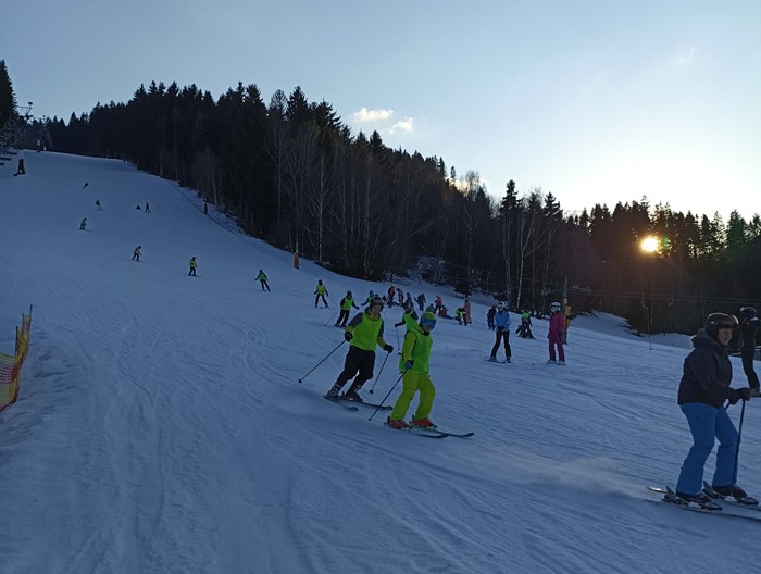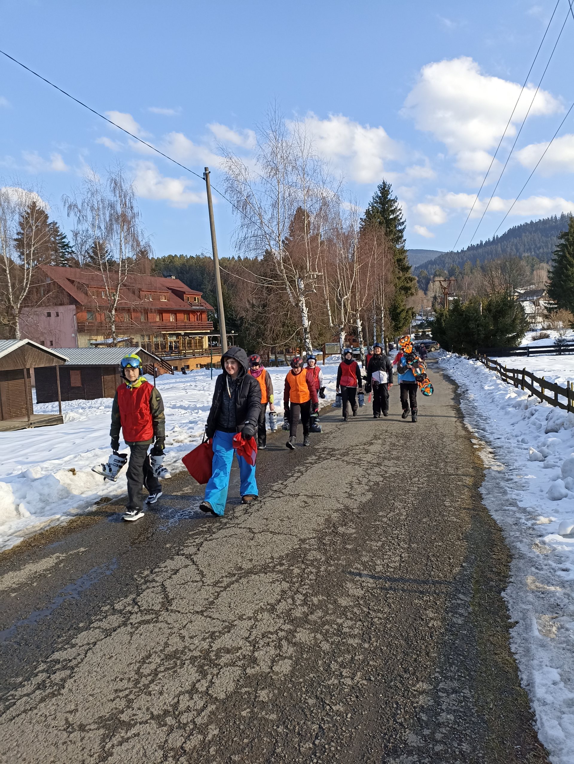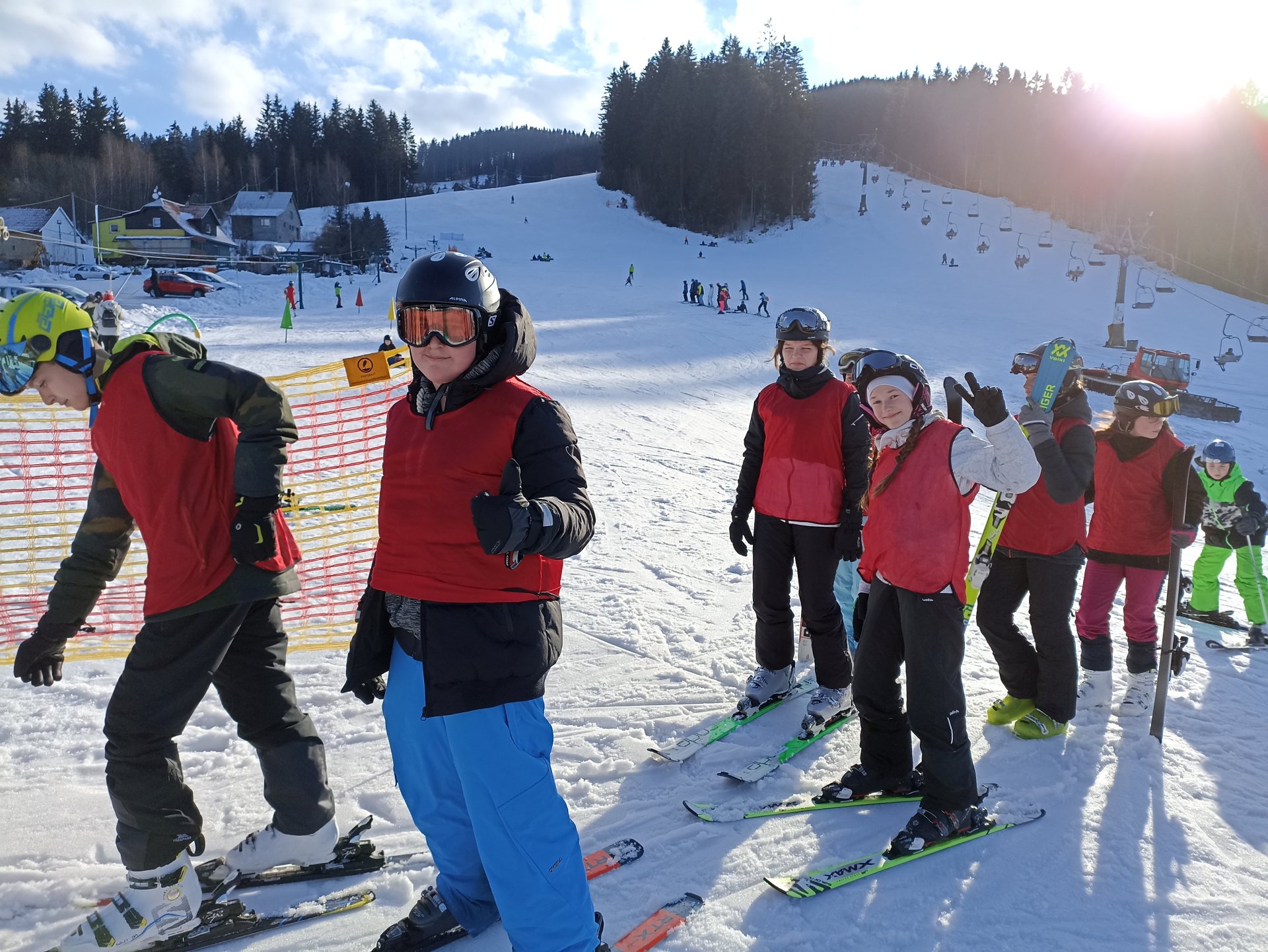 Počasí nám až na jedno dopoledne přálo, a tak jsme si kurz skutečně užili. Po dobu pobytu jsme měli nastavený denní režim. Od pondělního příjezdu až do pátečního odjezdu jsme prožívali dny velmi perné. Každé ráno nás čekala snídaně, odchod na sjezdovku, oběd, krátký odpočinek a zase hurá na svah zdokonalovat své lyžařské a snowboardové umění. Po odpoledním výcviku následovala chvilka klidu a poté pestrý večerní program v režii naší jedinečné MONČI, která si pro všechny připravila nezapomenutelné aktivity plné zábavy a legrace, za které ji patří obrovské DÍKY. Myslím, že máme všichni na co vzpomínat. V úterý nás poctil svou návštěvou náš pan ředitel, podíval se jak to našim lyžníkům a snowboardistům krásně jezdí a po odpoledním výcviku jsme se ještě společně vydali, někteří už z posledních sil 😊, zdolat zdejší vyhlídku, ze které se nám naskytl úchvatný pohled do okolní krajiny Horní Bečvy.