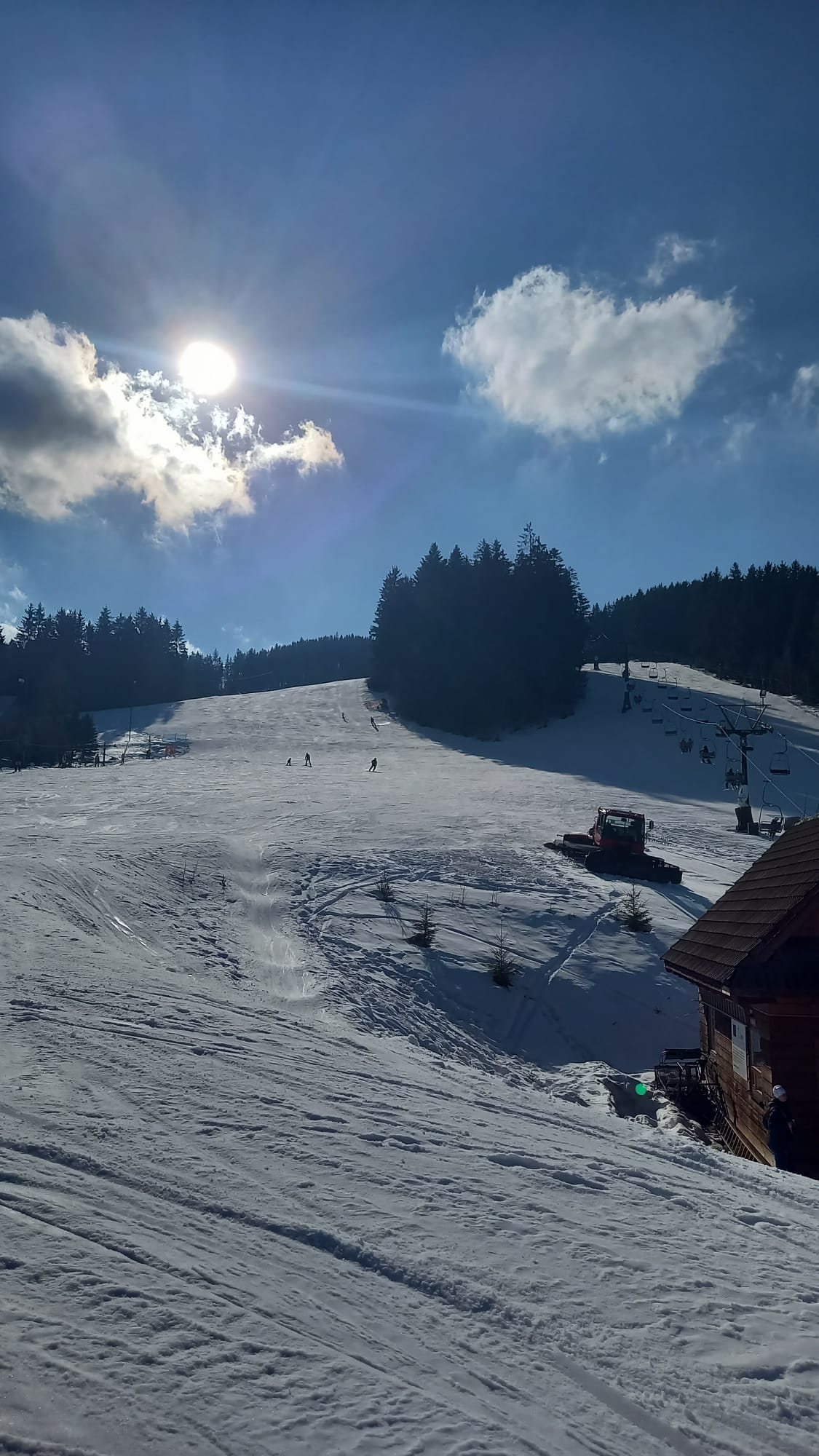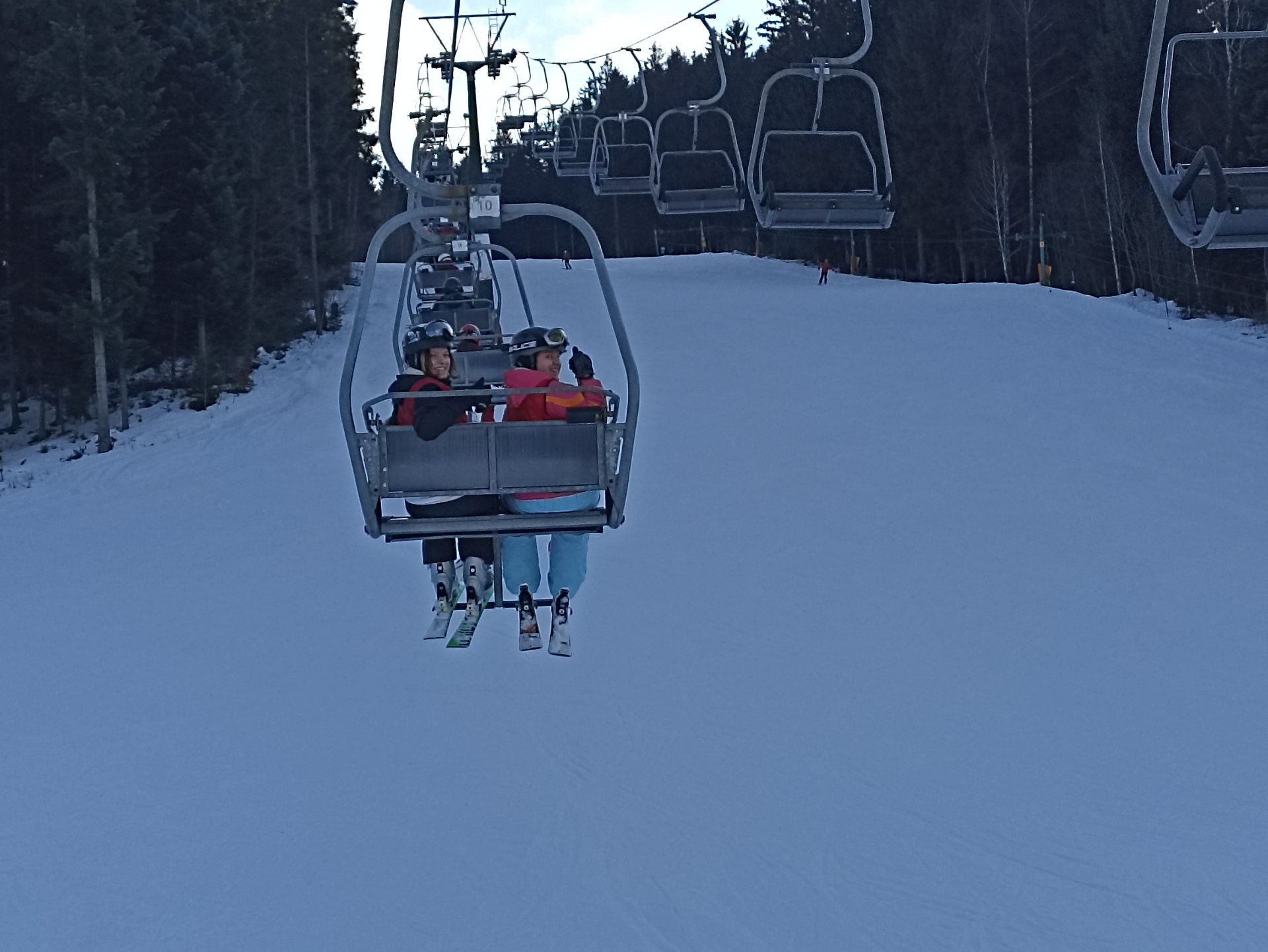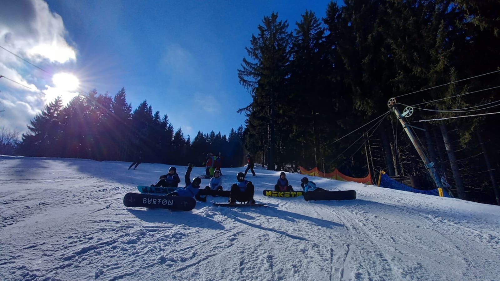 Počasí nám až na jedno dopoledne přálo, a tak jsme si kurz skutečně užili. Po dobu pobytu jsme měli nastavený denní režim. Od pondělního příjezdu až do pátečního odjezdu jsme prožívali dny velmi perné. Každé ráno nás čekala snídaně, odchod na sjezdovku, oběd, krátký odpočinek a zase hurá na svah zdokonalovat své lyžařské a snowboardové umění. Po odpoledním výcviku následovala chvilka klidu a poté pestrý večerní program v režii naší jedinečné MONČI, která si pro všechny připravila nezapomenutelné aktivity plné zábavy a legrace, za které ji patří obrovské DÍKY. Myslím, že máme všichni na co vzpomínat. V úterý nás poctil svou návštěvou náš pan ředitel, podíval se jak to našim lyžníkům a snowboardistům krásně jezdí a po odpoledním výcviku jsme se ještě společně vydali, někteří už z posledních sil 😊, zdolat zdejší vyhlídku, ze které se nám naskytl úchvatný pohled do okolní krajiny Horní Bečvy.