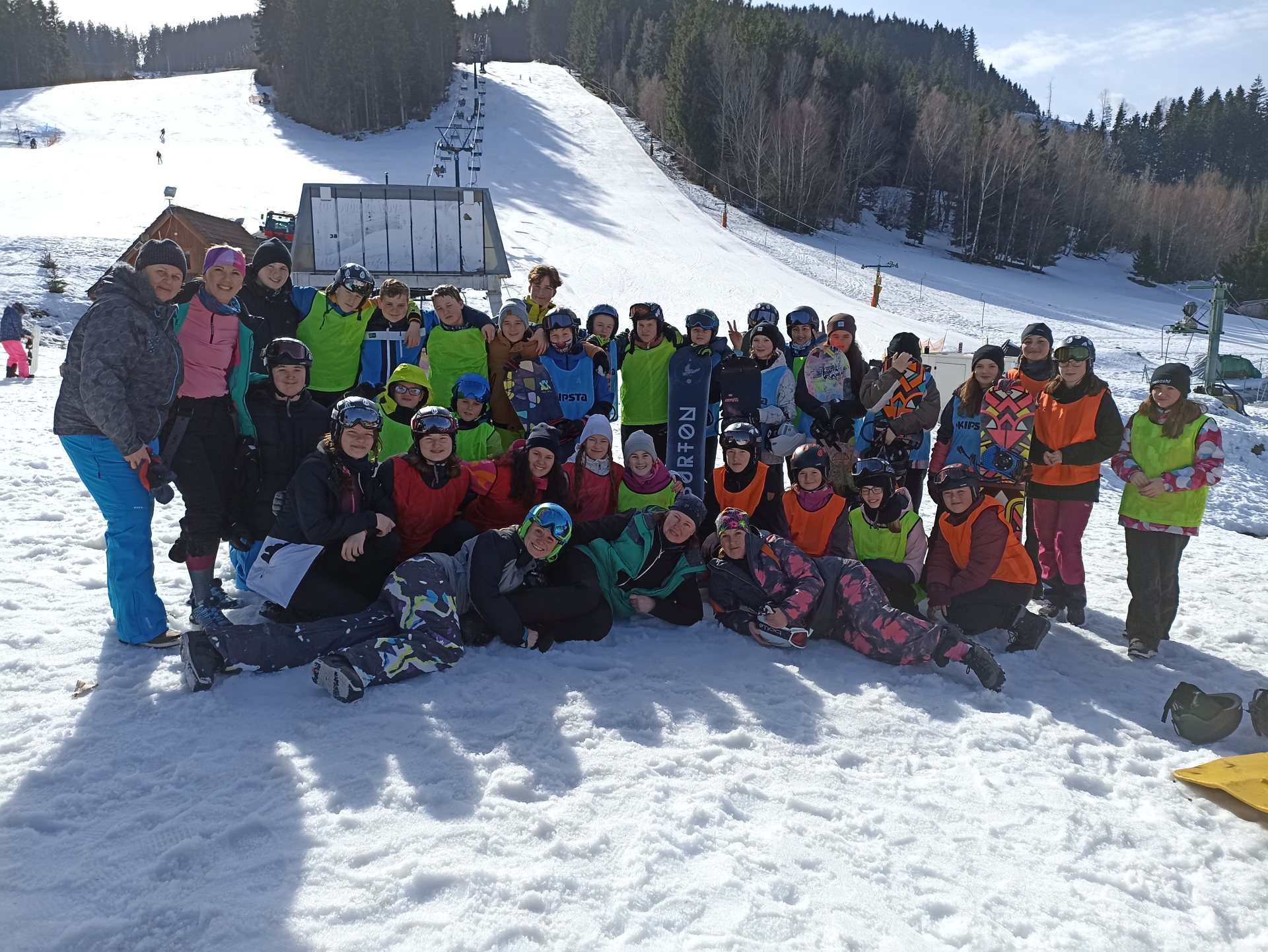 Hned po jarních prázdninách se přihlášení žáci 7., 8., a 9. ročníků vydali čelit velkému pěti dennímu dobrodružství na lyžařsko – snowboardový výcvikový kurz.