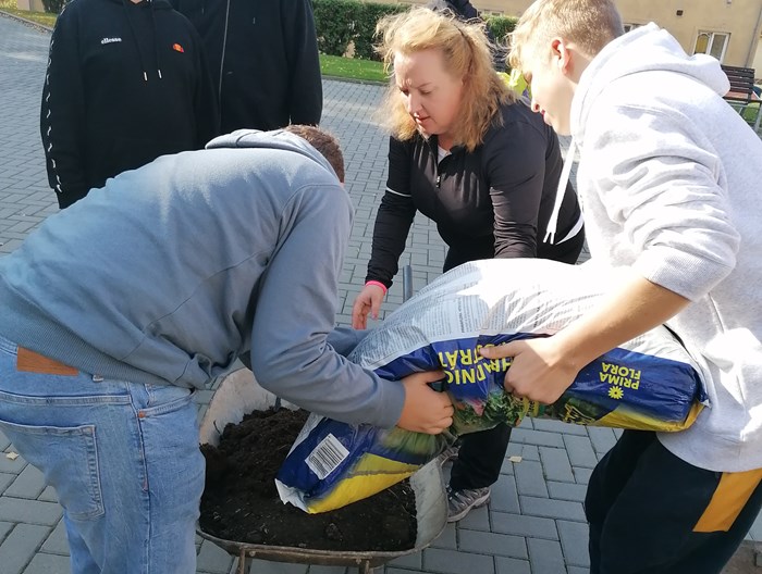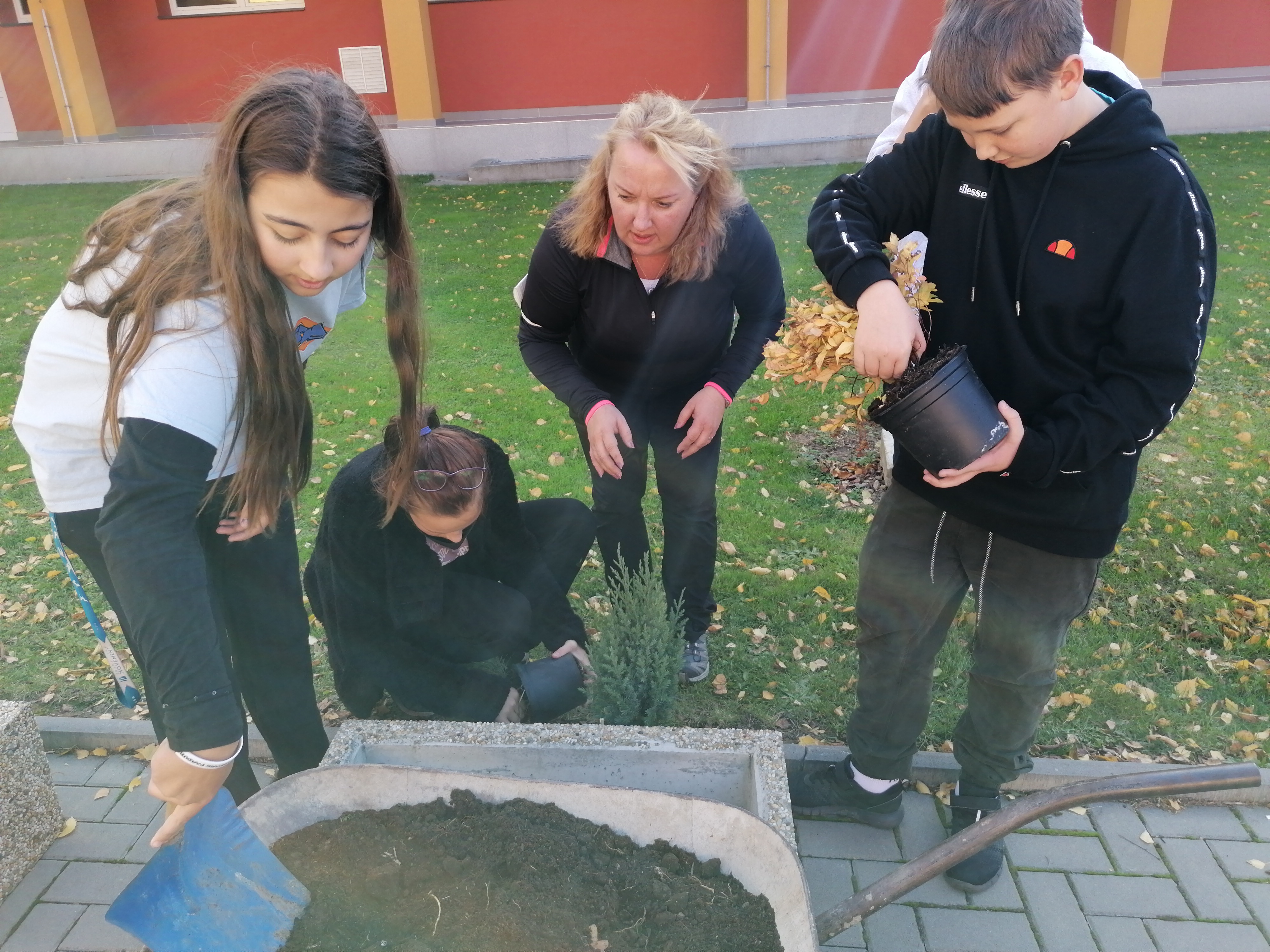 Na začátku letošního podzimu jsme se s žáky 8.třídy, v doprovodu paní učitelky, pustili do sázení venkovních truhlíků...
