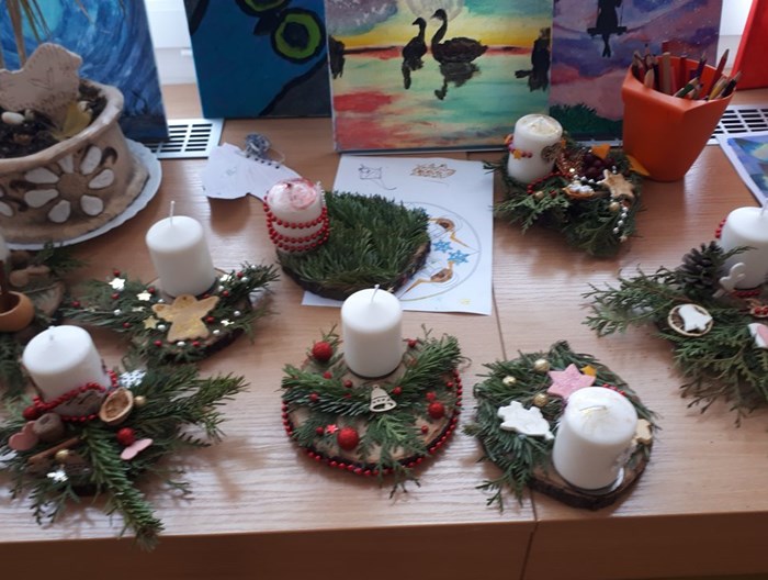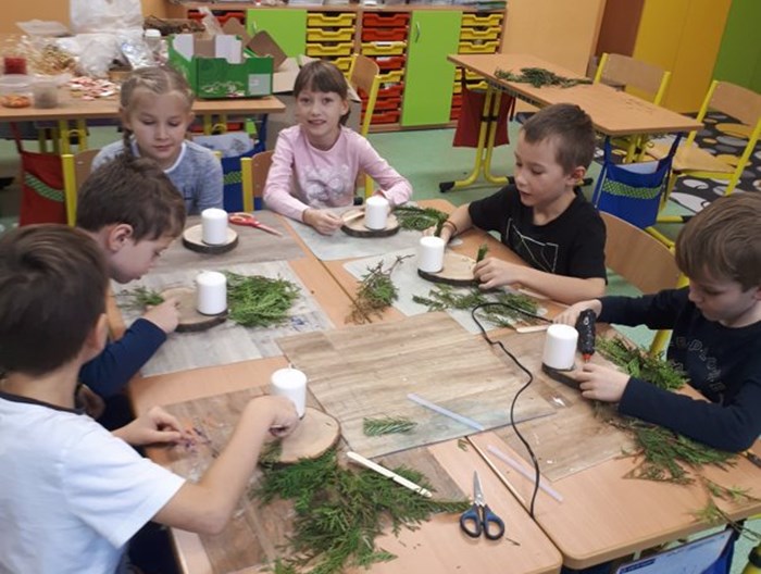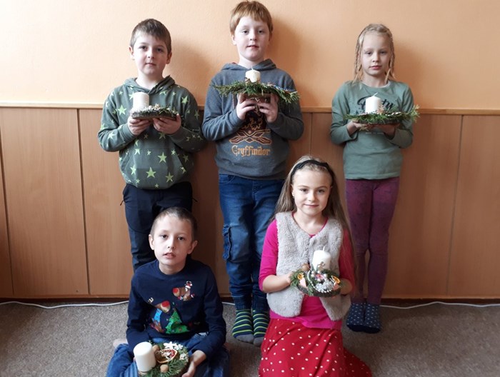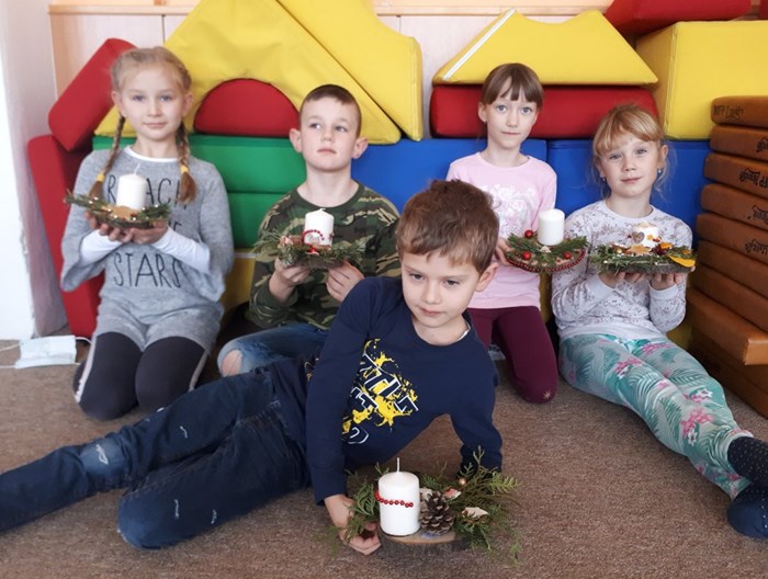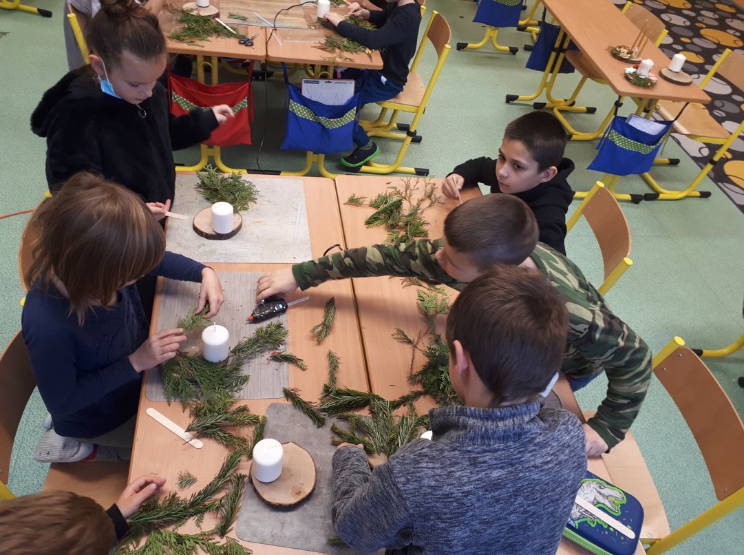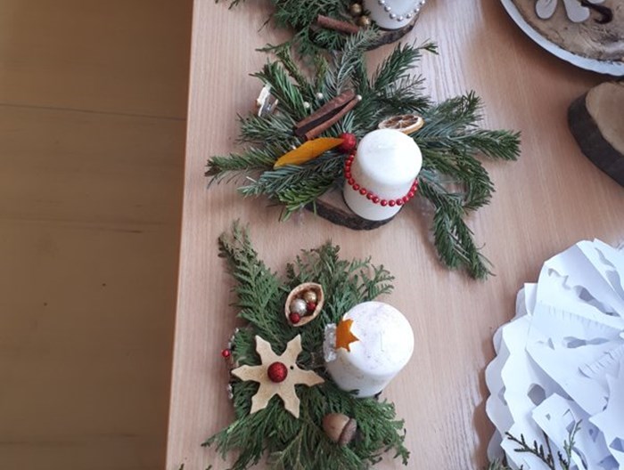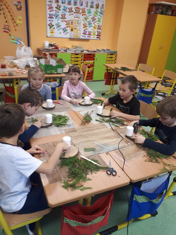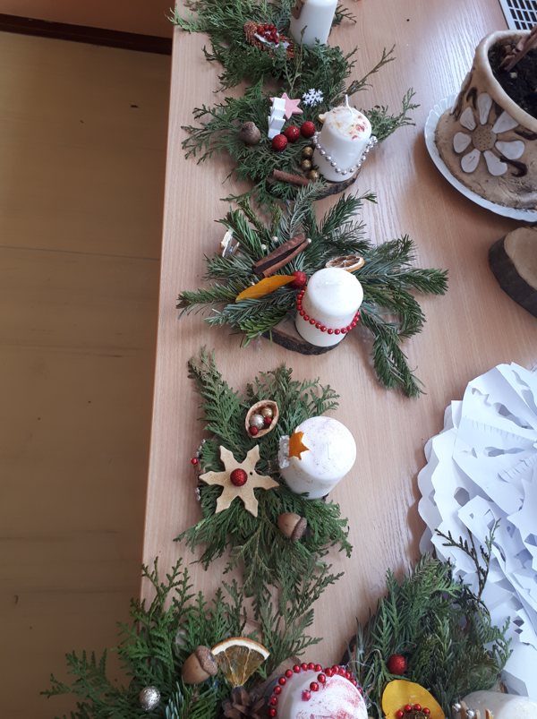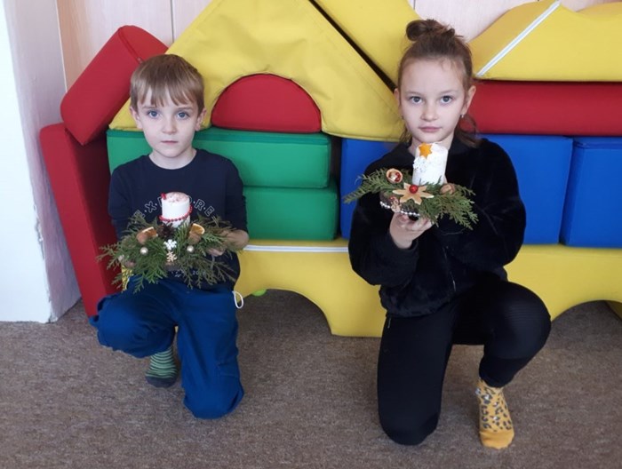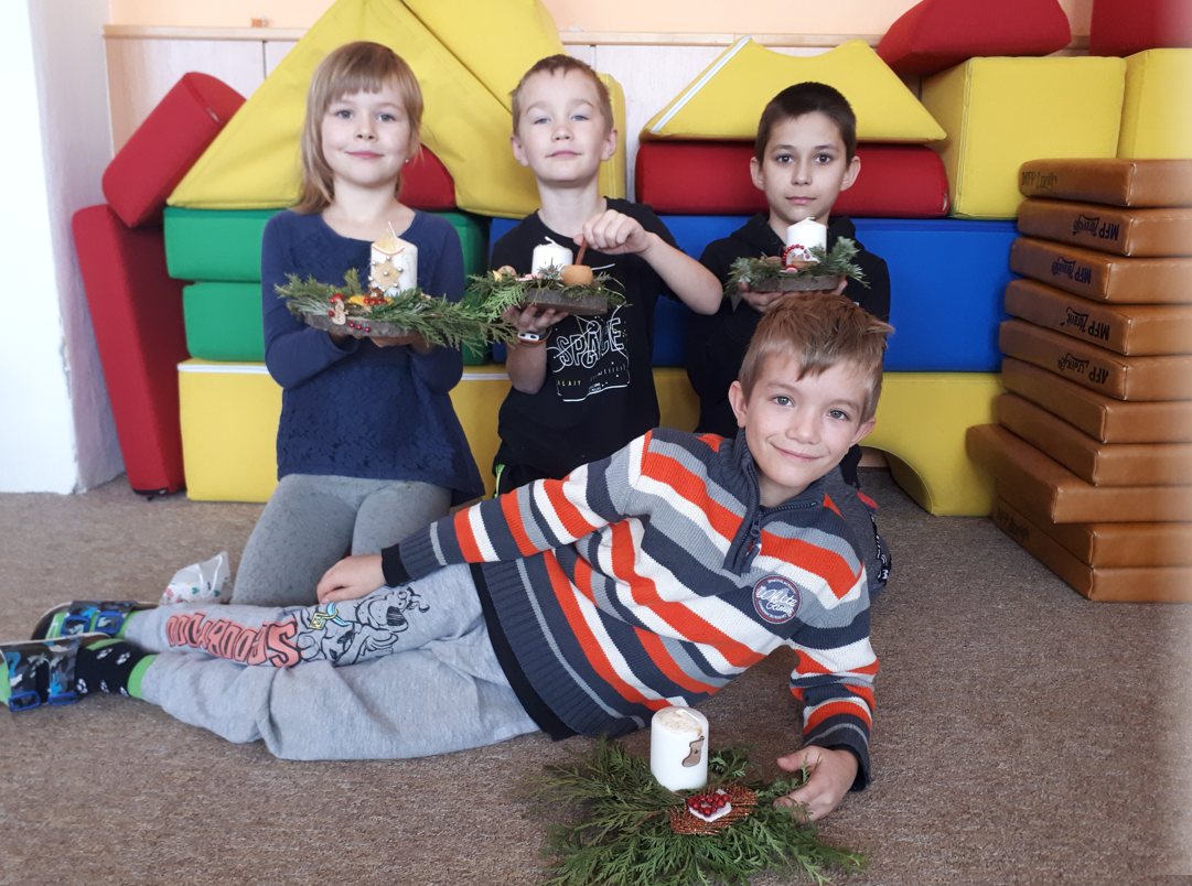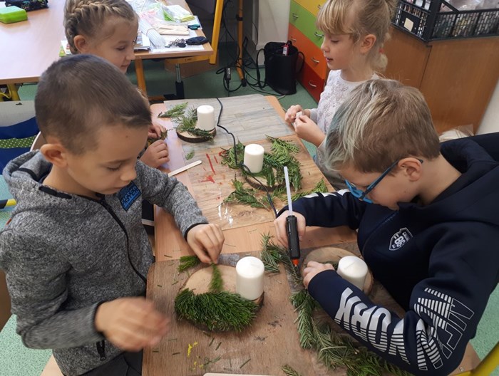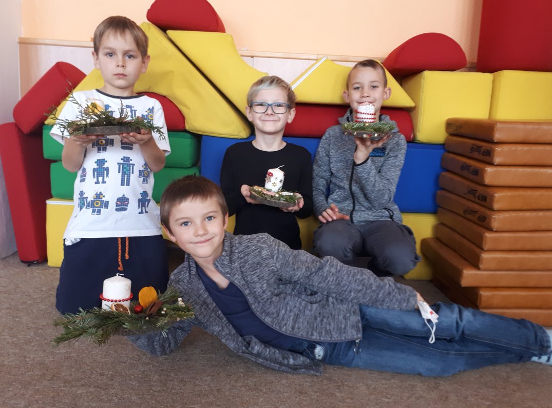 Bohužel nám epidemiologická situace nedovolila předvánoční setkání rodičů s dětmi a společné tvoření. Děti si musely poradit samy. Matějův tatínek nám nařezal kulatiny, manžel od paní asistentky vymyslel držák na svíčku a na dětech bylo zdobení. Ozdůbek bylo dosti a tavicí pistole jela jak drak. Myslíme se, že i bez rodičů to všichni zvládli. Rodičům děkujeme za spolupráci.