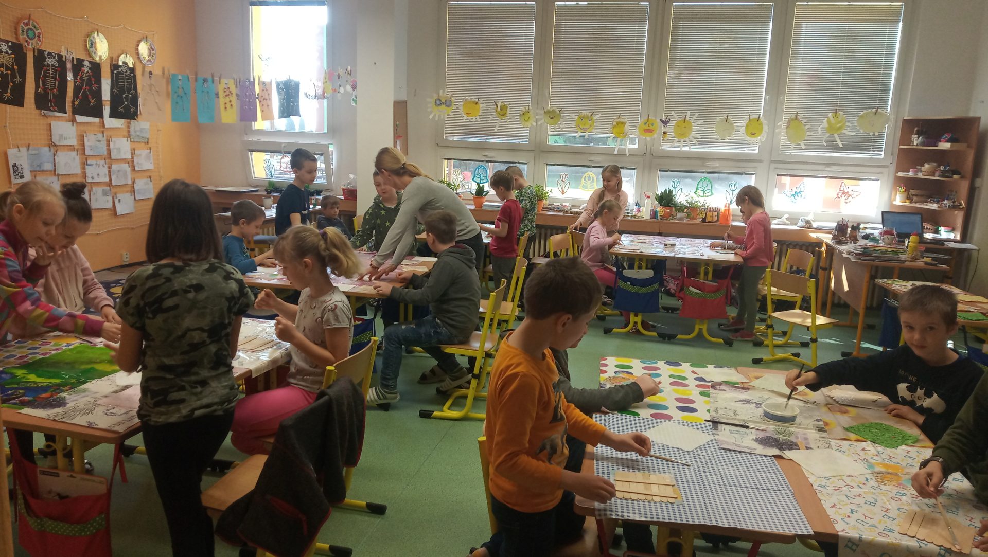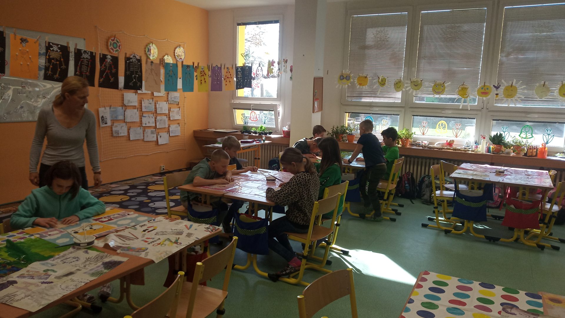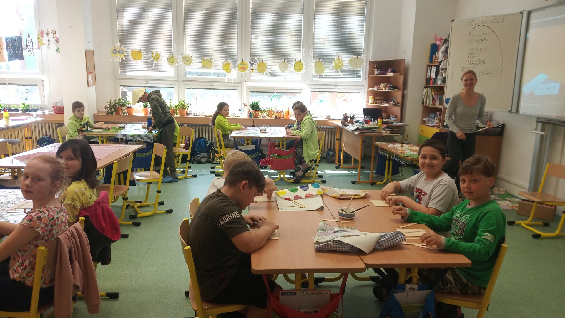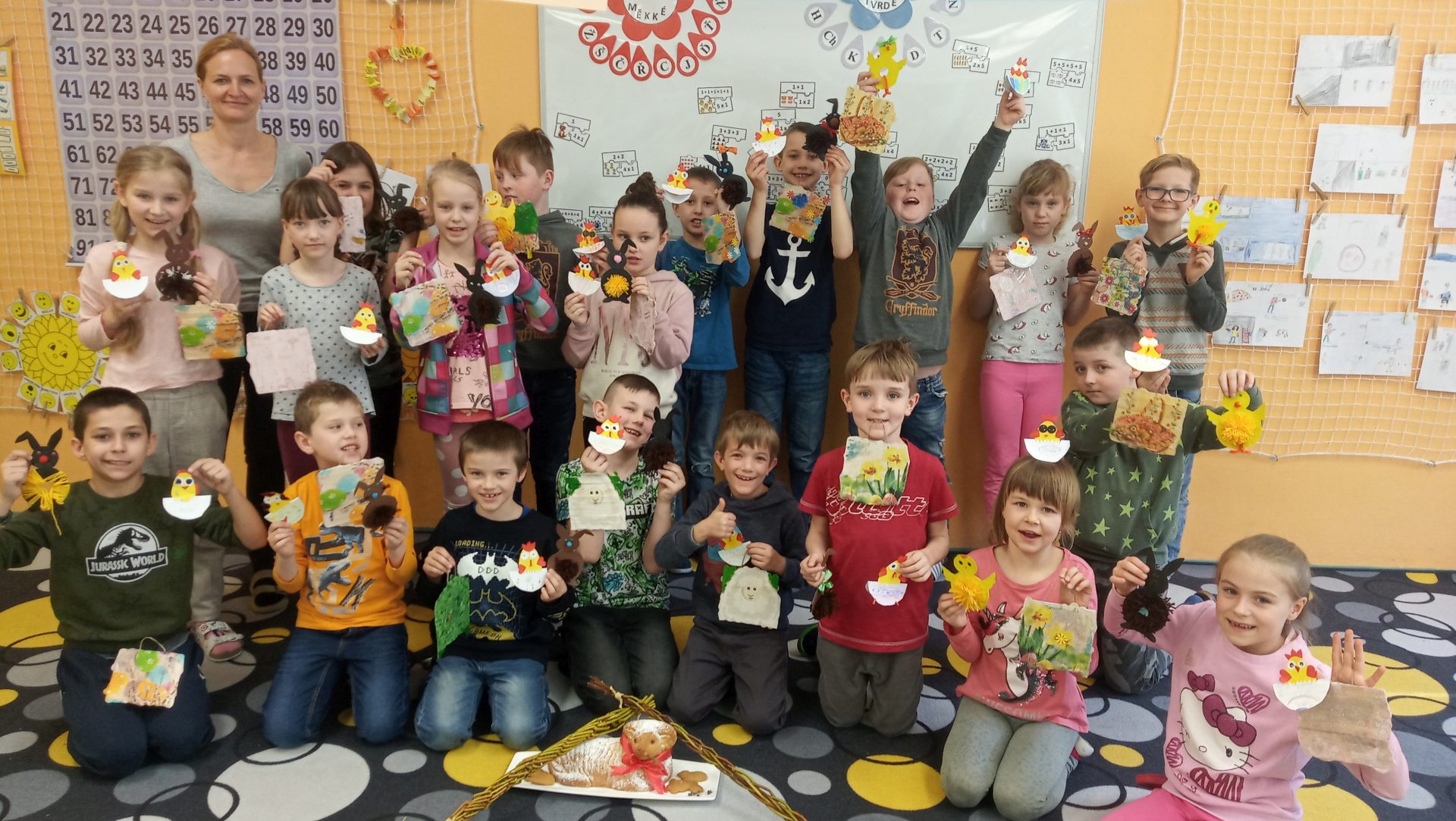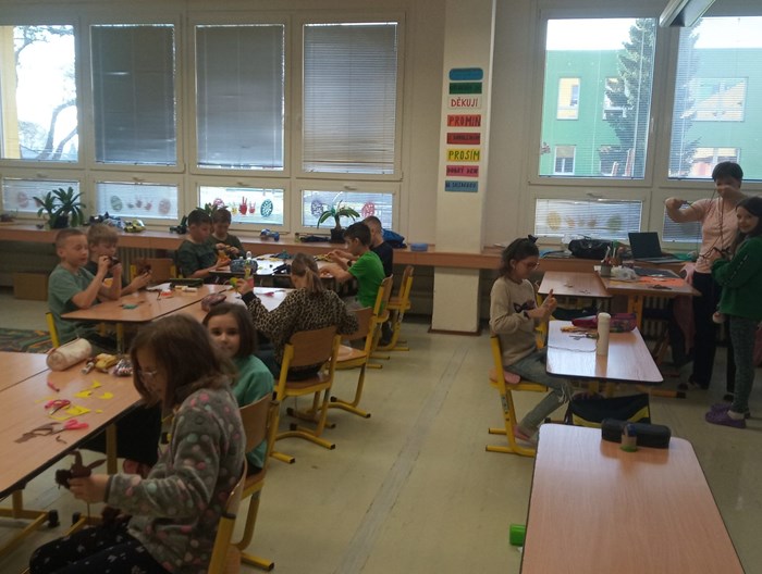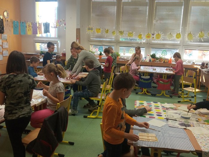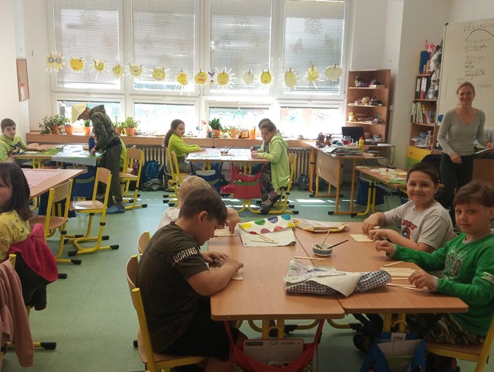 Poslední školní den před velikonočními prázdninami si žáci z 2.B, 3.A a 3.B užili při projektovém dni. Paní učitelky pro ně nachystaly velikonoční tvoření a v průběhu tří hodin si vyrobili houpací kuřátko, zajíčka s vlněným bříškem a obrázek na zeď. Pak si všichni o tomto jarním svátku popovídali a celí upracovaní si odešli užít zaslouženého volna.