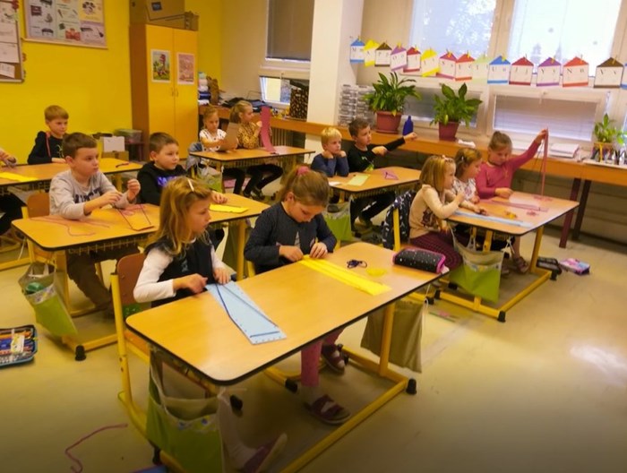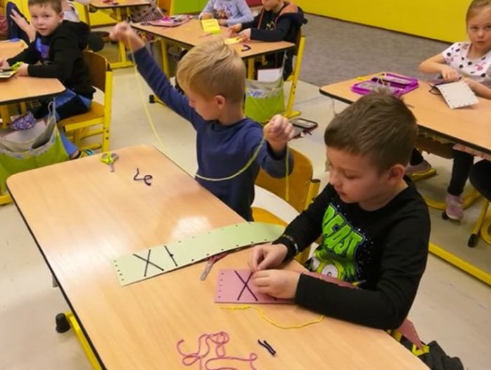Ve čtvrtek 20.1. žáci 1. A a 1. B prožili společně hodinu pracovních činností. V úvodu hodiny jsme si při doprovodu kytary zazpívali písničky - např. Vločka, Dva mrazíci, Bude zima. Za úkol měly děti vytvořit krásně barevnou papírovou šálu dekorovanou vlnou. Pro některé to nebyl vůbec snadný úkol: provléct vlnu, udělat uzlíky a řídit se pokyny učitelky, tak aby vznikl křížkový steh. Ale všichni to zvládli. A pro nás to byl bonus, když nám prvňáček řekl: „Dneska jsem si to užil. Chtěl bych mít ještě jednu hodinu!“