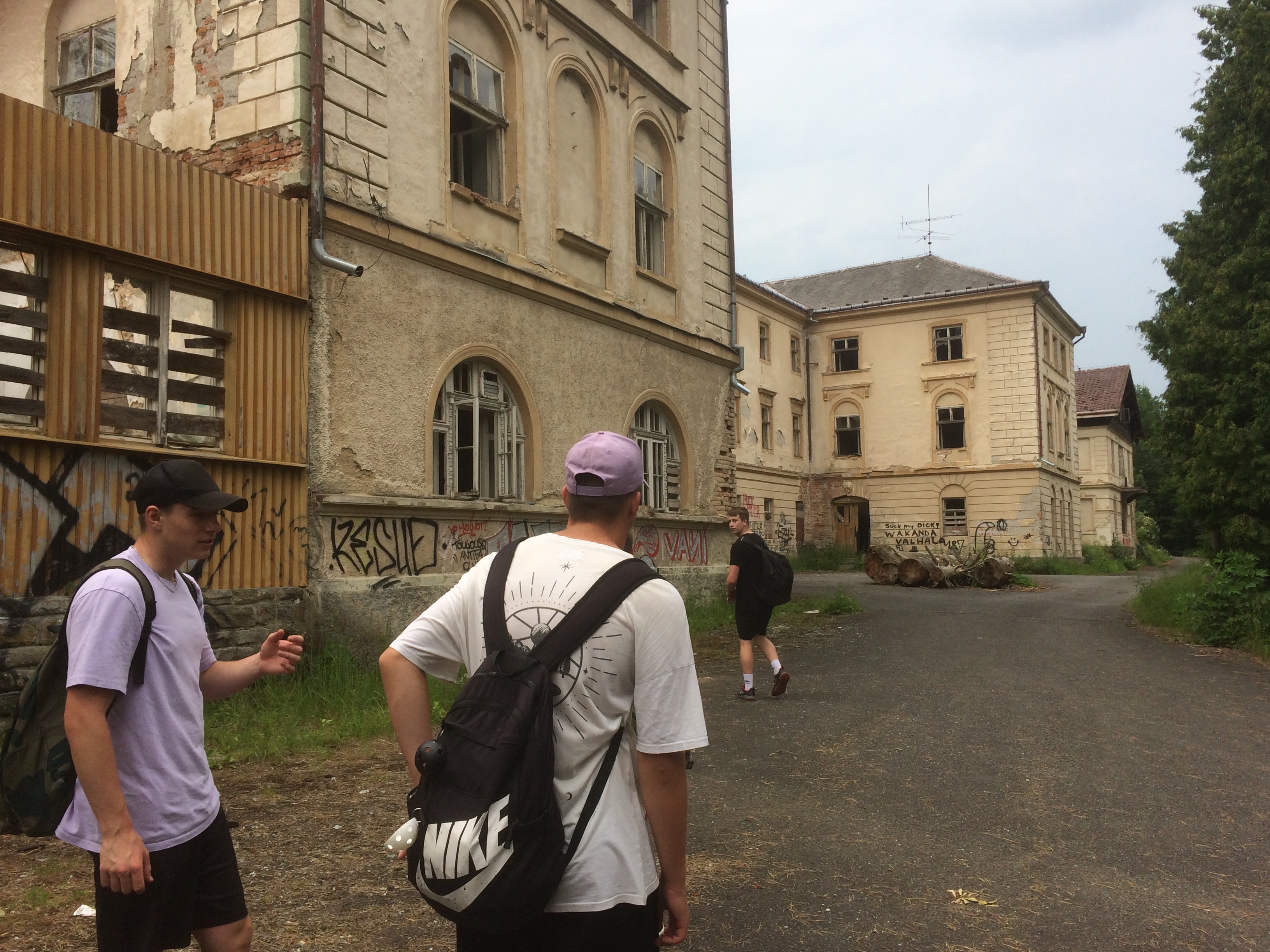 Prošli jsme se kousek k přehradě, omrkli malé horolezce, resp. spíš vyděšené viselce v moci nekompromisních instruktorů, a po asfaltce zamířili směrem do vsi Kružberk. Z ní jsme po červené pokračovali do Jánských Koupelí, města duchů, ve kterém si očividně vyřizují účty neonacisti a antifašisti, naštěstí jen písemně.