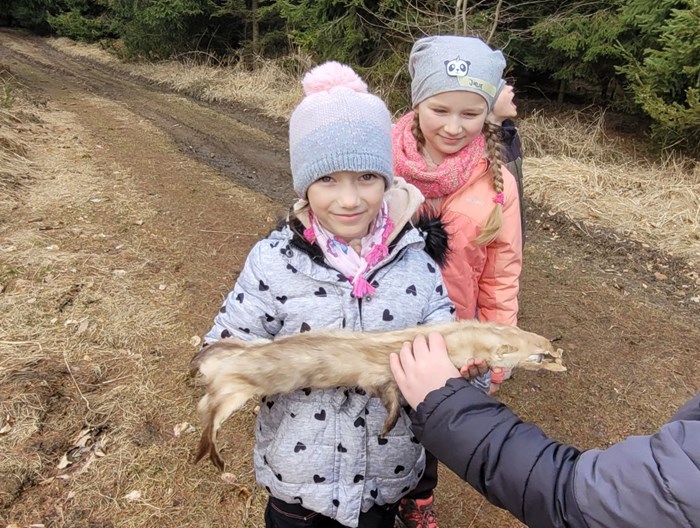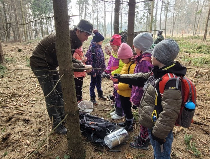Tento den však nebyl jen k dívání. Zcela prakticky si děti vyzkoušely, jaké je řezání dřeva, jak se měří stromy, nebo jak se tahají kmeny z lesa. Dokázaly po hmatu najít svůj strom, poznat stopy zvěře otištěné v blátě, rozpoznat dřeviny podle kůry a zahrály si spoustu her, které pro ně byly až doposud neznámé.