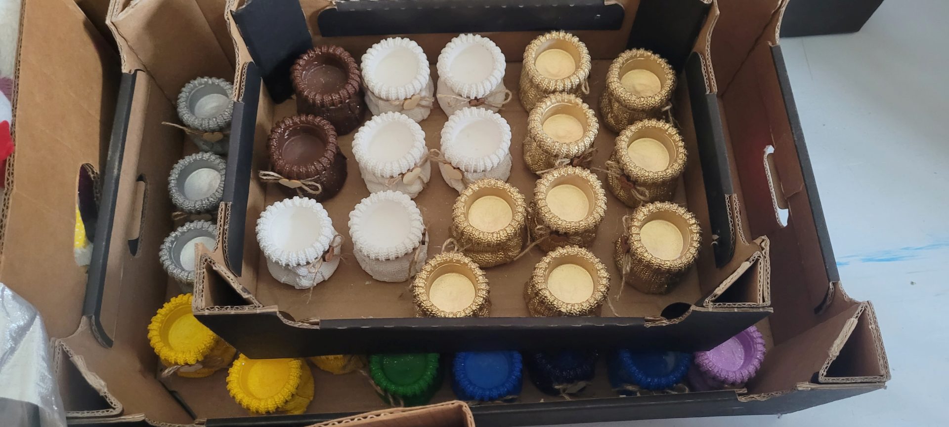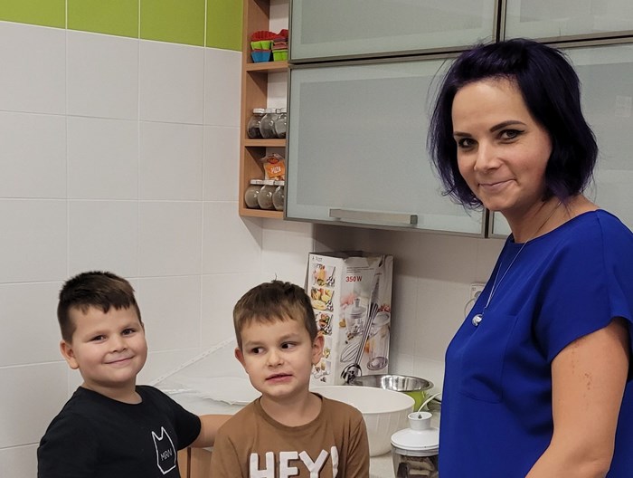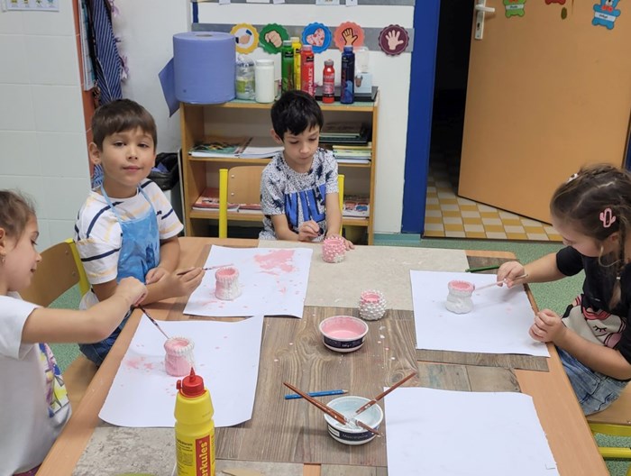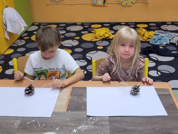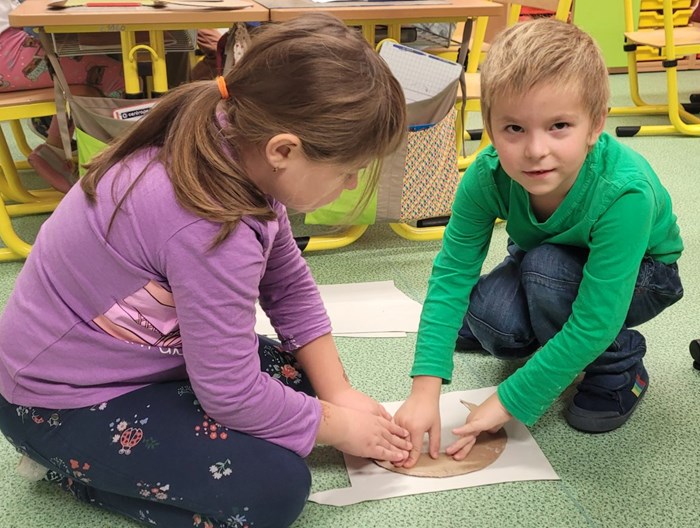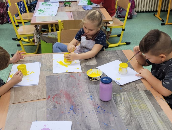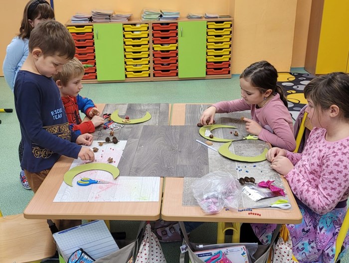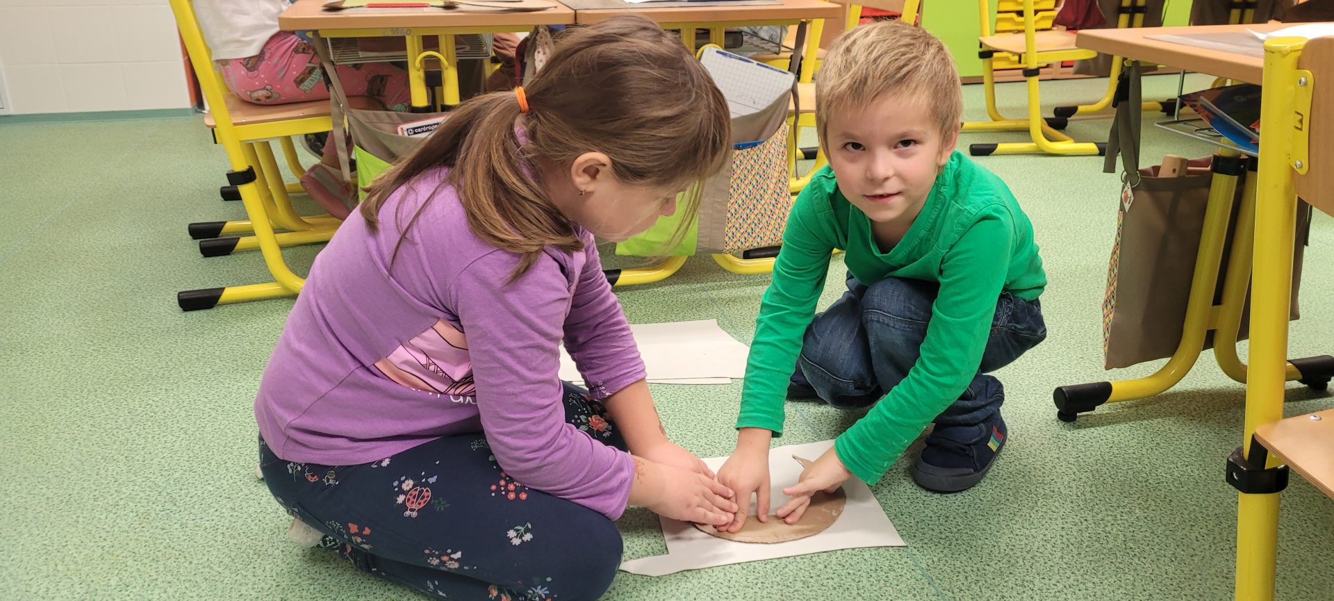 Děti z 1.B finišují s přípravou na jarmark. Stojánky na svíčky již mají nabarveny, hotov je i měsíčkový závěs na dveře, při kterém si někteří poprvé vyzkoušeli práci s tavnou pistolí. Skřítci mají na hlavách zimní čepice a i cukroví, při kterém pomáhaly maminky, je již upečeno. Je tedy vlastně hotovo. Tak se přijďte podívat.