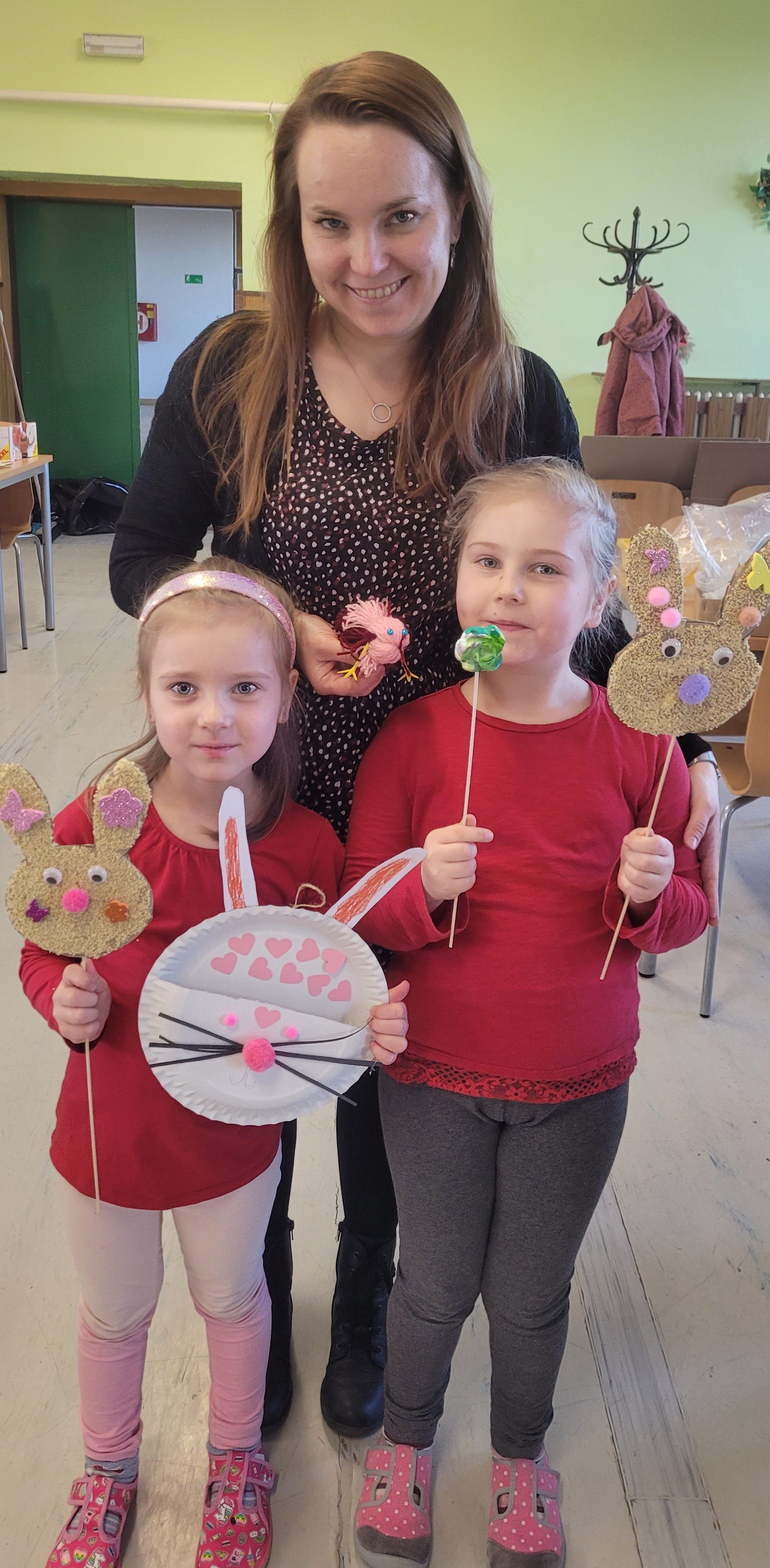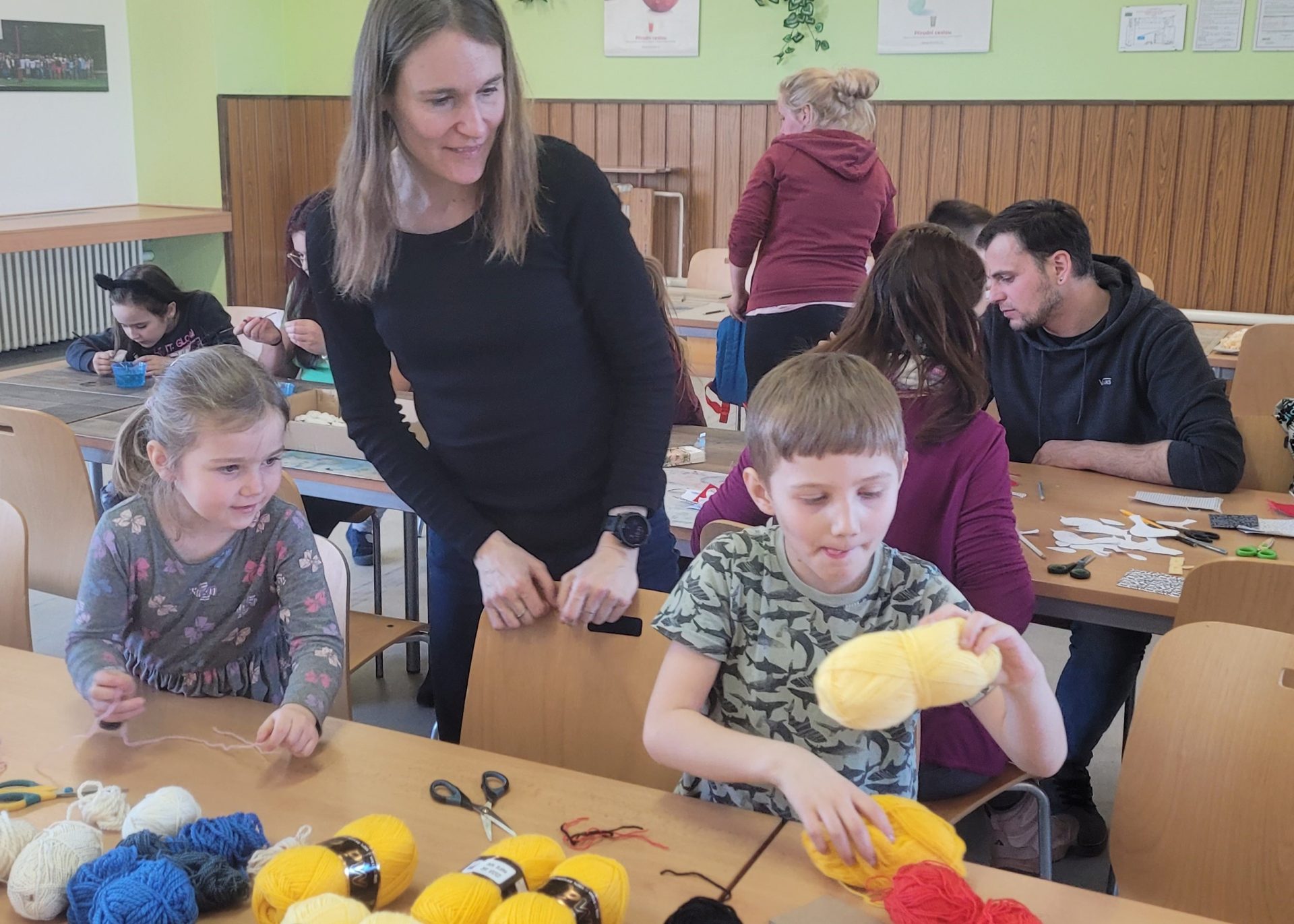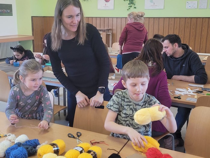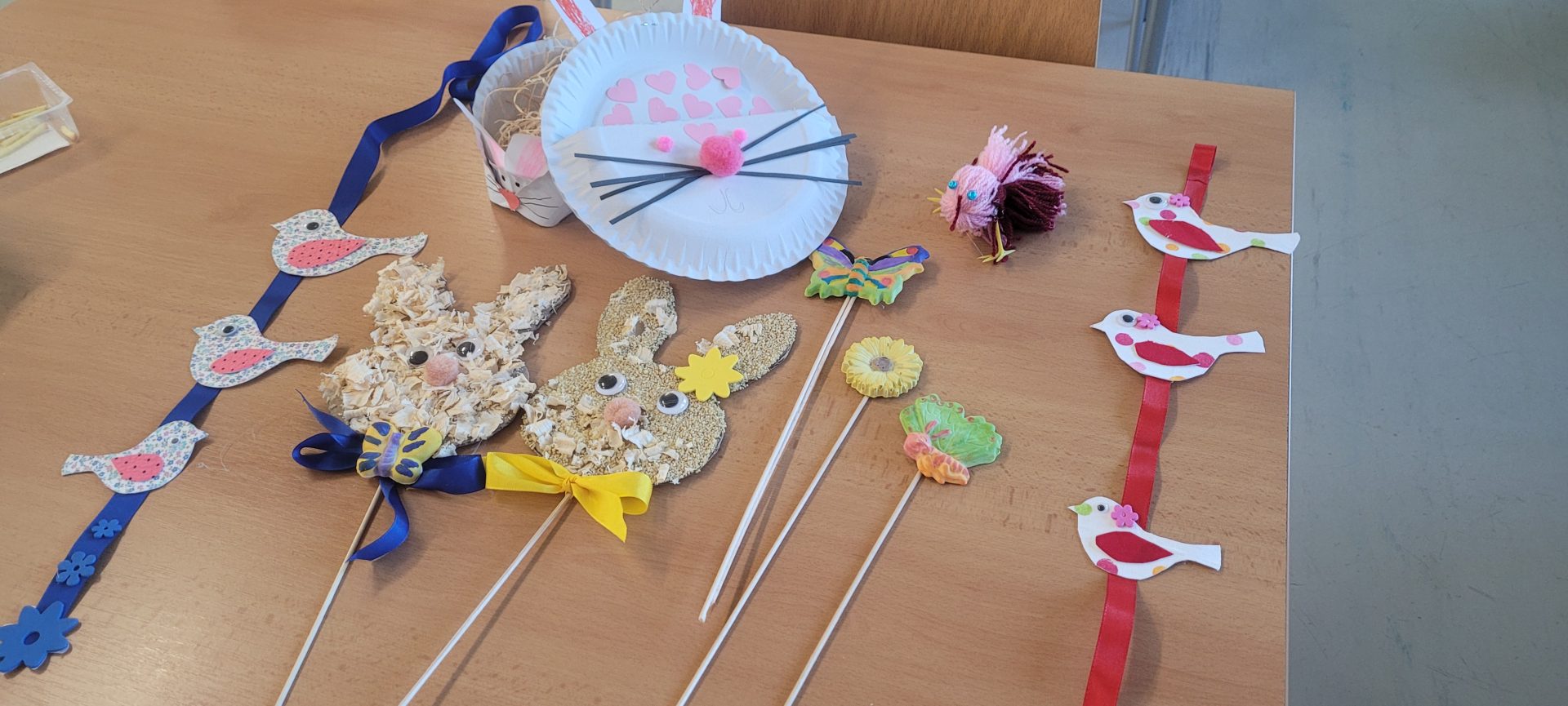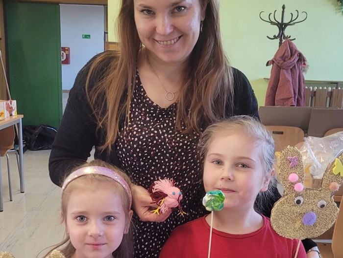 V předvelikonoční čas pozvali prvňáci své rodiče do školy na jarní dílnu. Chtěli si užít společného tvoření s dospěláky a nazdobit si své pokojíčky. V jídelně byla pro všechny nachystaná tvořící místa, kde si mohli podle vzoru zhotovit jarní dekorace nebo si vymyslet dekorace své. Malování vajíček voskem a zdobení sádrových odlitků šlo všem a i zajíčci z kuskusu či pilin se líbili.