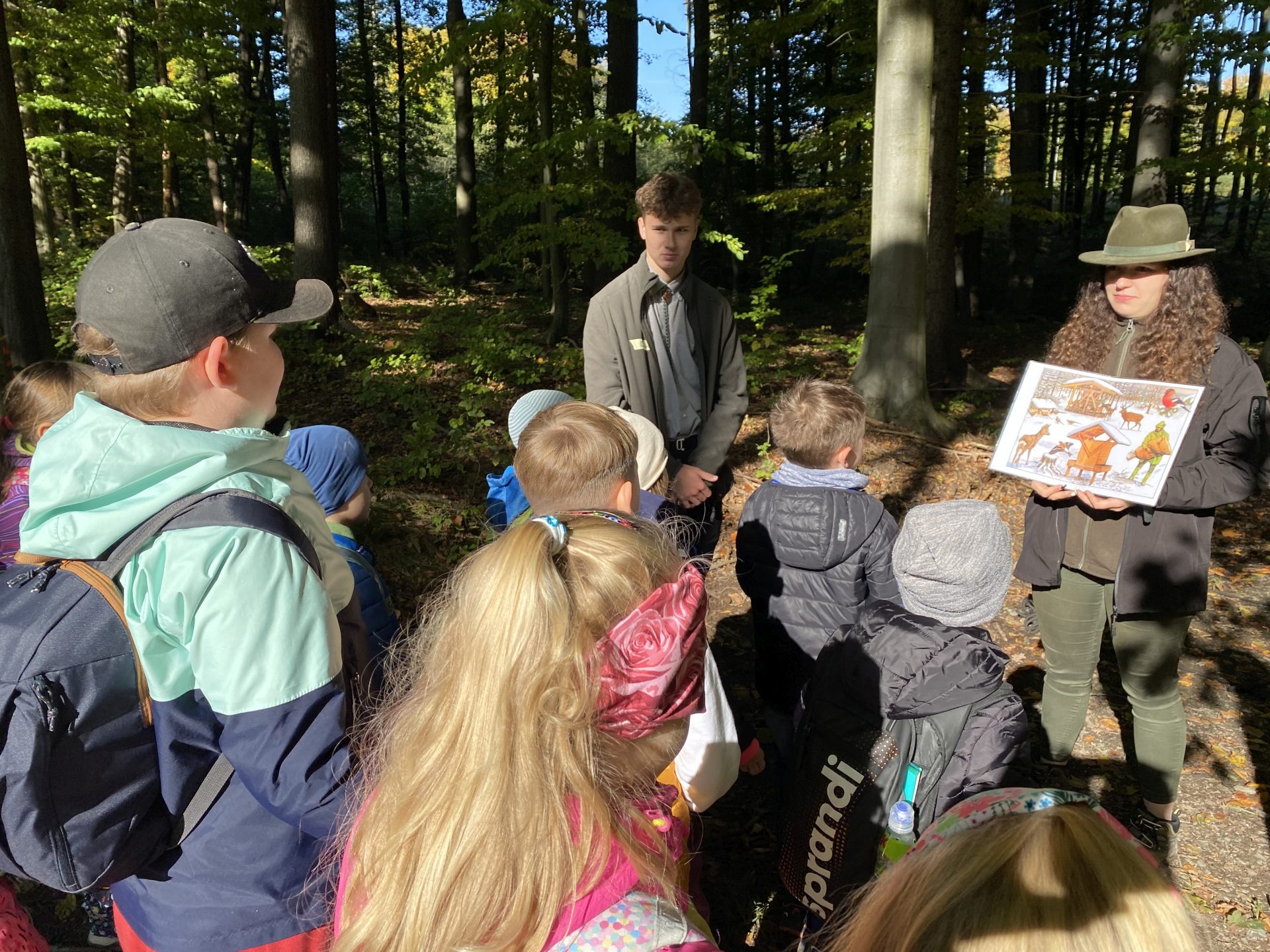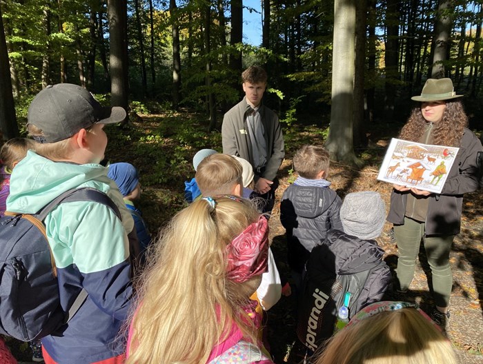 Ve čtvrtek 6. října 2022 nastoupili žáci 1. A, 2. A a 2. B do autobusu s přátelskou náladou a vydali se vstříc dobrodružství do Lesní školy ve Valšovicích. Děti přivítali usměvavý průvodci se zajímavými úkoly a slunečné počasí. Žáci hledali semena různých stromů a sázeli je, dalekohledem zkoumali divoká zvířata a studovali jejich stopy na vlhkých cestách, zkoumali život lesních zvířat a ptáků, měli v rukou malou ropušku nebo střevlíka. Posvačili na čerstvém vzduchu na lesních mýtinách. Z listí vytvořili kytice pro maminky nebo si přivezli vlastnoručně pilou uřezané kolečko z větve a hlavně zjistili, že v lese mohou zažít spoustu zážitků.