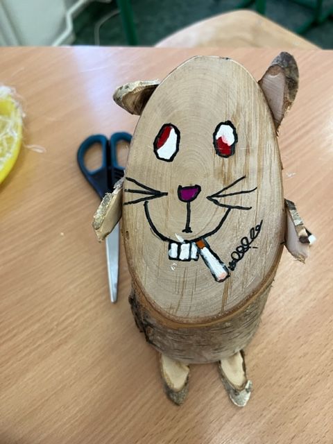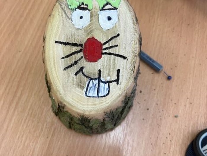 Dne 4. 4. 2023 jsme v hodině anglického jazyka vytvářeli velikonoční dekoraci ze dřeva.