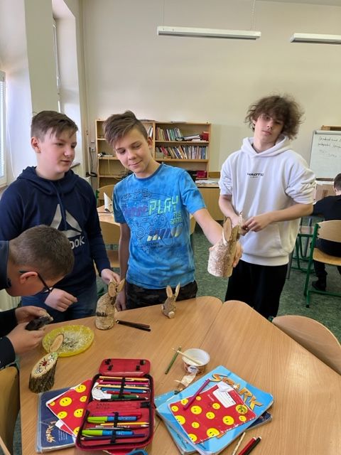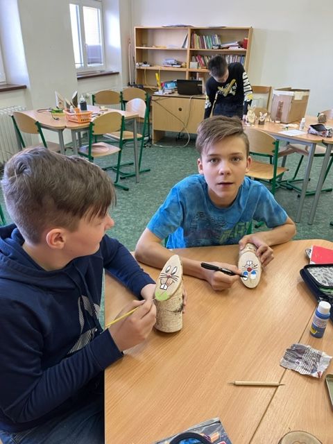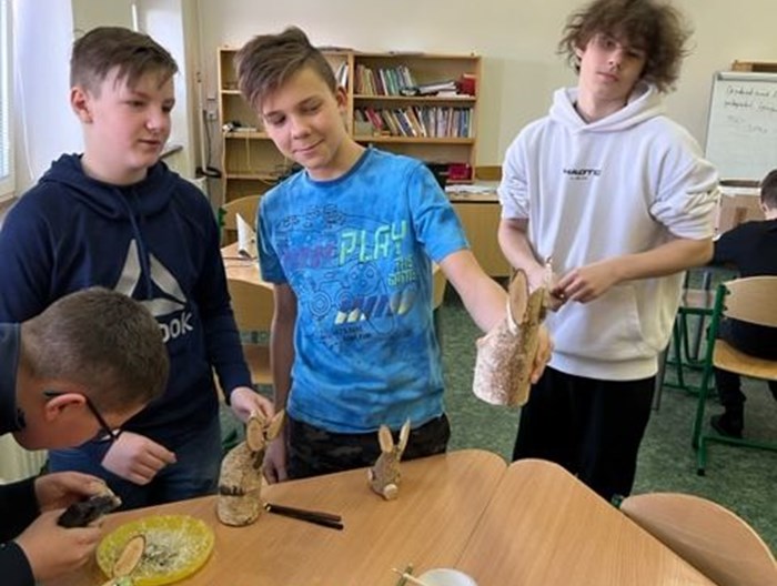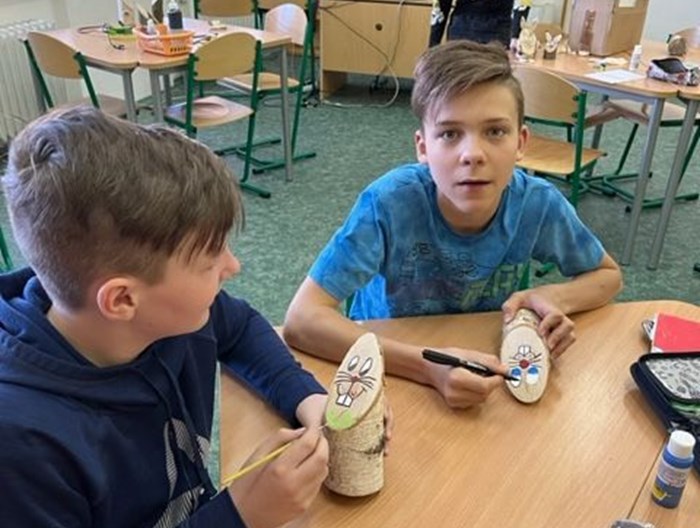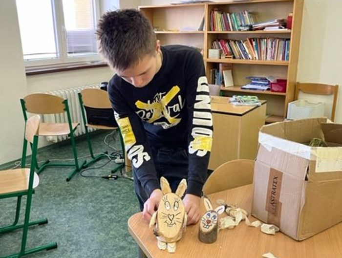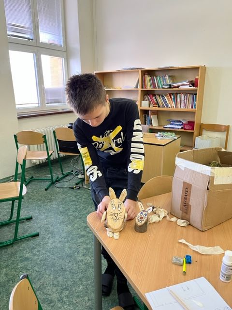 Dne 4. 4. 2023 jsme v hodině anglického jazyka vytvářeli velikonoční dekoraci ze dřeva. Zadání bylo jednoduché: Vytvoř a svým výtvorem obdaruj některého ze svých vyučujících. Jediná podmínka, kterou jsem jako vyučující měla, byla, že žáci mohou komunikovat pouze anglicky.