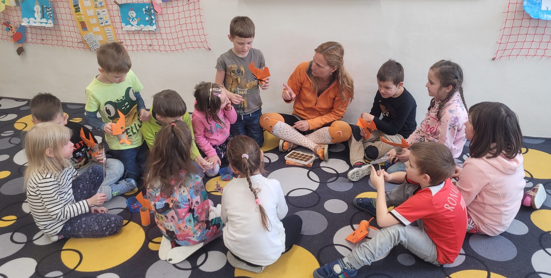 Celý měsíc se děti z 1.B bavily pohádkami. Četly je, přednášely, poslouchaly, hádaly názvy a postavy. Proto závěr pohádkové kapitoly patřil po celý den té naší nejznámější. Pohádku O Budulínkovi netřeba představovat. Výrobu lišky a loutky, stavbu doupěte, sestavení pohádkové osnovy, doplnění chybějících slov do textu, luštění křížovky a mnoho dalšího naši prvňáci zvládli s přehledem. Za každý splněný úkol jeden hrášek do mističky. A kdo vyhrál? Ten, kdo s kamarádem spolupracoval, plnil úkoly a bavil se.