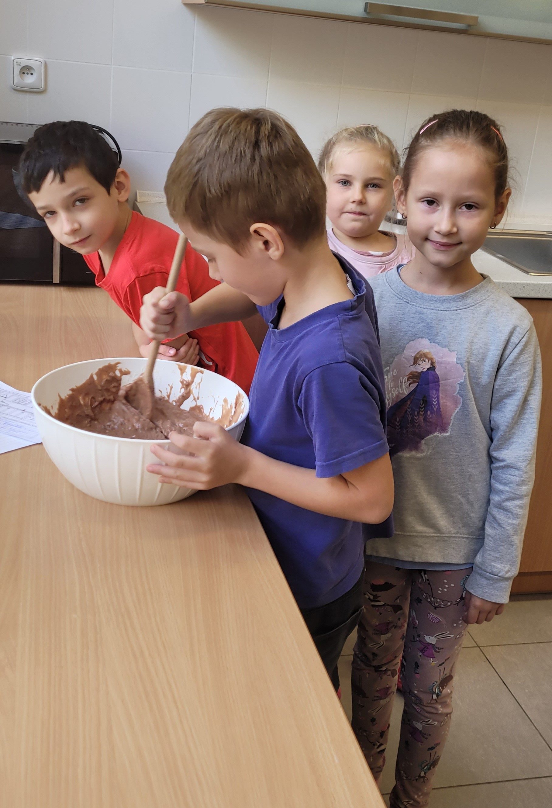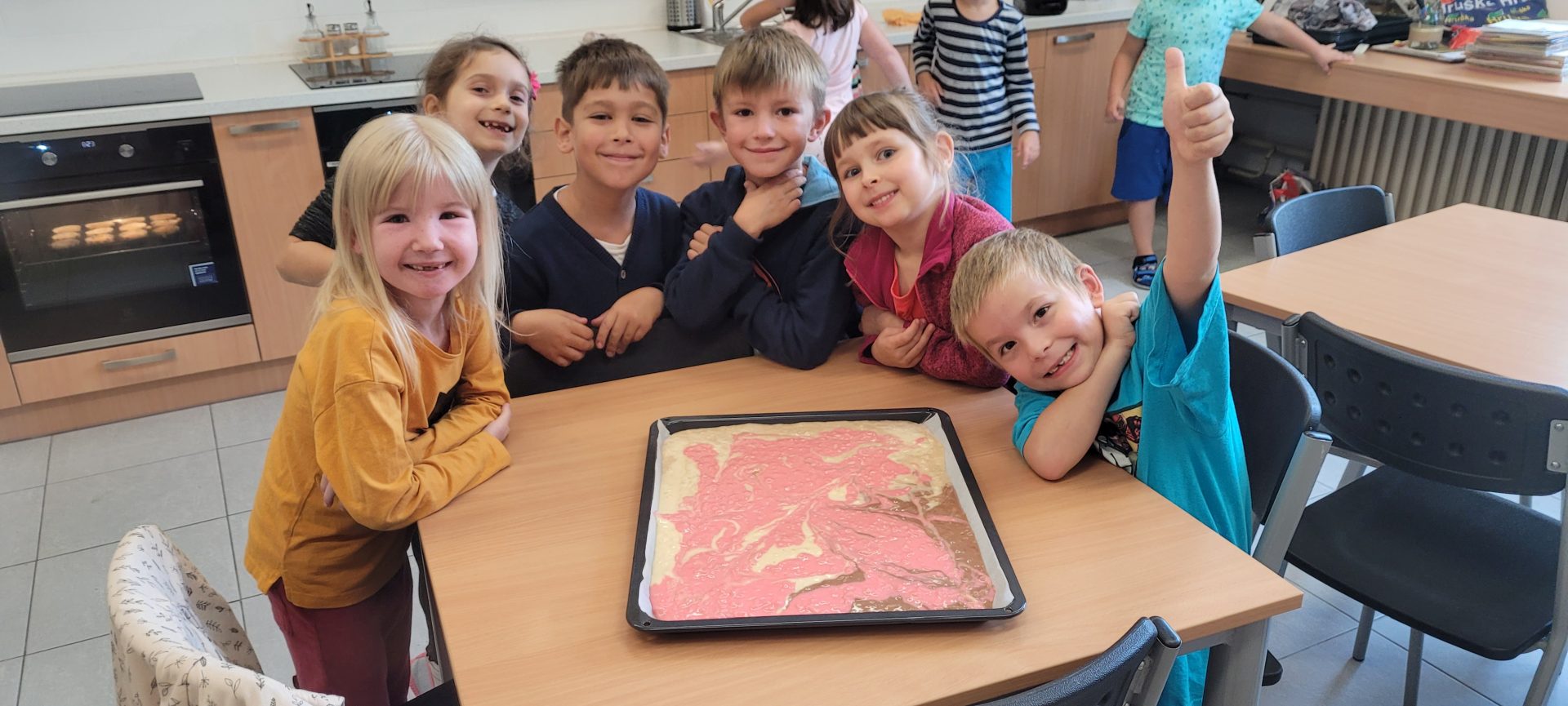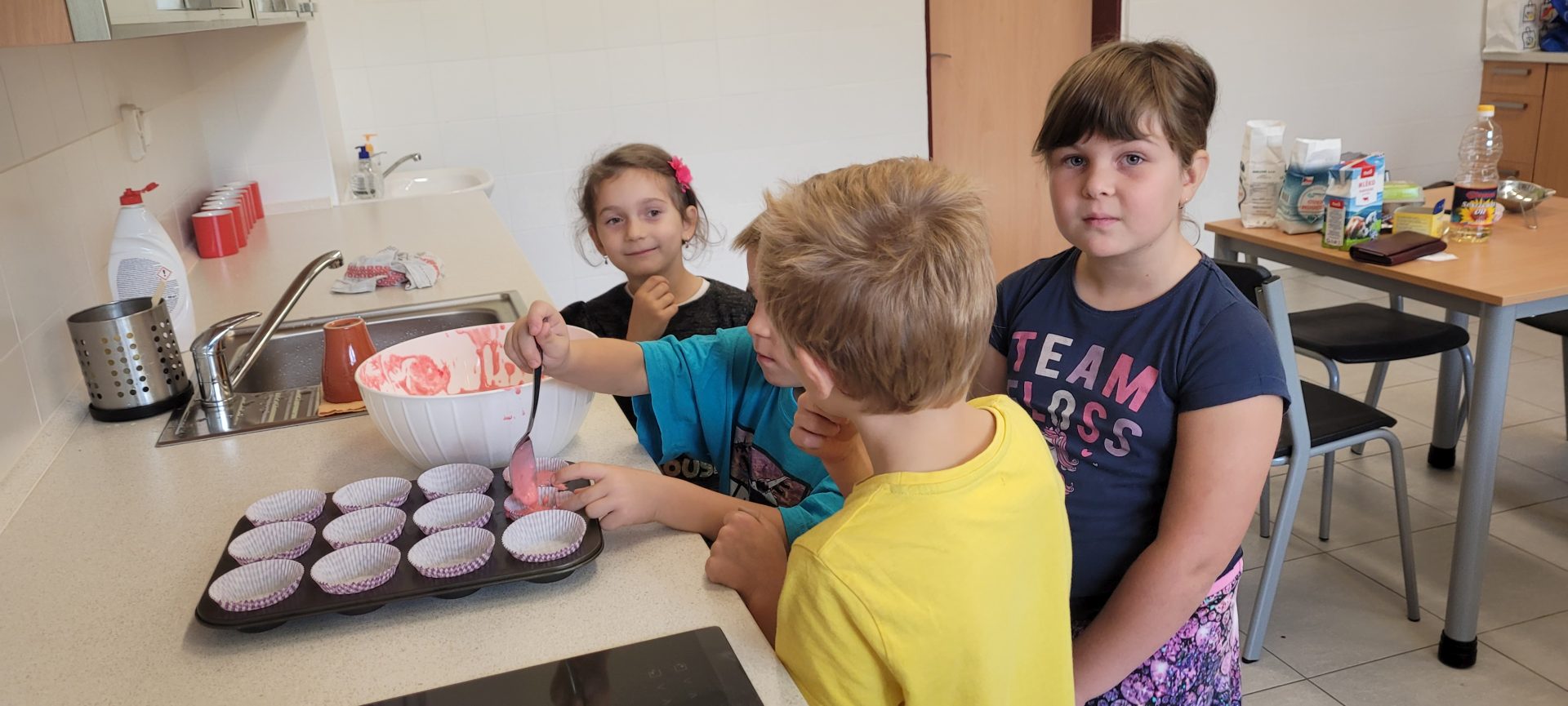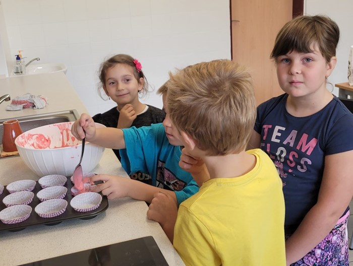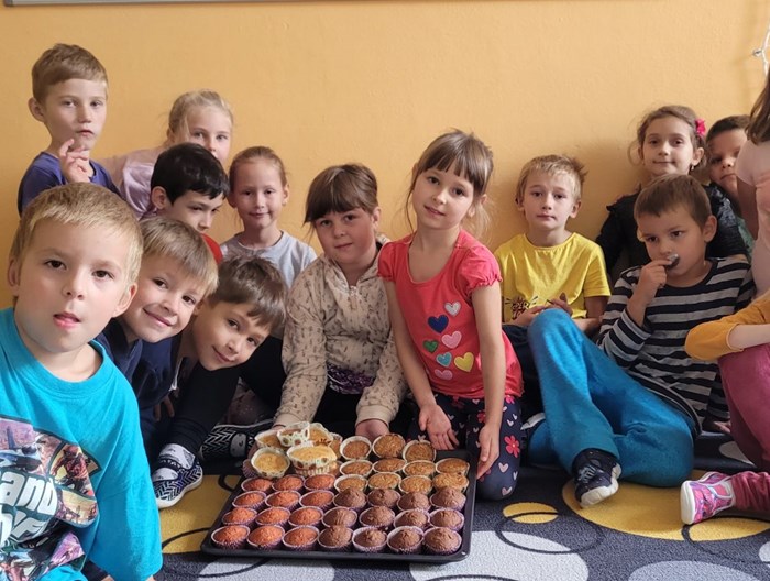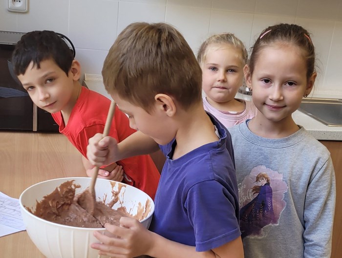 První měsíc v 1. B je za námi. A protože nebyl úplně jednoduchý, bylo potřeba ho zakončit něčím příjemným. Přivítala nás školní kuchyňka a šikovné ruce našich nejmladších školáků upekly jablkové muffinky. Prstíky přežily a pusinky jen mlaskaly. A chutnalo i dospělákům.