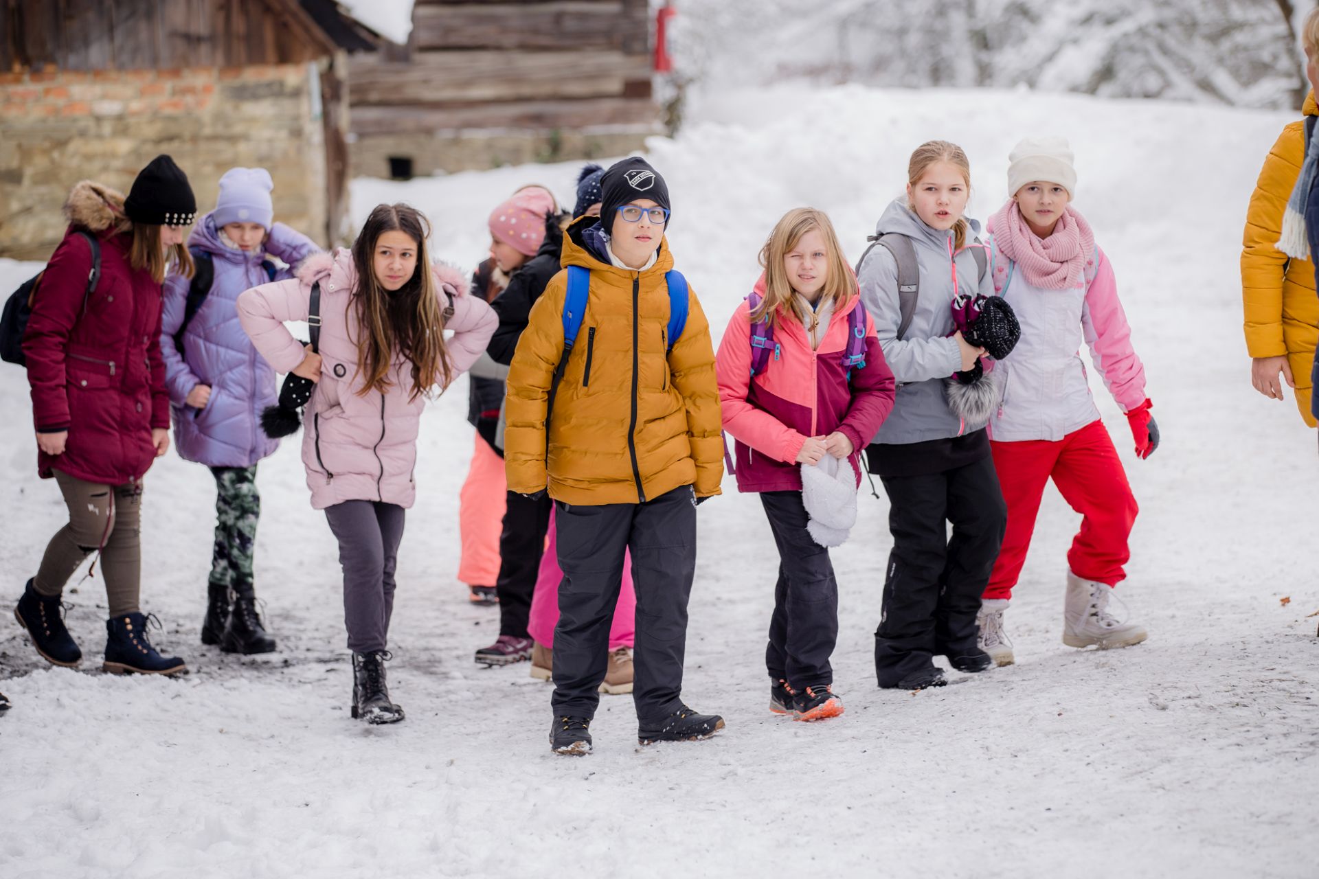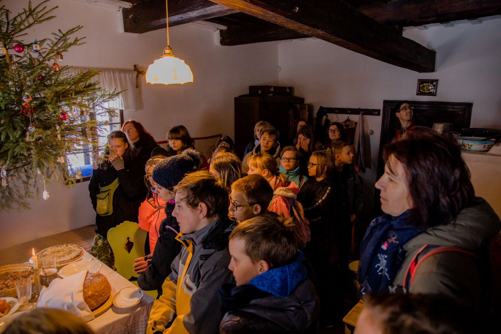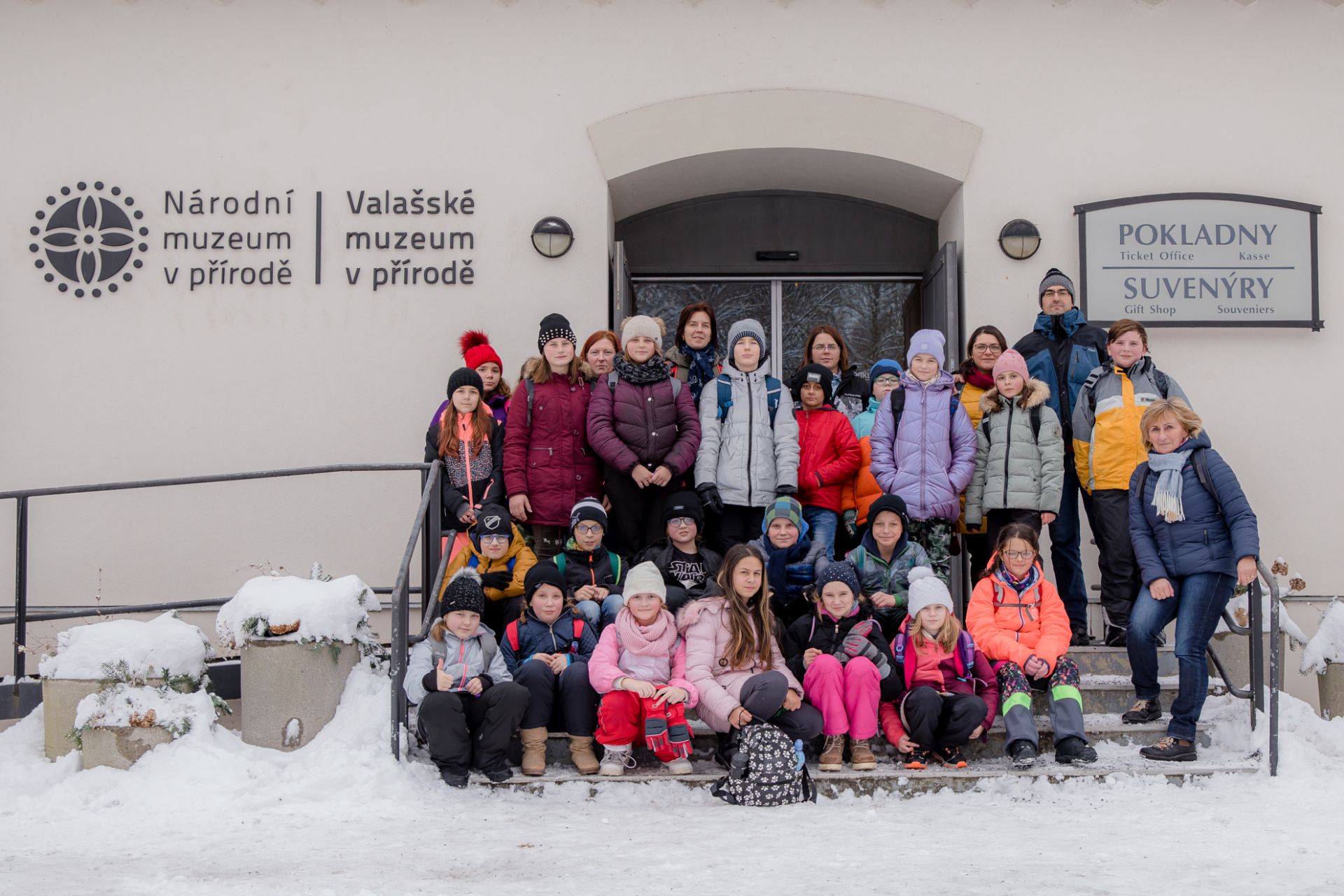 Ve čtvrtek 15. 12. se páťáci vydali do Rožnova pod Radhoštěm. Edukační program Vánoce na dědině nás naladil na dobu přicházejících Vánoc a zavedl nás do adventního času v dobách minulých. Při návštěvě jednotlivých stavení jsme se seznámili s prací přadlen, pekařek, řezbářů, kováře, viděli jsme odlévání olova i pečení vánočních oplatek. Ve staré škole jsme se potkali s panem řídícím a pod jeho vedením za doprovodu housliček jsme si zazpívali koledu. Při procházce zasněženou Valašskou dědinou nechybělo setkání s Mikulášem, čertem i Luckou. Na konci vánočního putování vesnicí nás čekalo kouzelné posezení při svíčkách u čerstvě upečeného perníku a čaje z devatero bylin.