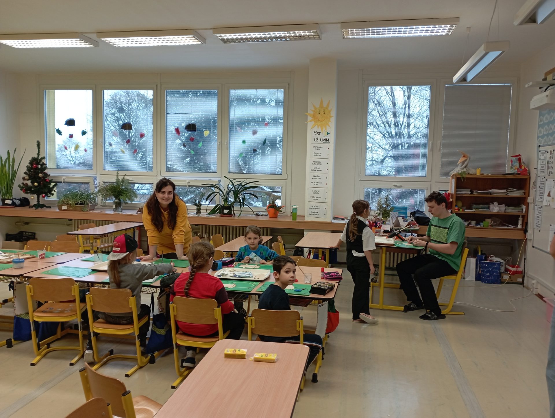 Čekání na Ježíška si děti z 1. stupně zpříjemnily vánočním tvořením. Byly pro ně nachystány vánoční dílny, ve kterých si během dopoledního vyučování zhotovily zimní dekorace, které jistě dozdobily jejich sváteční domovy.