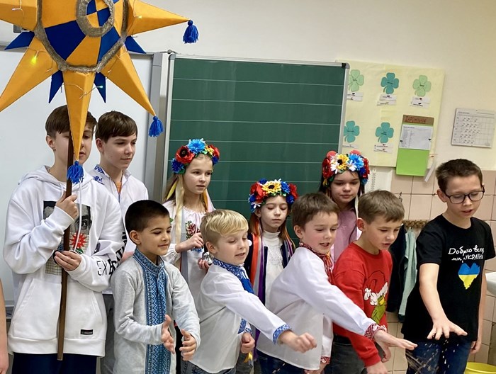 Žáci z Ukrajiny ve čtvrtek 19. ledna navštívili žáky prvního stupně, aby jim blahopřáli k Vánocům a novému roku. Seznámili děti s národními tradicemi, zazpívali koledy, zaseli obilí, aby všichni byli v novém roce šťastní, zdraví a bohatí.