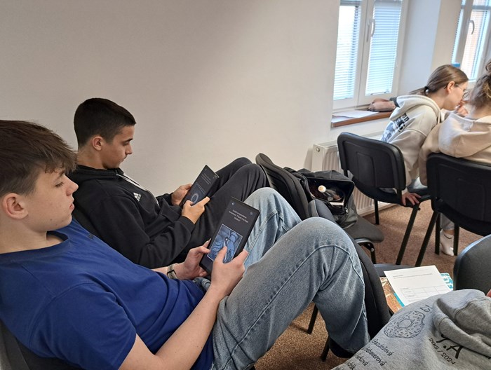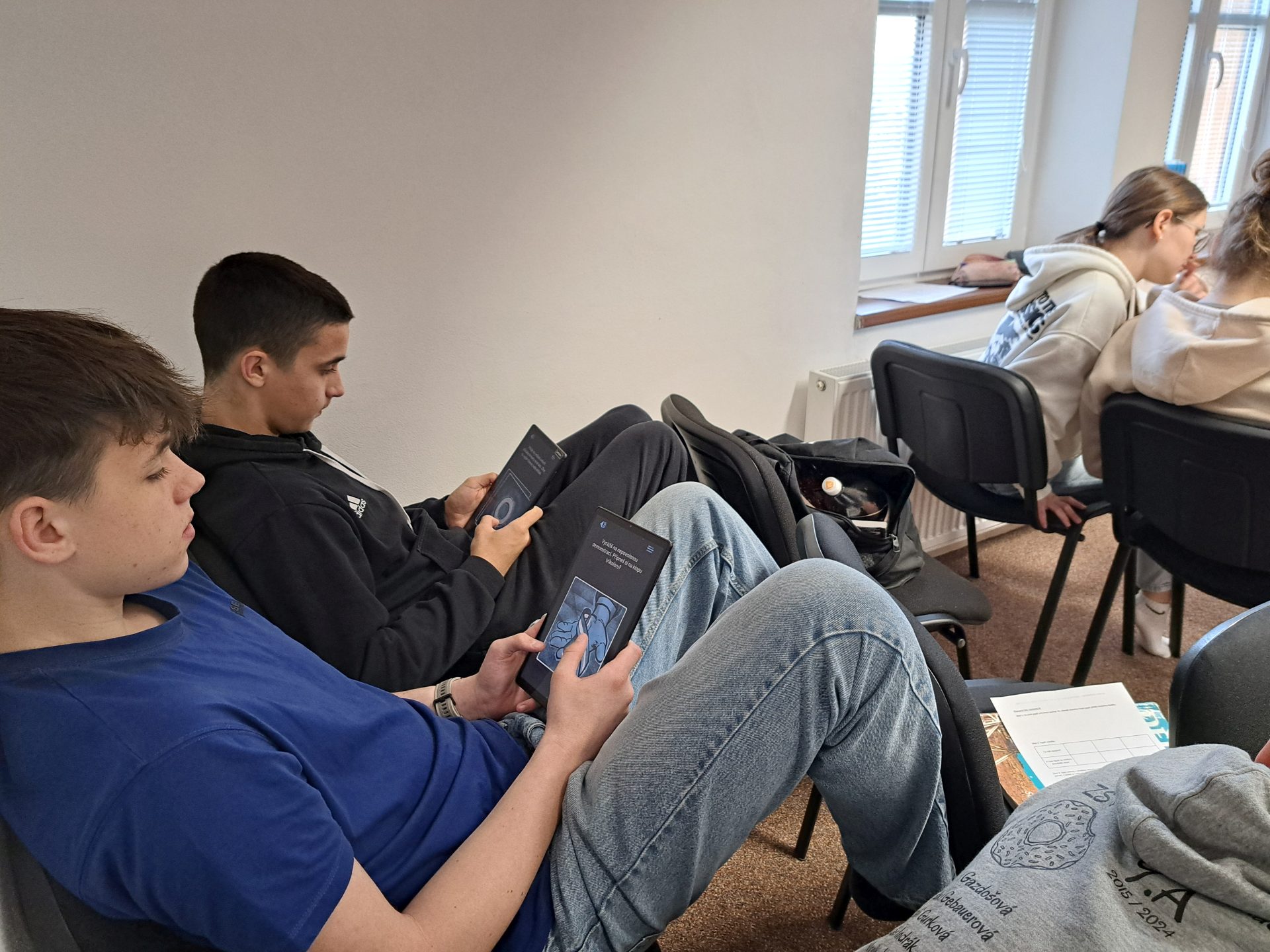 V páteční výuce dějepisu jsme na tabletech a vlastních mobilech hráli historickou hru Train to Sachsenhausen. Sledujete v ní osudy studenta medicíny během demonstrace proti nacistickému režimu, pohřbu Jana Opletala, zatýkání na vysokoškolských kolejích, internaci v Ruzyni a transportu do koncentračního tábora Sachsenhausen. Součástí je i virtuální muzeum připravené profesionálními historiky, které obsahuje vzpomínky skutečných pamětníků a dobové dokumenty a fotografie. Na hru pak navazuje pracovní list, ve kterém jsme se zamýšleli nad svým postupem ve hře i nad událostmi, které se v ní odehrávaly. Je fajn, že jsme mohli prostřednictvím interaktivních technologií lépe porozumět tématu a vnést do učení více zábavy.
