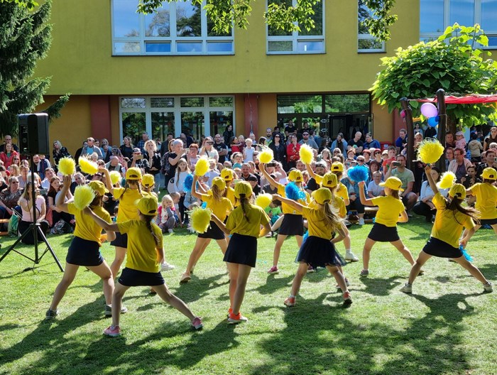 V atriu zazněly nejen tóny z kytar, ale rozdrnčely se i okenní tabule pod vlivem bicích. Na pódium nám rovněž vtančily i kroužky základní školy, ale také i sestavy nadšených žáků. Mimo to program osvěžila vtipná a gymnastická vystoupení.