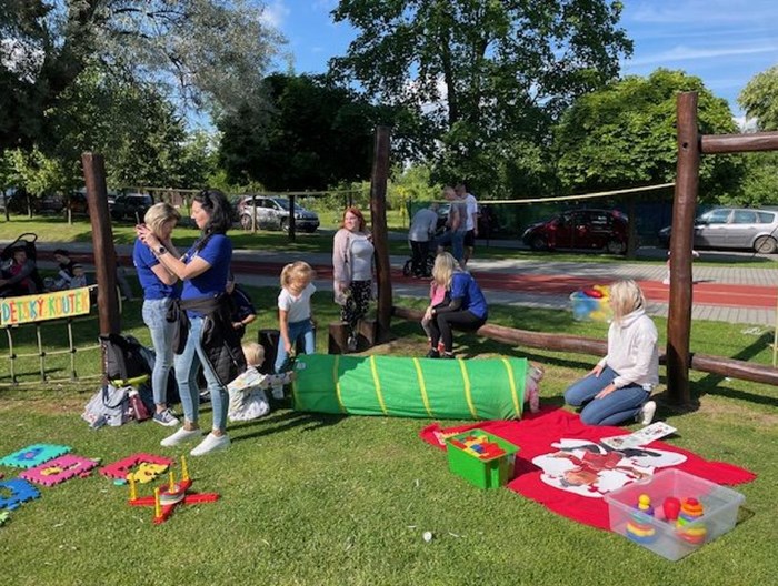 Pokud jsme si náhodou potřebovali protáhnout nohy, tak k vidění byly práce žáků 2. stupně, kteří vystavovali svá výtvarná díla v rámci výstavy „O čem sním, když zrovna spím“. Práce byly plné děsu, ale rovněž i důkazem, že po noci vždy přichází ráno. Mohli jsme si přečíst i partyzánské básně, které se objevily na místech, které bychom opravdu nečekali. Nebo jsme se sami mohli stát součástí toho všeho, vykreslit si panáčka a vytvořit tak jedno velké společné dílo.
