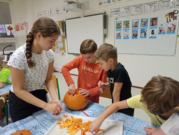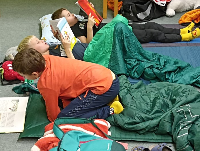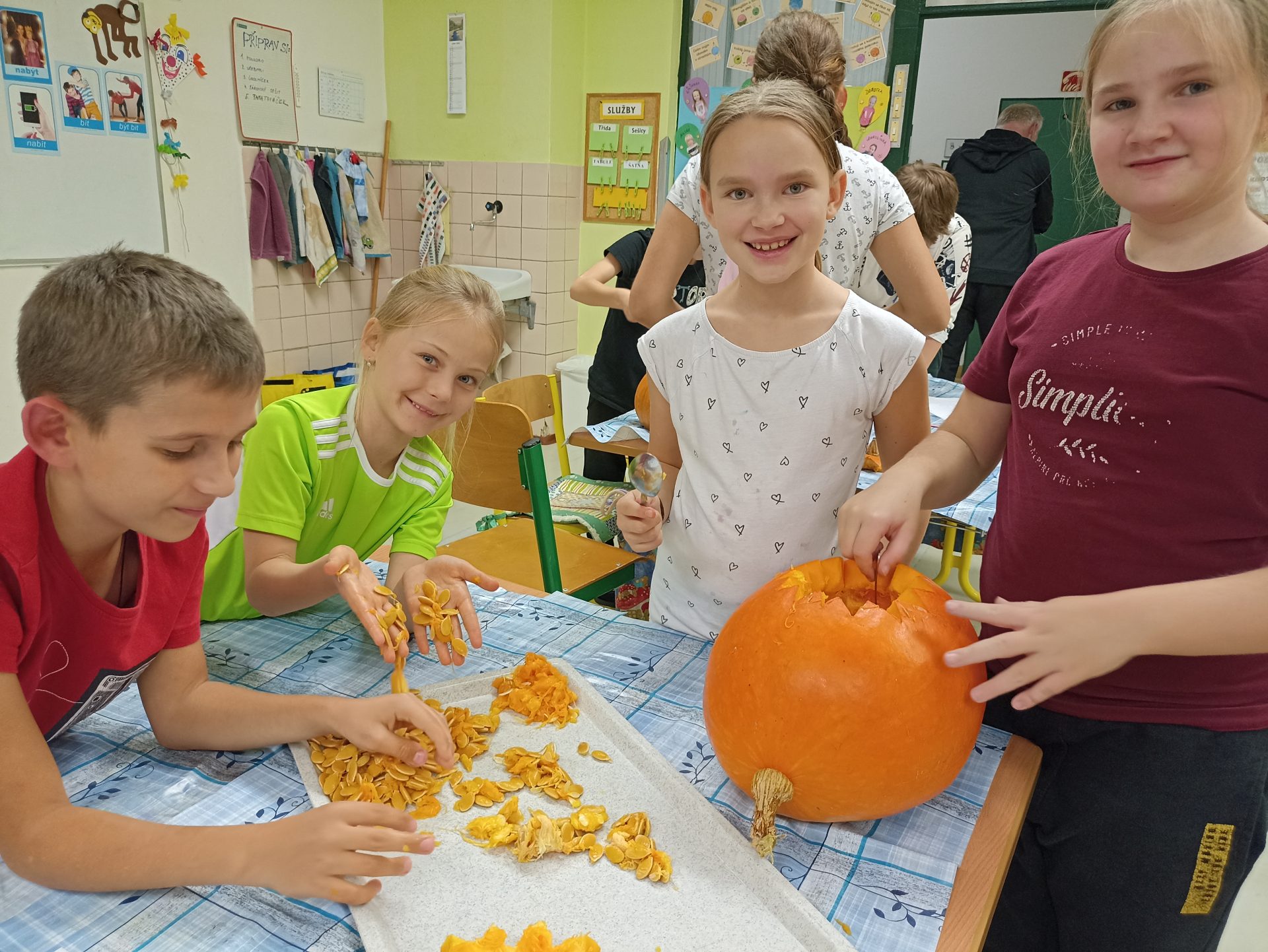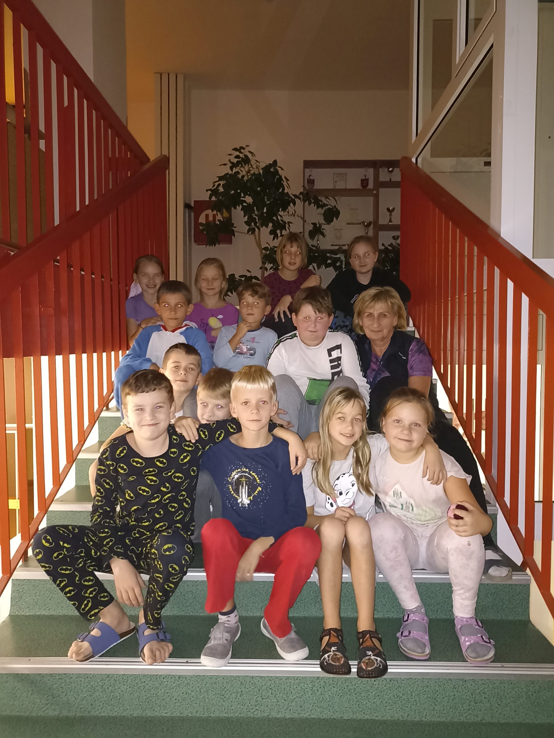 Jak vypadá noc ve škole se mohly děti z 3. B přesvědčit 10. - 11. listopadu. Společný večer začal dlabáním dýní, následovala dobrodružná bojovka noční školou, na které bylo potřeba vyřešit zapeklité úkoly. Nechybělo sportování, večerní čtení a samozřejmě ani společná stezka odvahy pro odvážné. Po pohádce nezbývalo nic jiného, než se schoulit do spacáků a nechat si zdát pěkný sen. A ráno? Všechny čekala pyžamová rozcvička a báječná snídaně. Velké poděkování patří maminkám a tatínkům za napečené dobroty a žákům 8. třídy Z. Štenclové, K. Vaškové a N. Nábělkovi za pomoc s organizací celé akce.