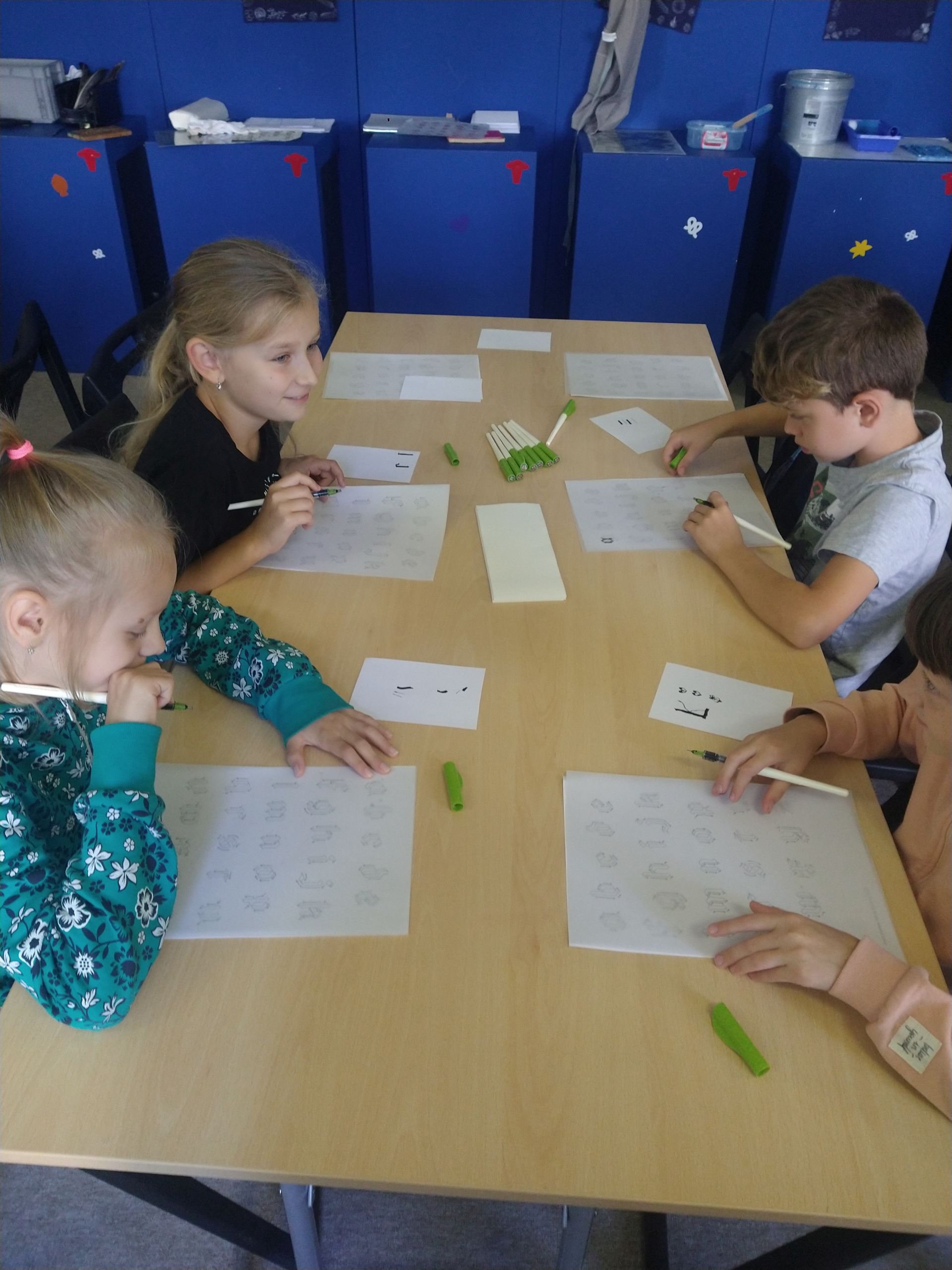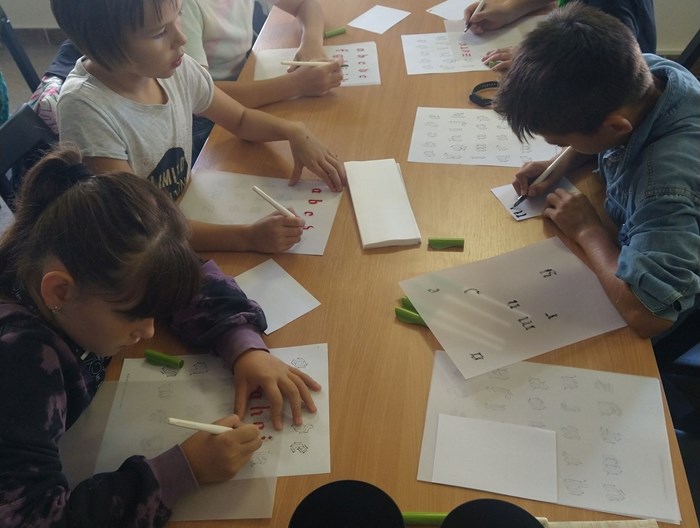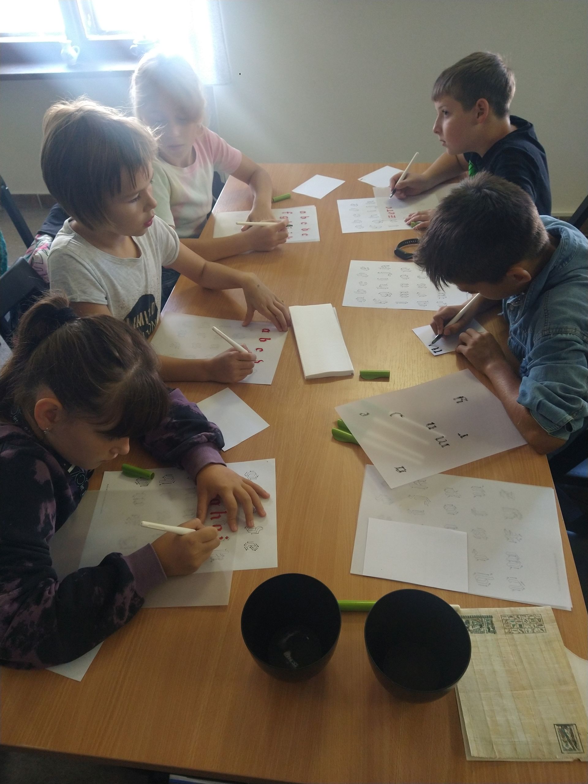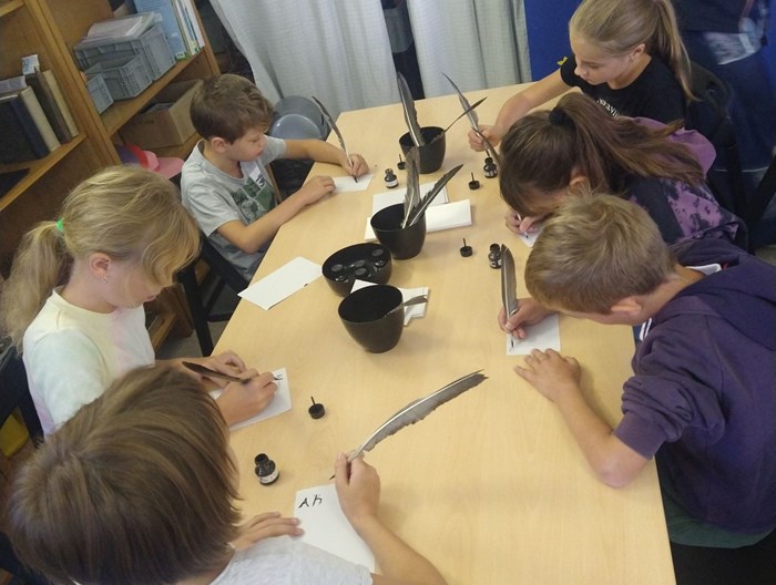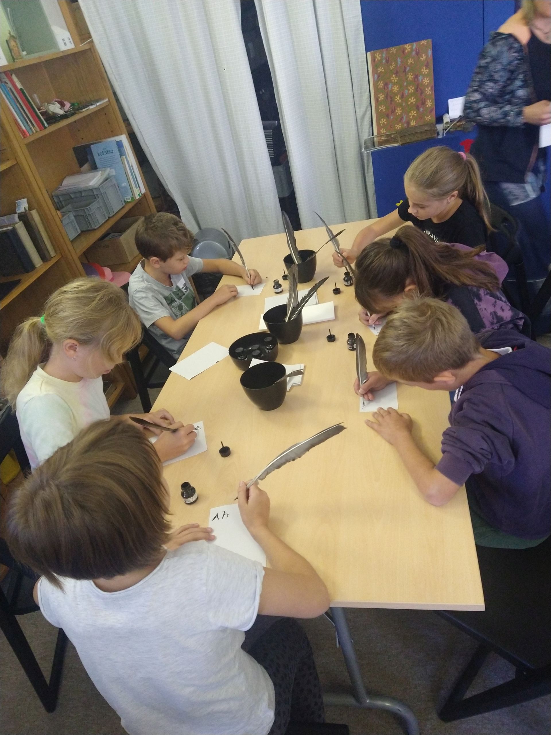Nejprve se seznámily s historií psaných knih a vyzkoušely si psaní kaligrafickými pery na papyrus. Poté si mohly zkusit psát husím brkem a nakonec si natiskly Ex libris.