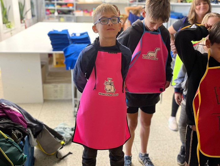 První část dopoledne byla věnována šicí dílně, kde žáci měli příležitost