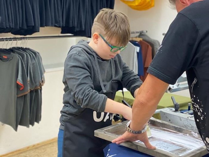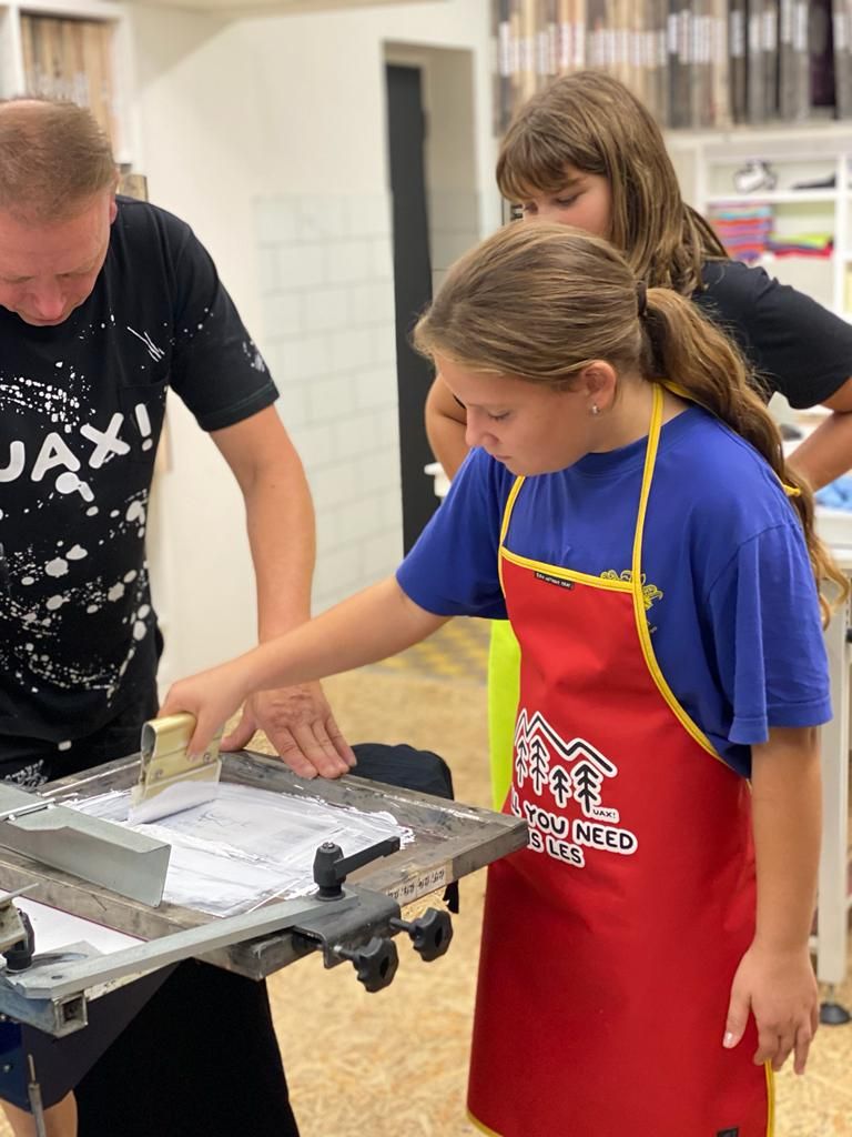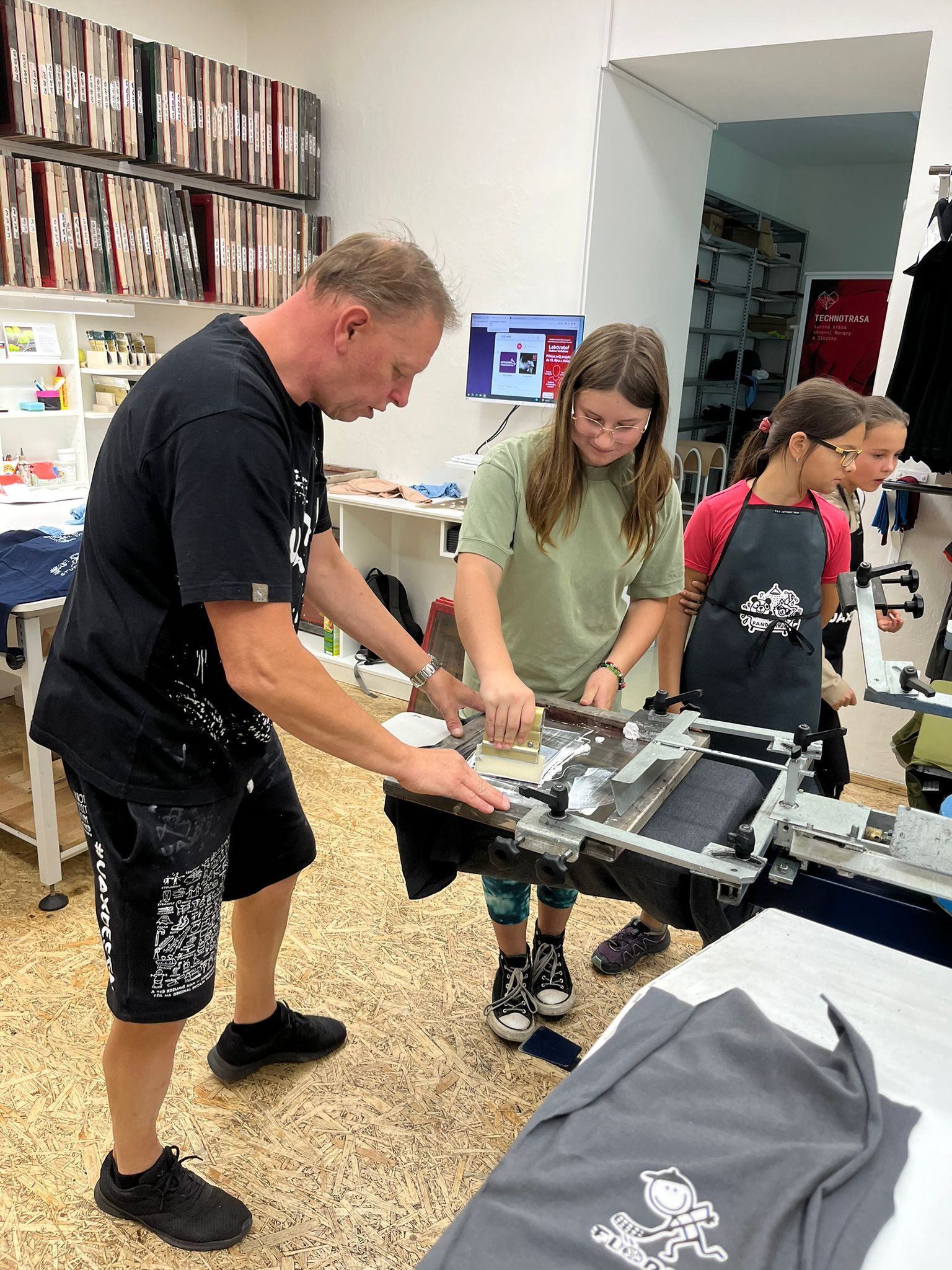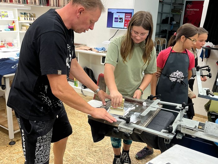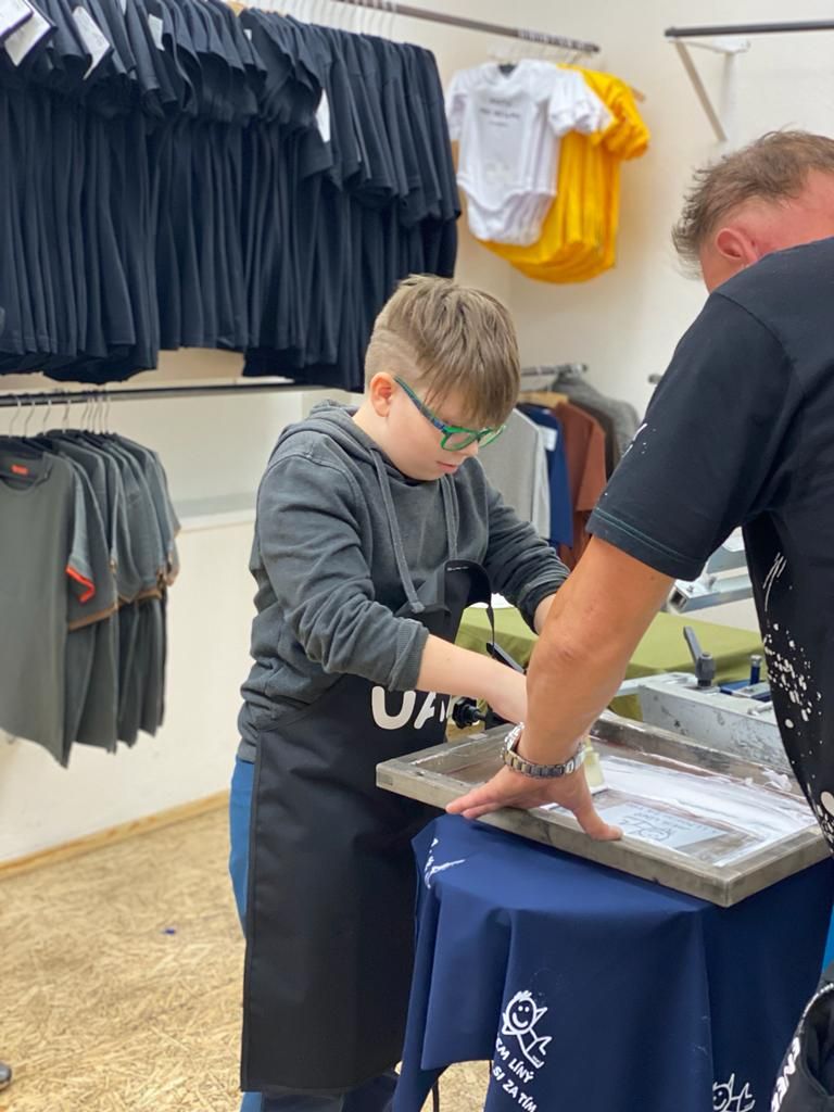 vyzkoušet si techniku sítotisku. Každý žák měl příležitost natisknout si logo