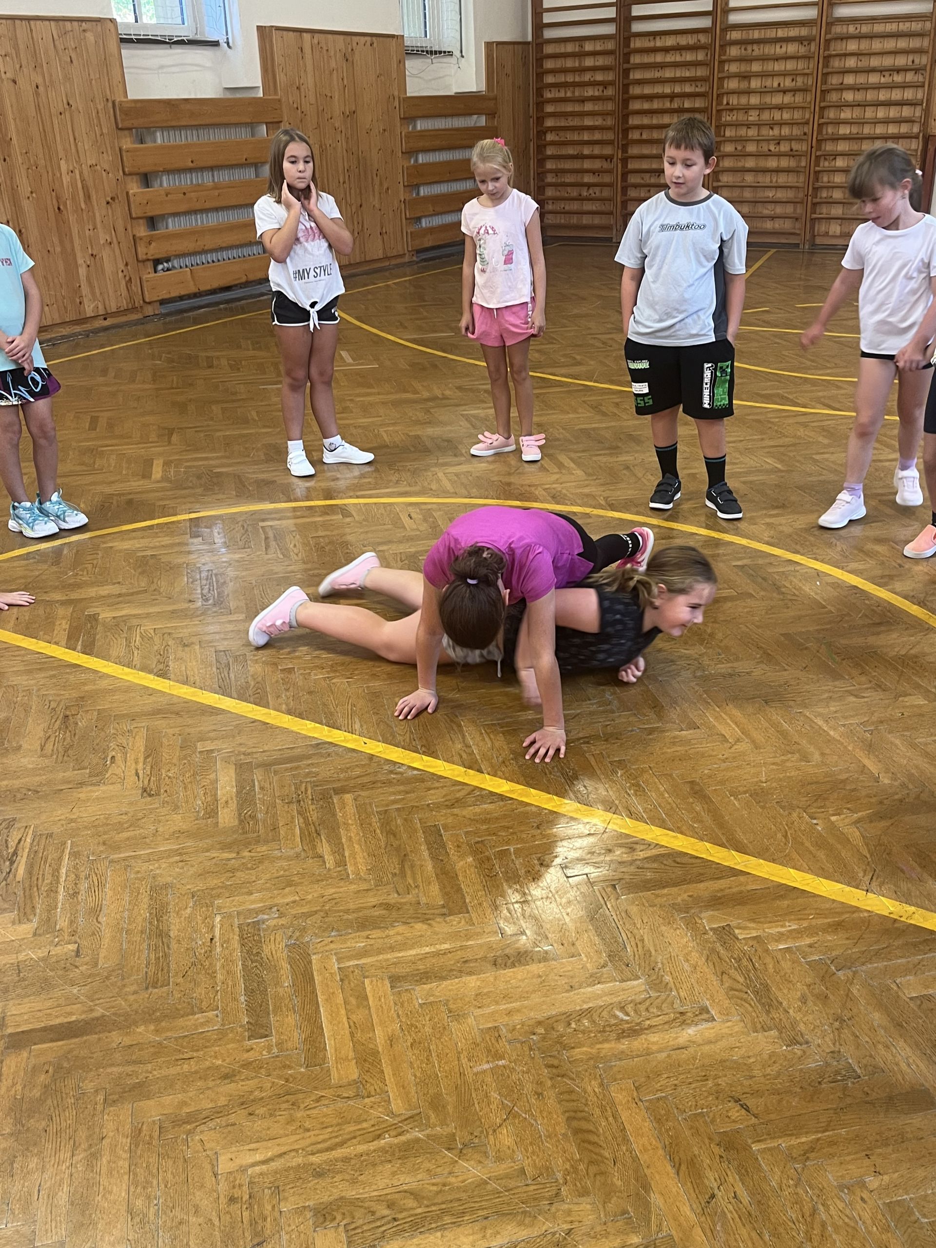 Dnešní hodina angličtiny pro 2. třídu byla jiná, a to nejen proto, že se konala v tělocvičně, ale i díky tomu, jak nadšeně se děti zapojily do aktivit. Místo tradiční výuky v lavicích jsme dnes dali přednost pohybu a hře, což se ukázalo jako fantastická volba. Děti si během zábavných cvičení osvojily nová anglická slovíčka, aniž by si uvědomovaly, že se vlastně učí.