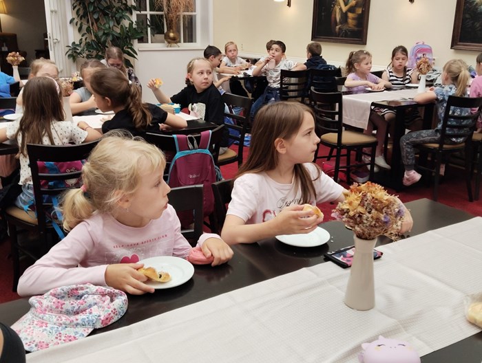 Nakonec jsme se nechali pohostit v hotelu Praha, kde jsme dostali koláčky. Děti si mohly koupit něco k pití nebo na mls. Stihli jsme si prohlédnout náměstí.
