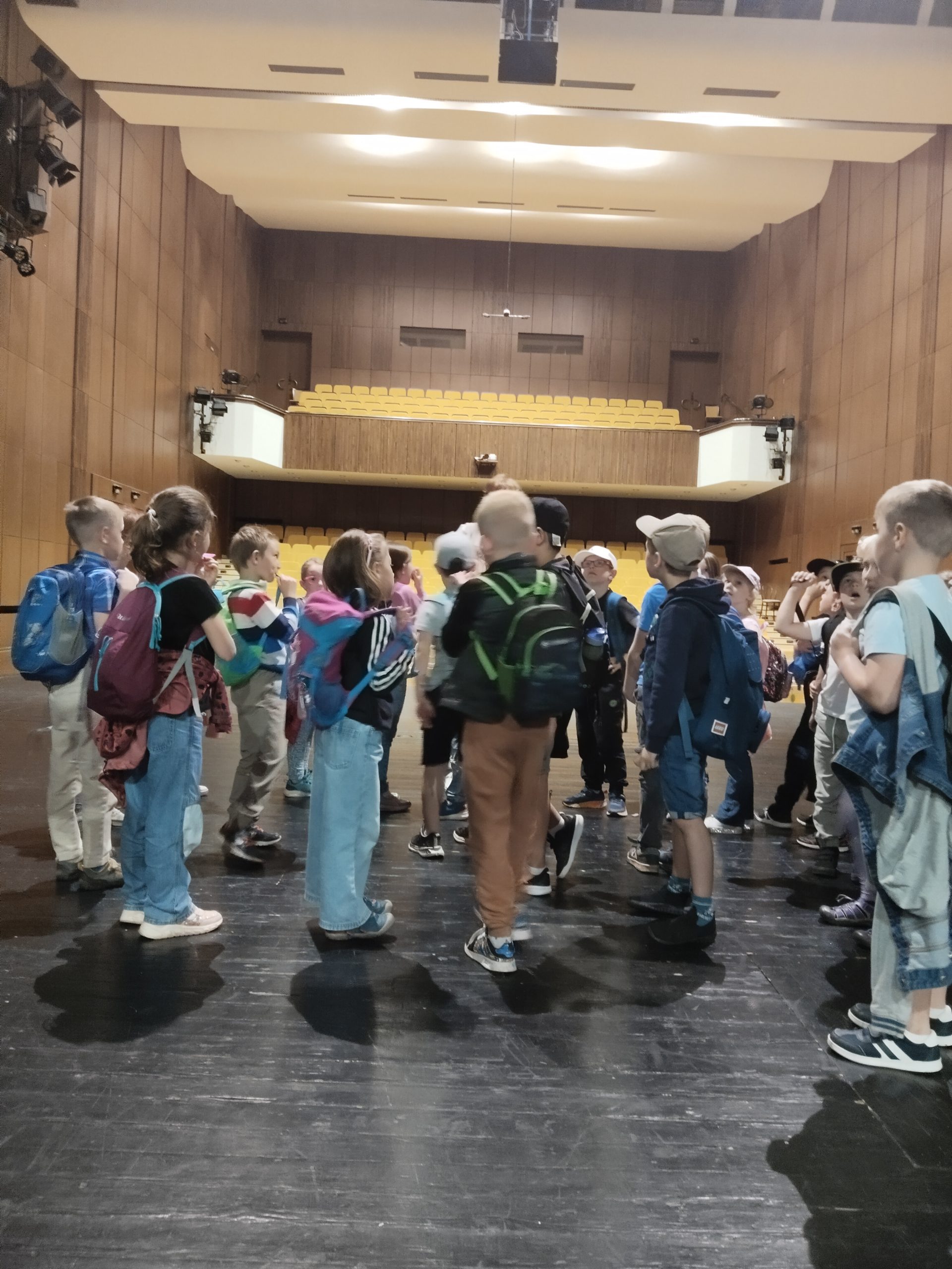 Prvňáčci oslavili svůj Den dětí návštěvou zákulisí Beskydského divadla v Novém Jičíně. Naše průvodkyně nás provedla šatnou pro diváky i herce. Ukázala, kudy přivážejí kulisy, jak funguje nápověda, osvětlení i zvuk, co dělá inspicient, spočítali jsme, kolik se vejde diváků do velkého i malého sálu. Také jsme si zkusili být sami herci a přednášeli jsme nebo zpívali na pódiu.
