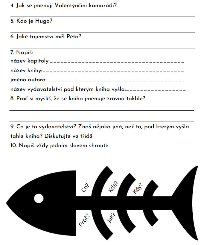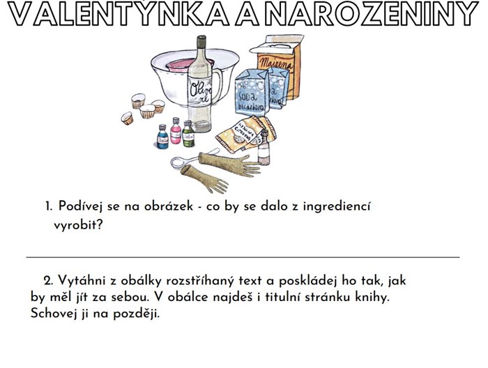 V literatuře jsme se pustili do čtenářské lekce s knihou Valentýnka a narozeniny. Během dvou hodin jsme společně pracovali s kapitolou nazvanou „Kouzelné čarování a tajně uschovaná muška“. Nejprve podle ilustrací hádali, o čem příběh asi bude, pak skládali rozstříhaný text úvodní části a ověřovali si tak své čtenářské dovednosti. Následovalo čtení navazující části kapitoly a vyplnění pracovního listu, který ověřoval porozumění textu.