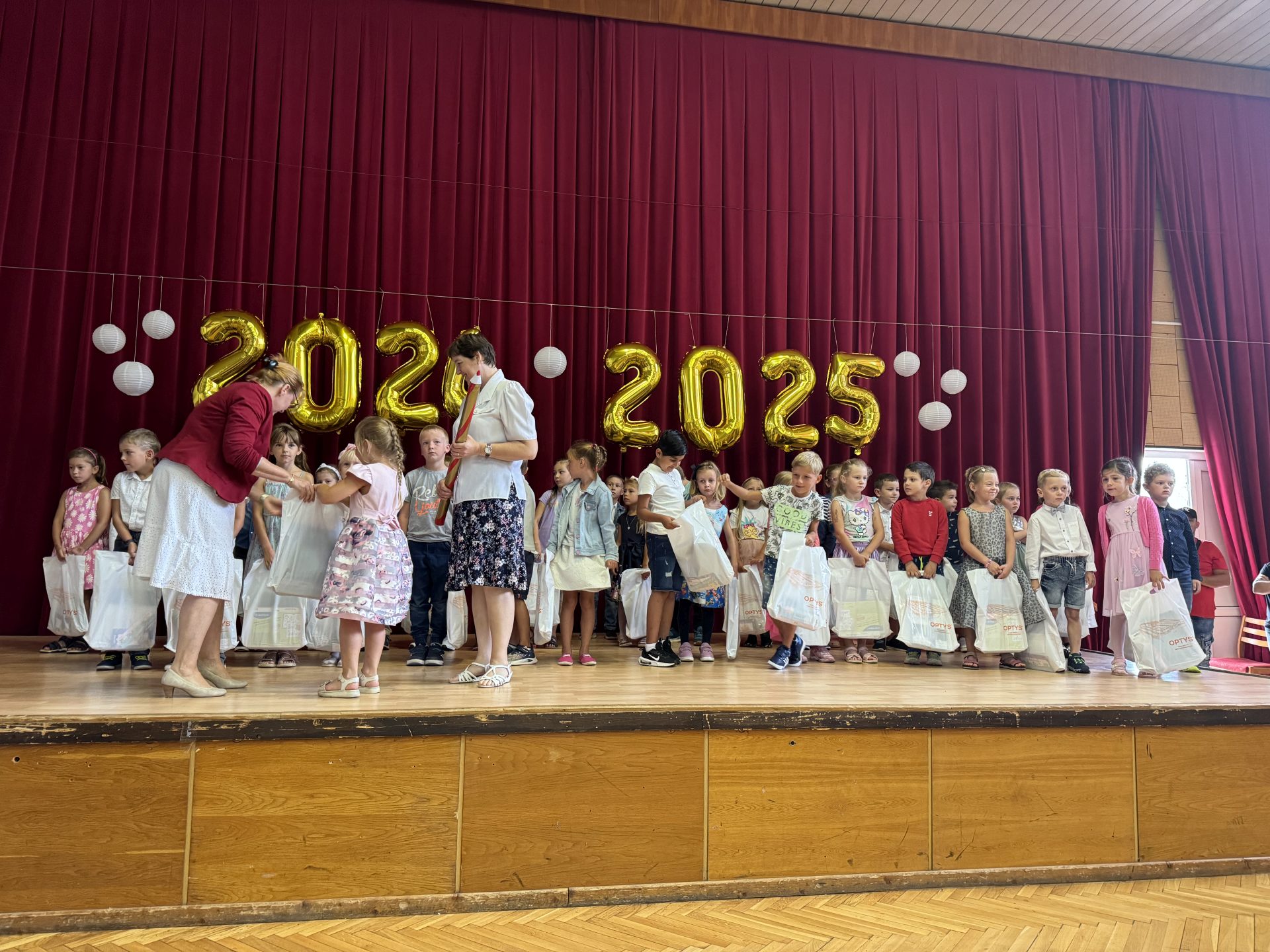 Druhý zářijový den přivítal všechny naše žáky zpět do školních lavic. Obzvlášť výjimečný byl tento den pro naše nejmladší žáky – prvňáčky. Uvítací ceremoniál se uskutečnil v kulturním domě, kde se sešli nejen noví žáci, ale i jejich rodiče, učitelé a vedení školy. Paní zástupkyně s paní starostkou srdečně přivítaly všechny přítomné a popřály všem žákům úspěšný a spokojený školní rok.