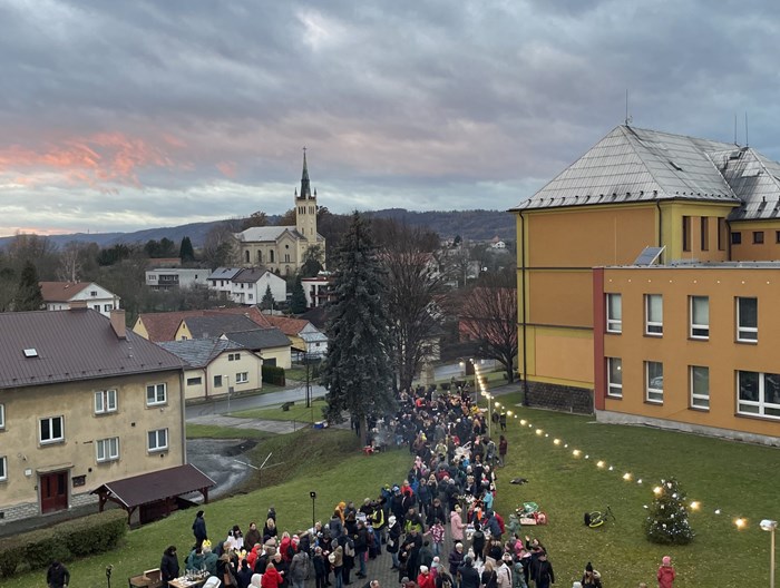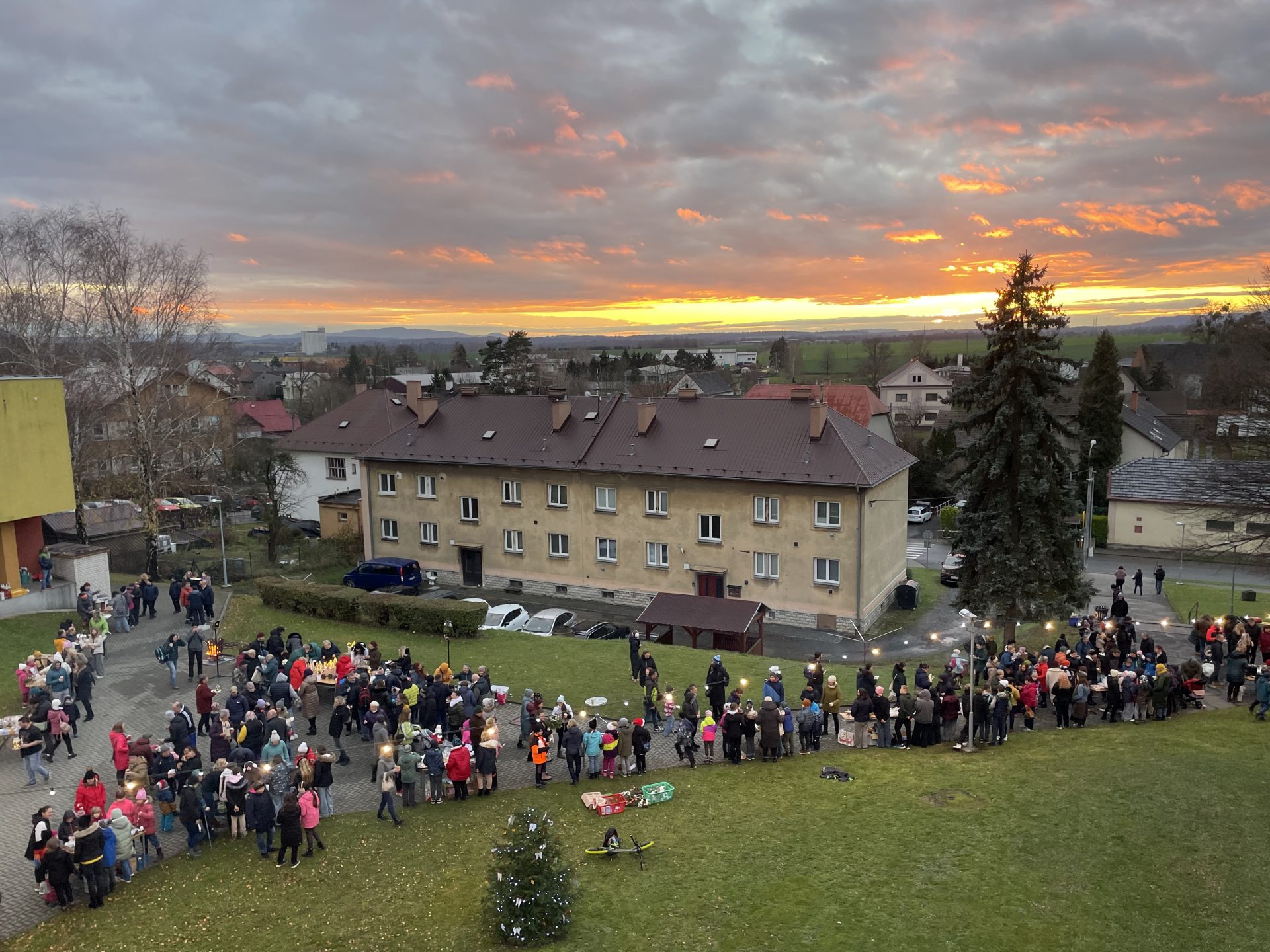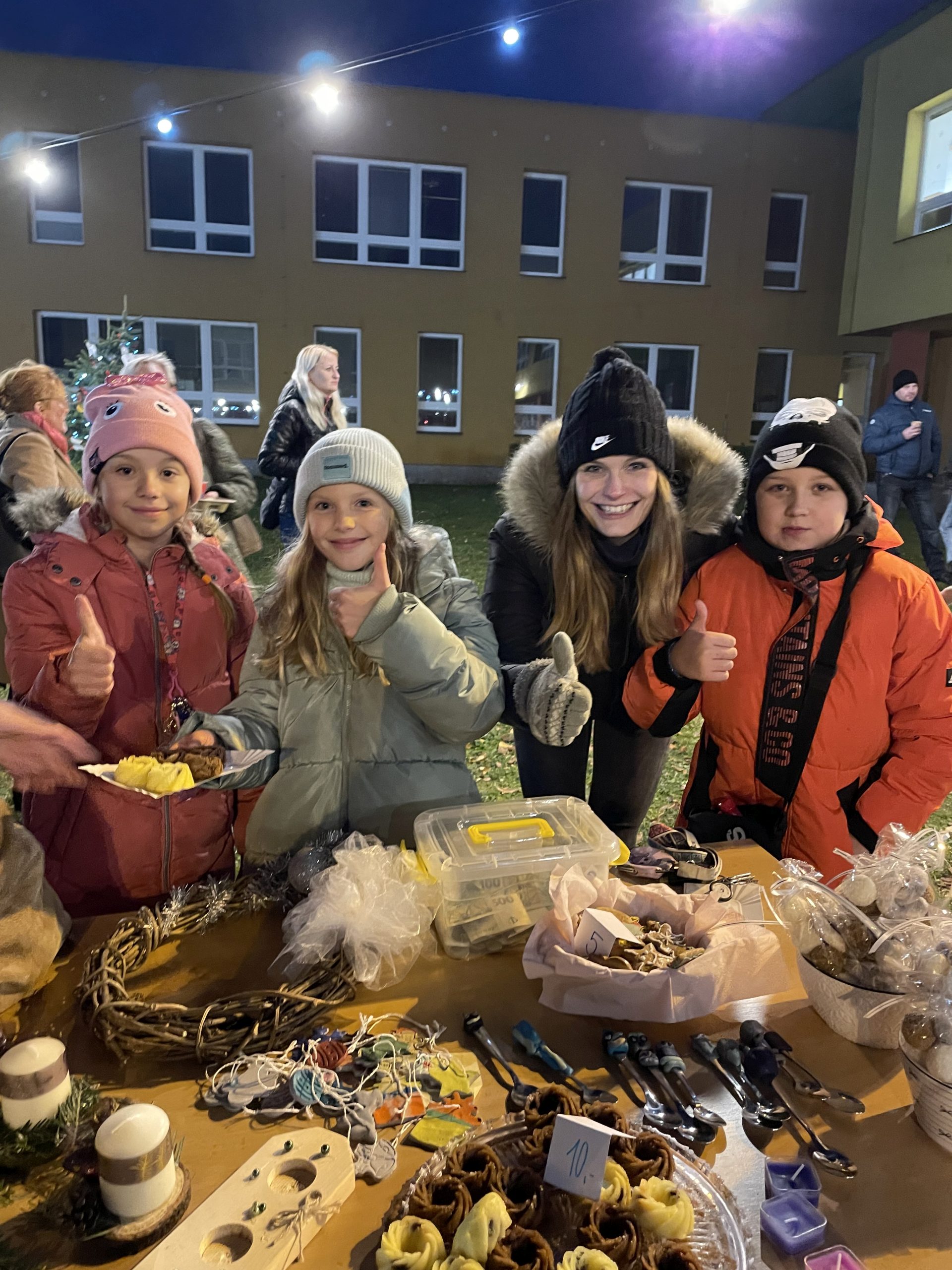 V předvánočním čase se prostor před naší základní školou proměnil v kouzelný vánoční jarmark. Vůně perníčků, svíček a horkého punče zaplnila okolí a vytvořila neopakovatelnou atmosféru, která nás všechny naladila na blížící se svátky.